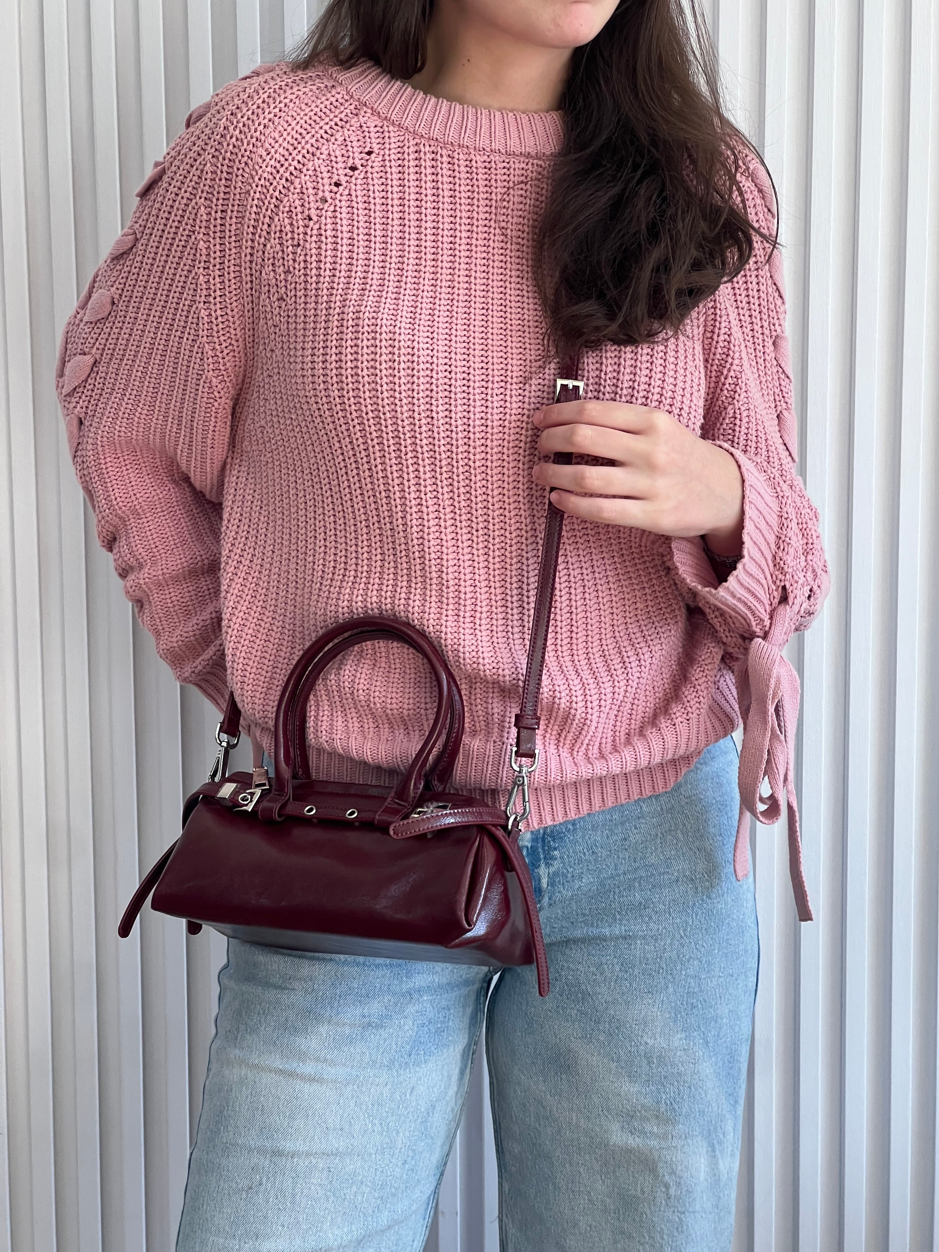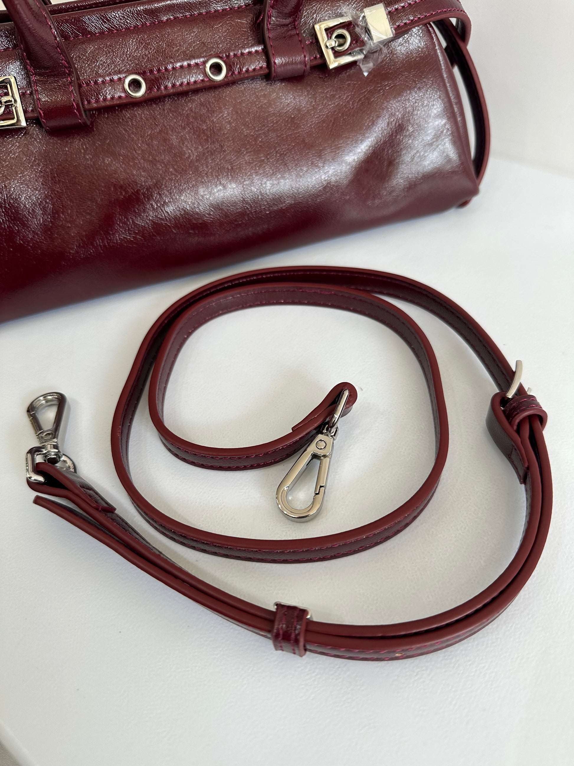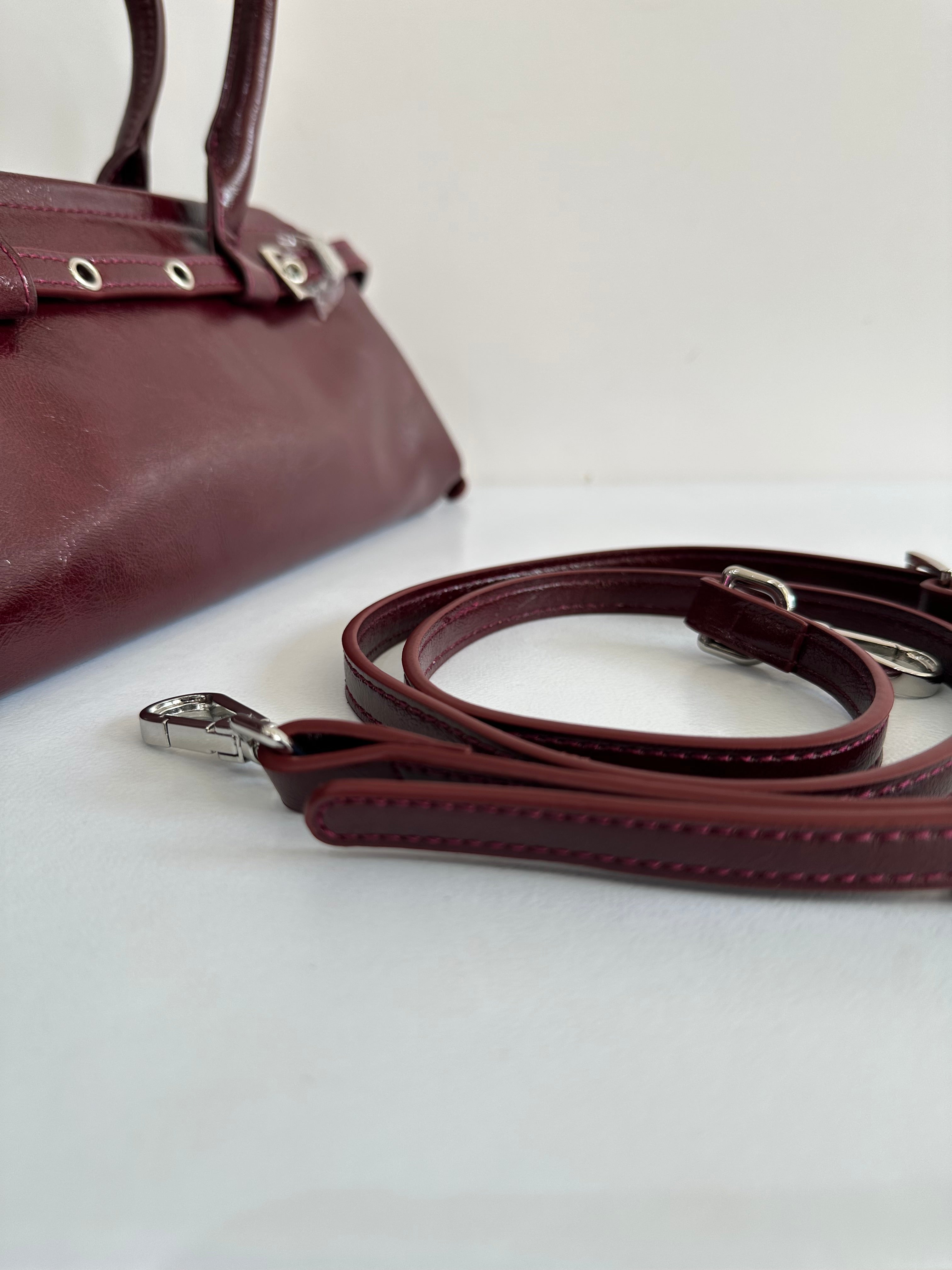 Bolso de tamaño pequeño con forma alargada. Tiene cierre de zipper, incluye crossbody strap desmontable.