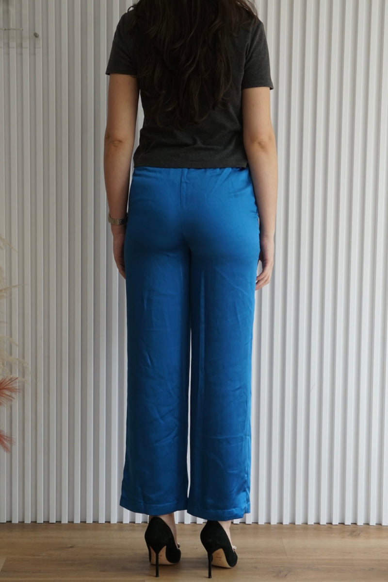 Pantalones satinados con cintura de elástico. Color azul eléctrico . Cómodos e ideales para usar de día o de noche.