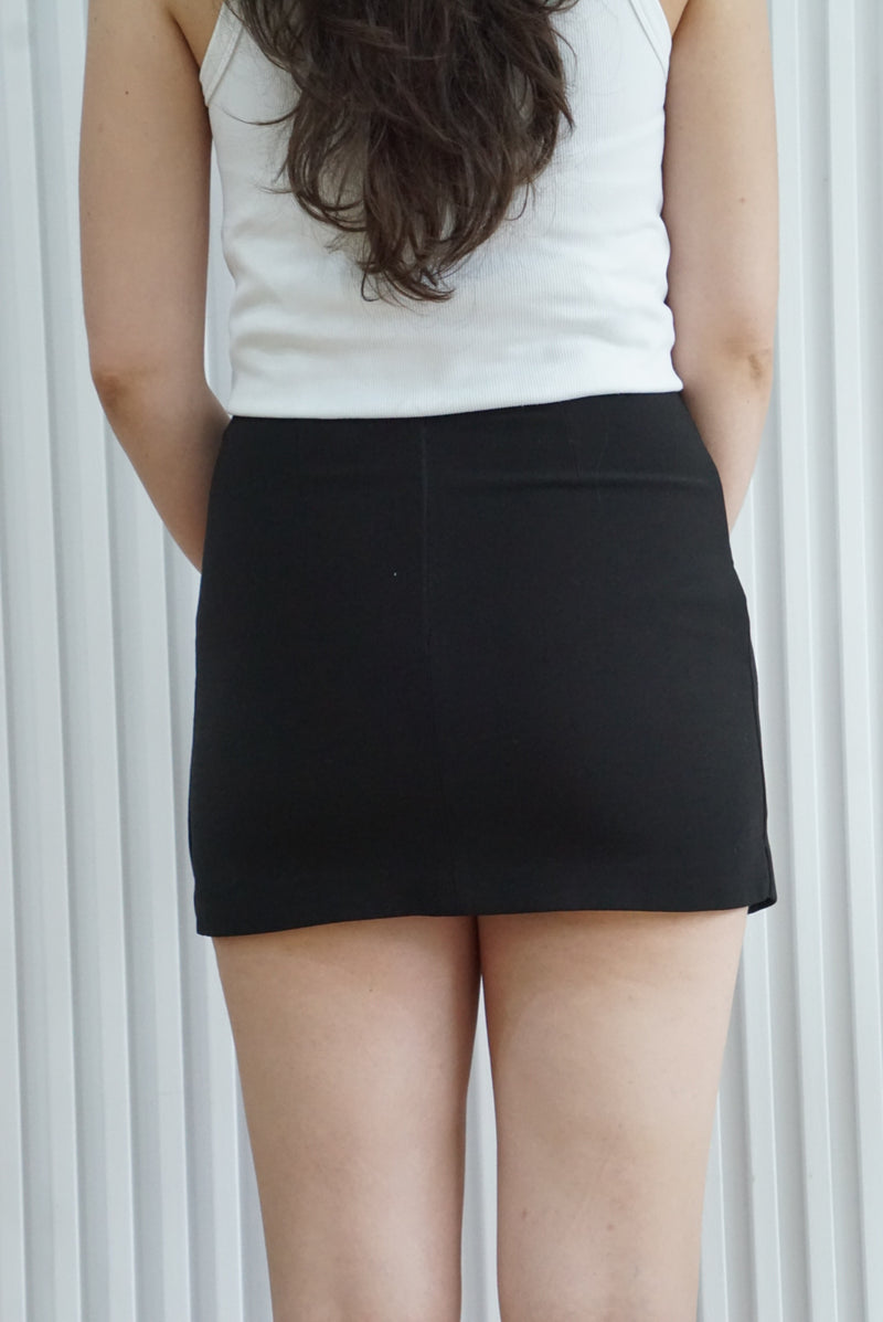 mini falda color negro, de corte asimétrico marca BCBGMAXAZRIA. Un Básico perfecto para tu closet