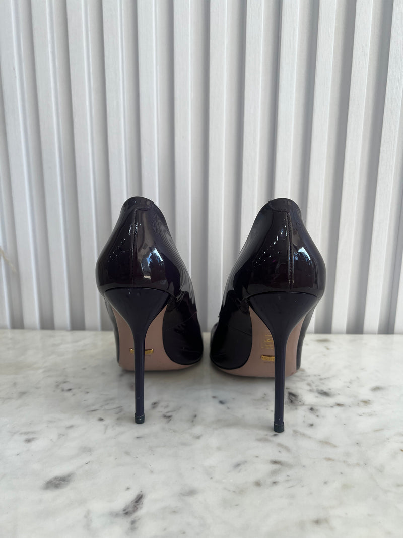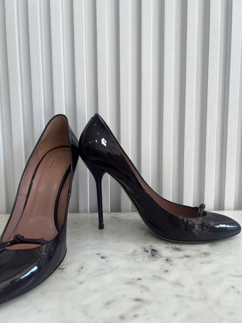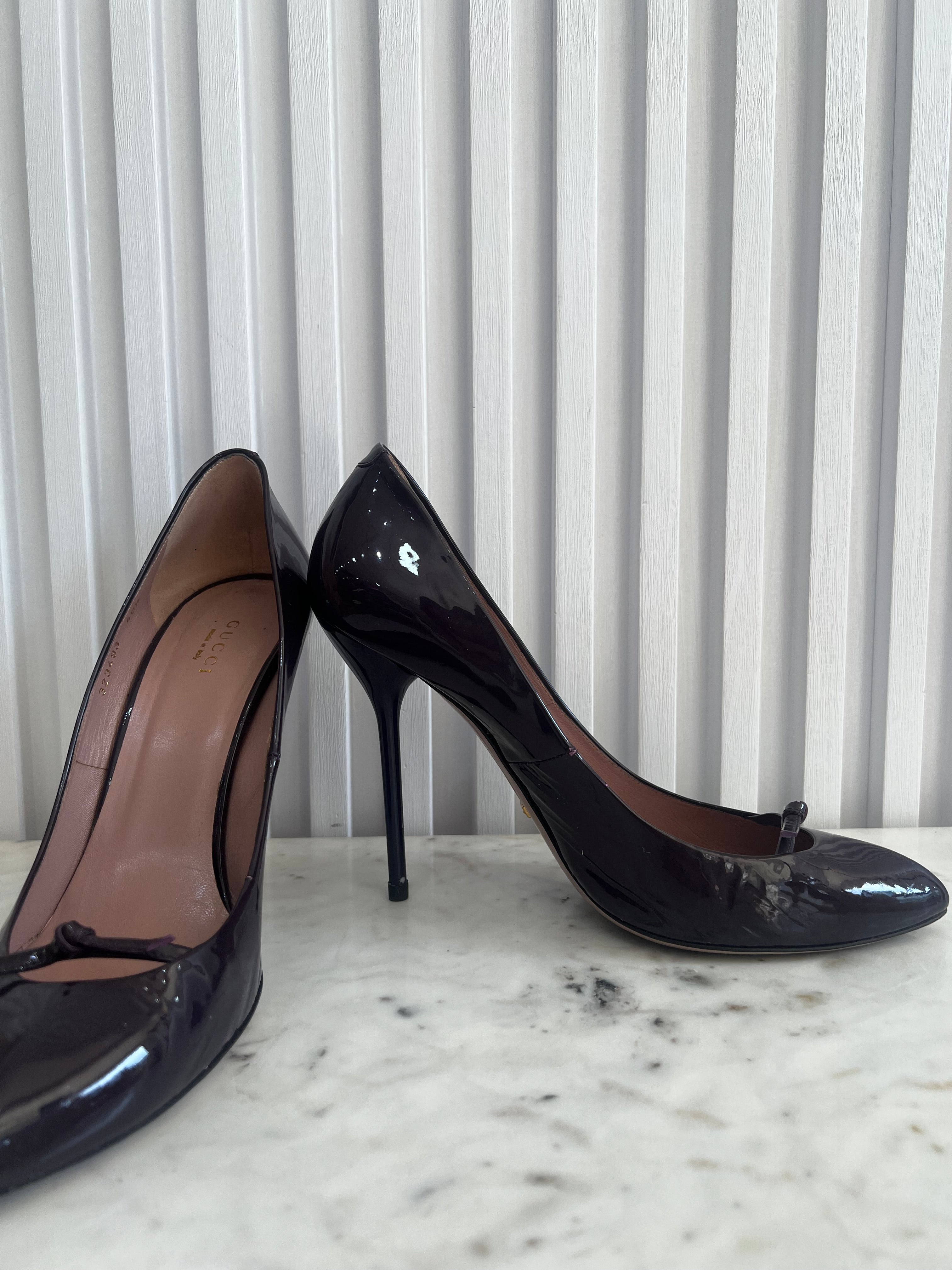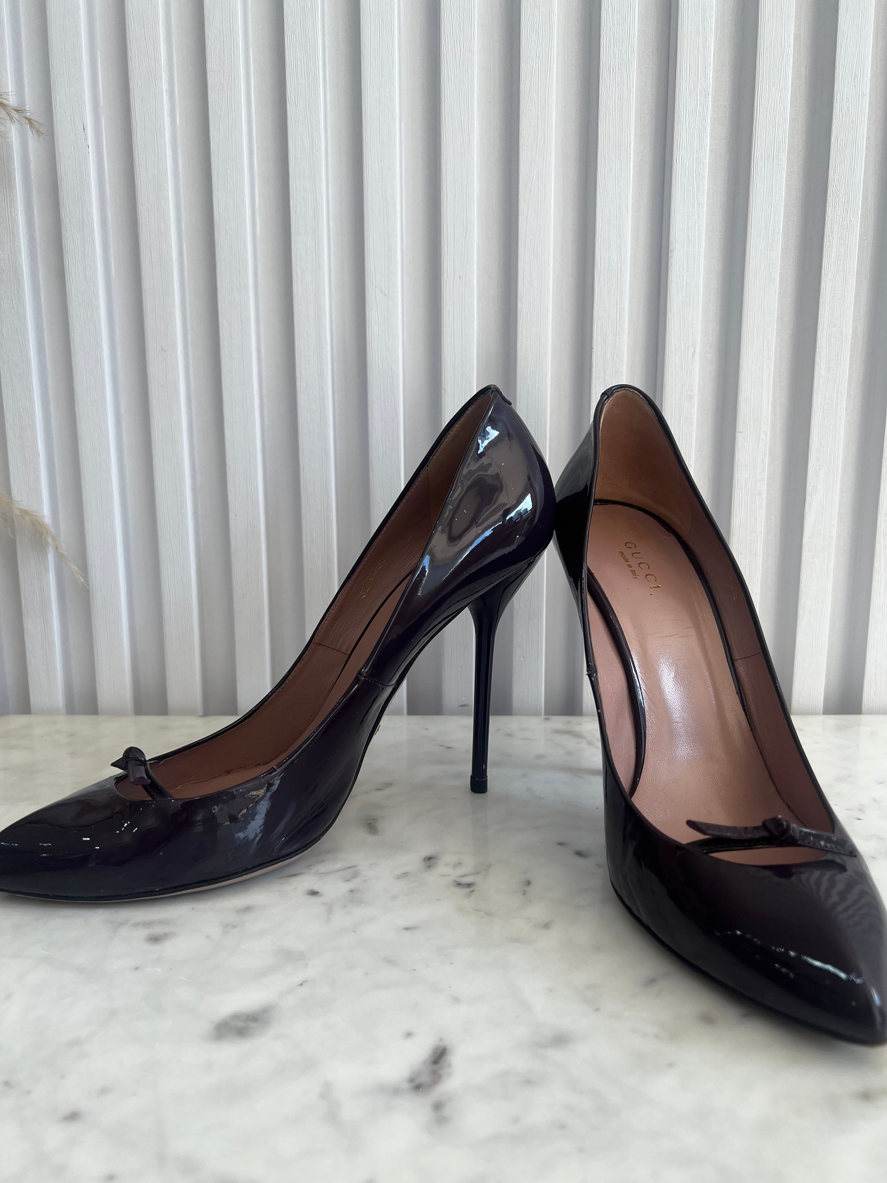 Estos pumps cuentan con un detalle de bow en la parte frontal. Están hechos de patent leather. Estos zapatos miden 12cm de alto.