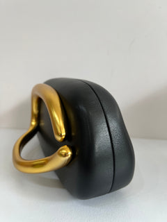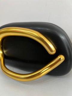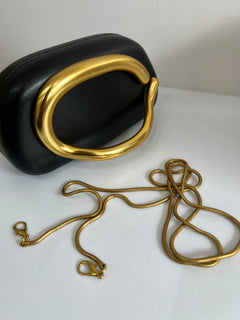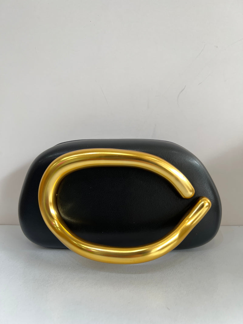 Bolso tipo clutch, estructura rígida. Cuenta con cierre superior de imán con agarradera dorada tridimensional.