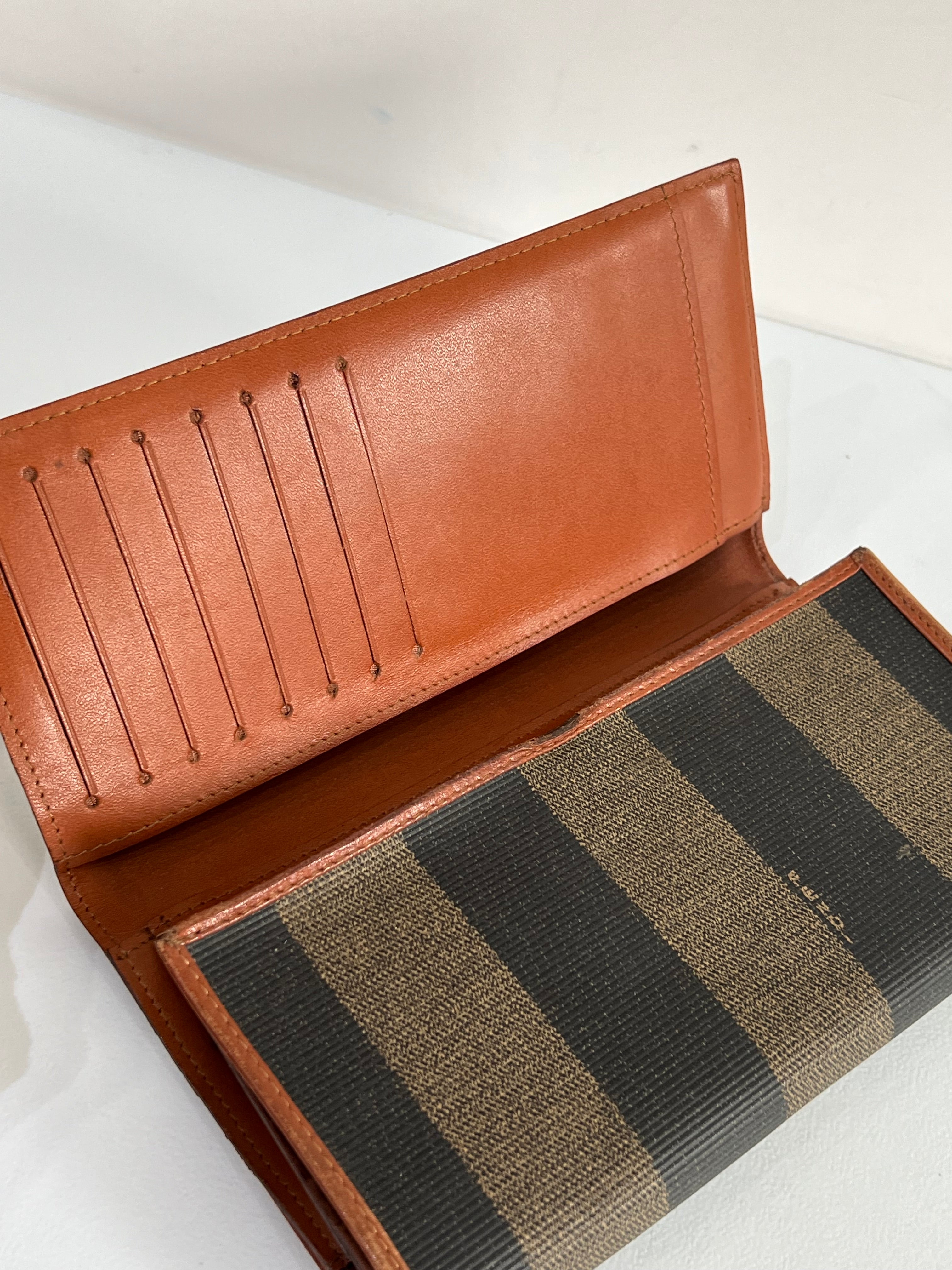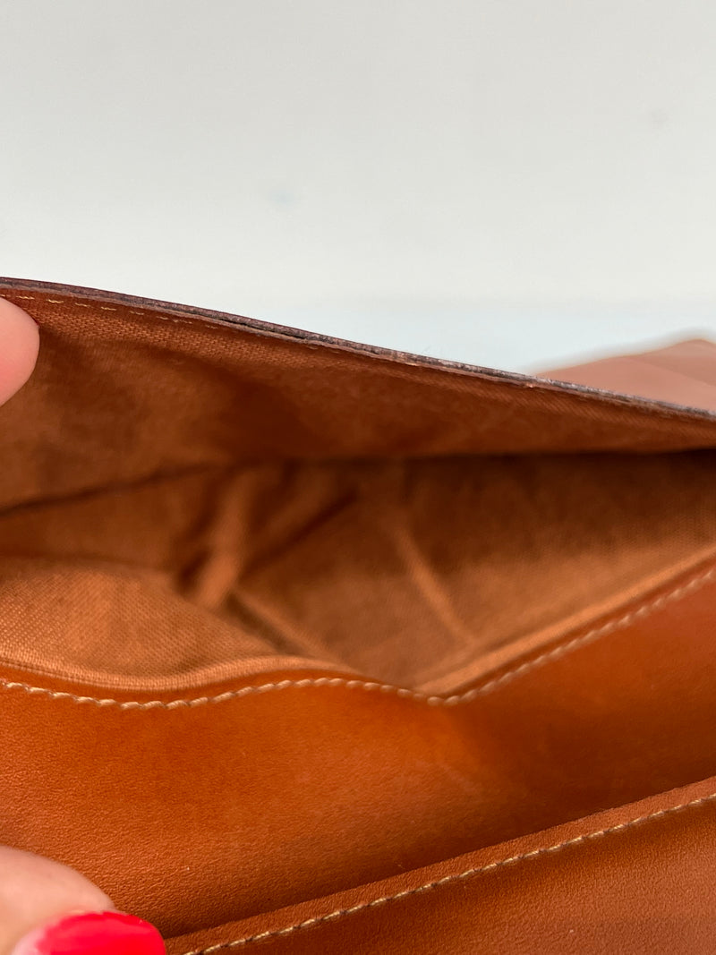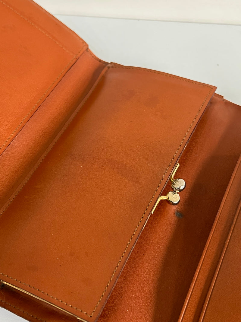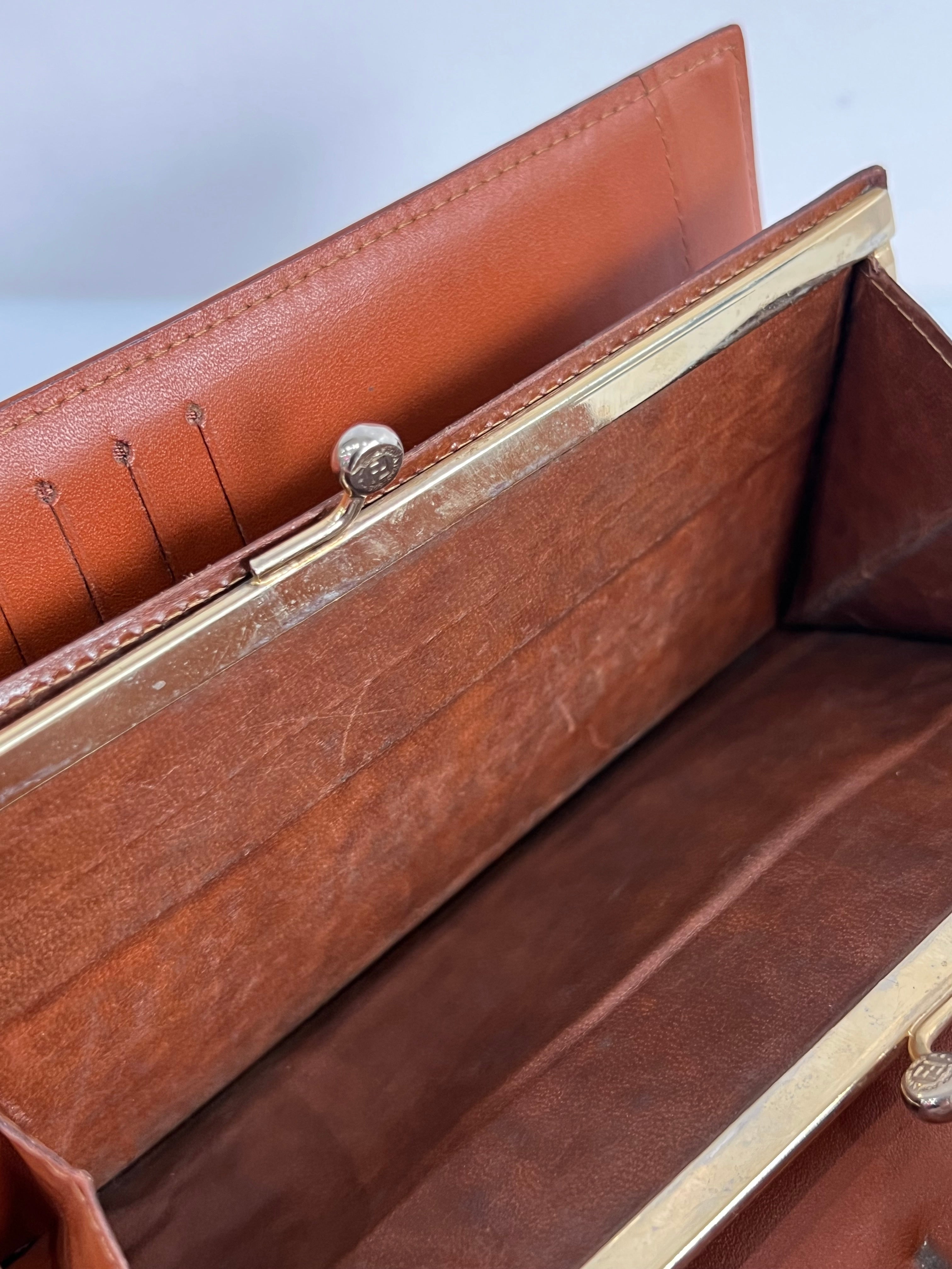 Billetera con multiples compartimentos para tarjetas, efectivo y con un compartimento interior con cierre de broche metalico. Cuenta con detalles en el cuero del interior de compartimentos y en el hardware exterior.