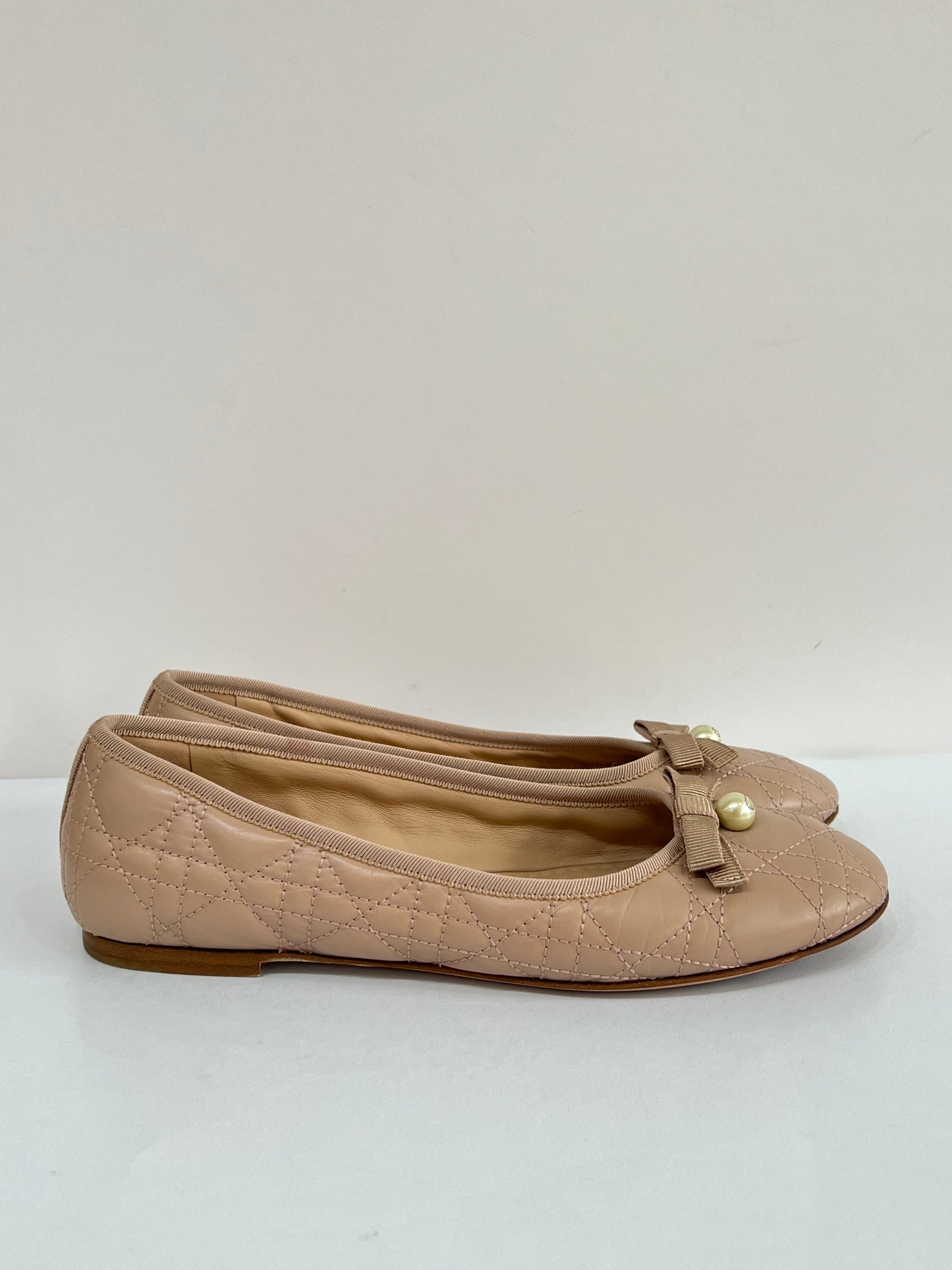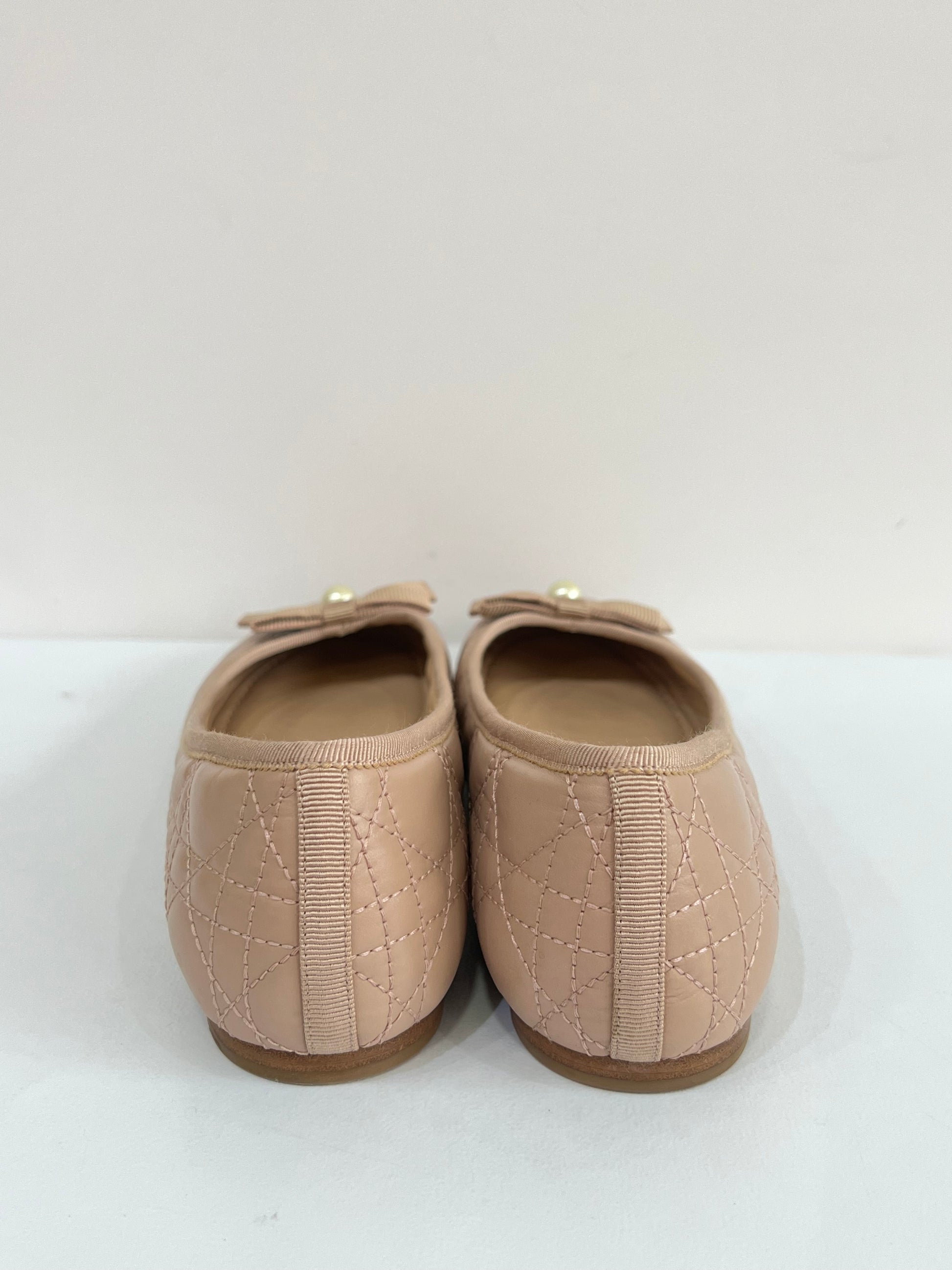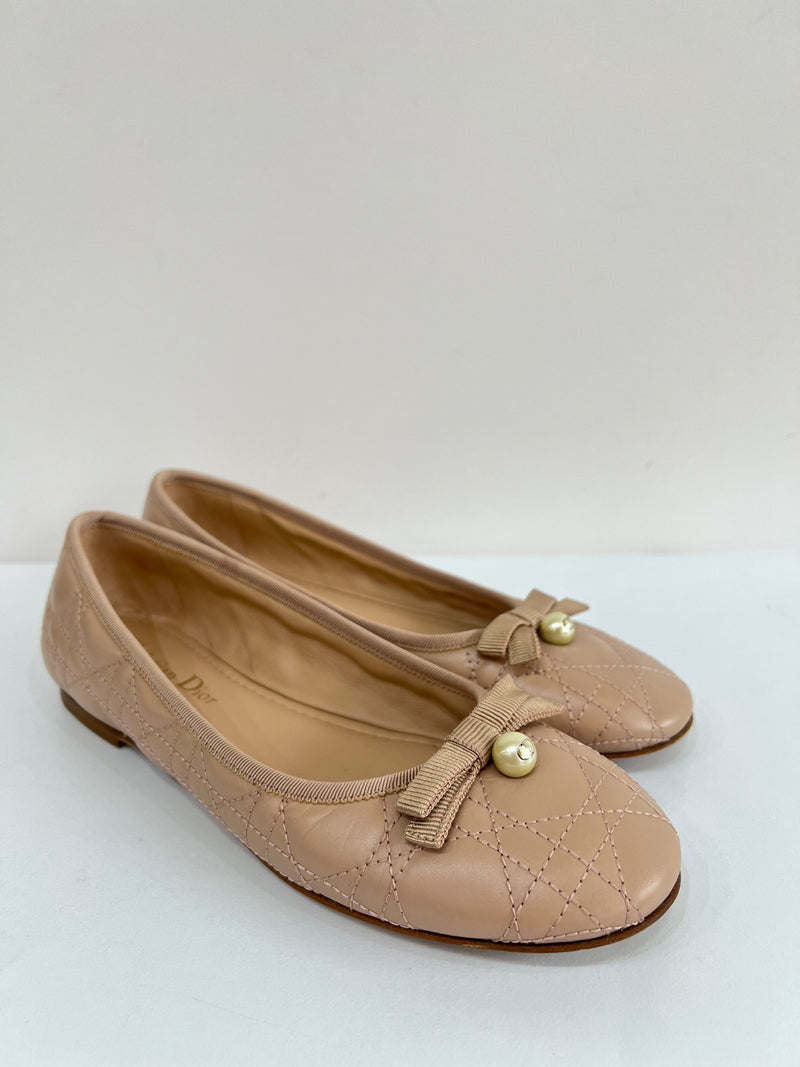 CHRISTIAN DIOR Cannage Pearl Bow Ballet Flats