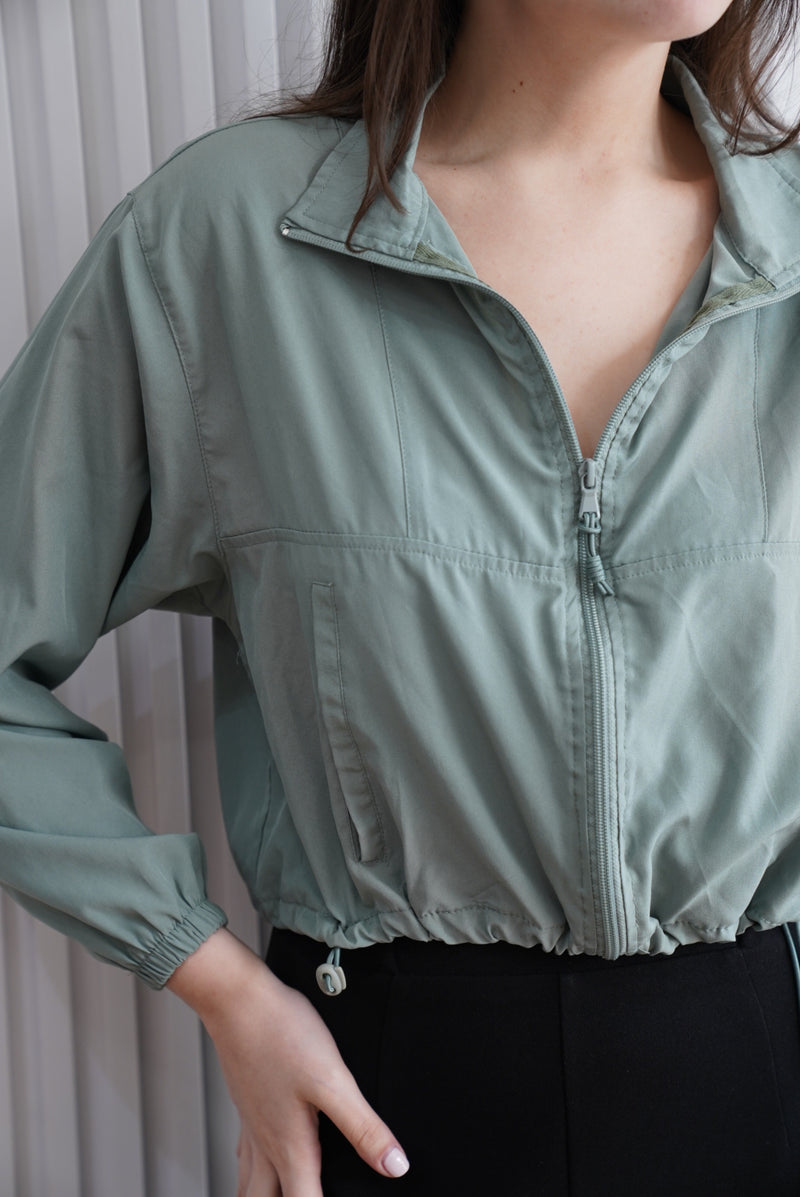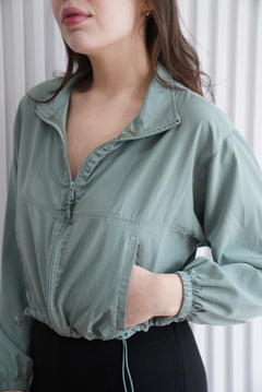 Esta chumpa deportiva cuenta con un cierre de zipper en la parte frontal, un bolsillo en cada lado y un ajuste en la cintura tipo “drawstring”.