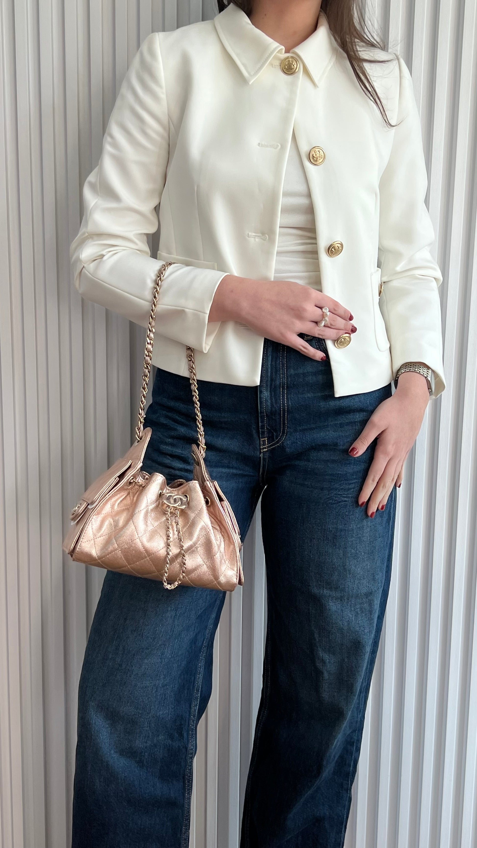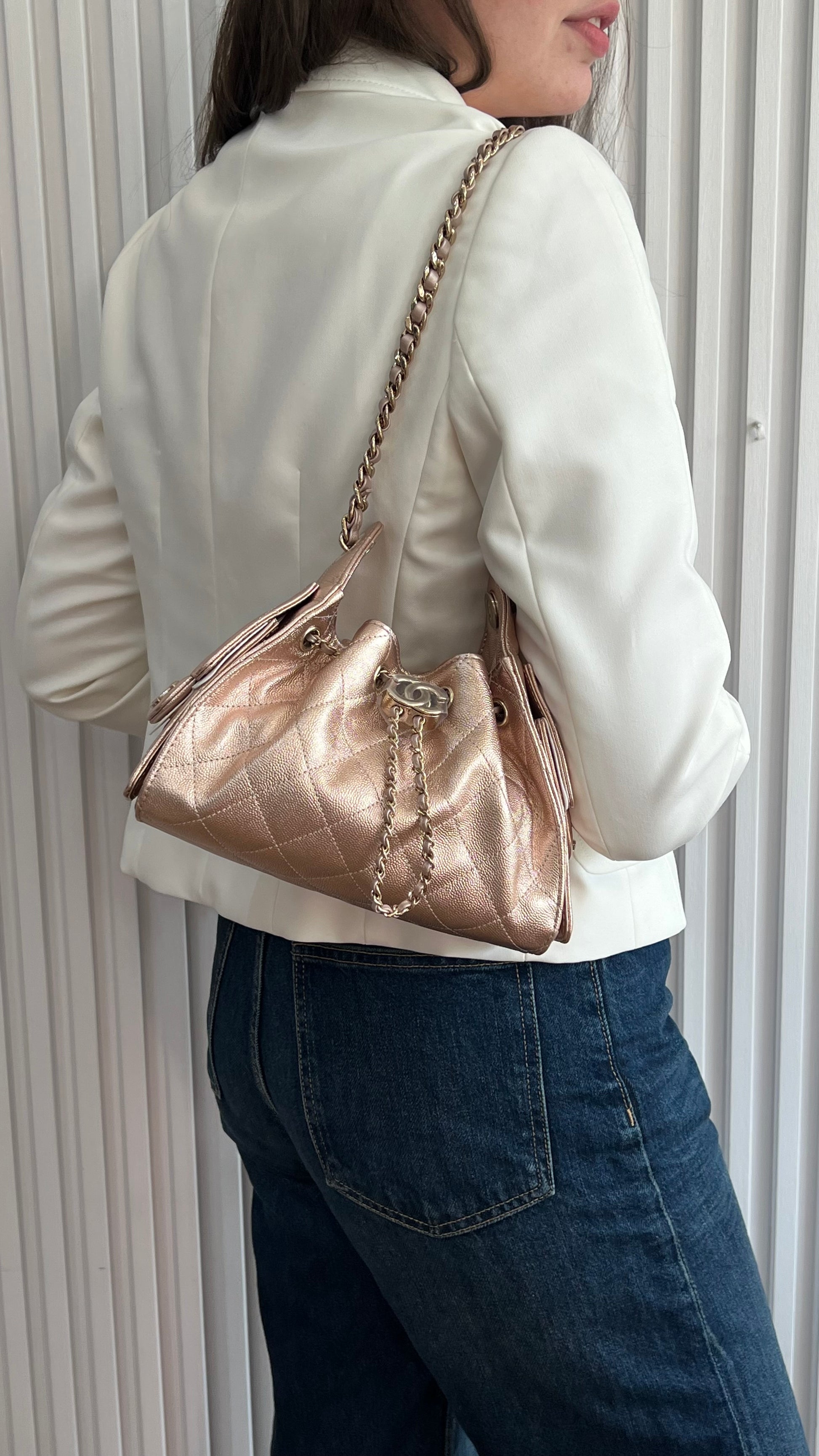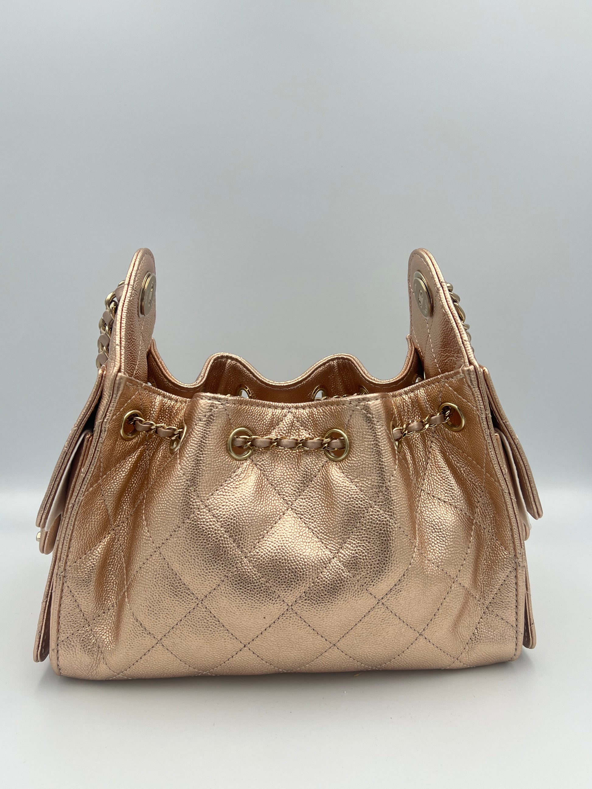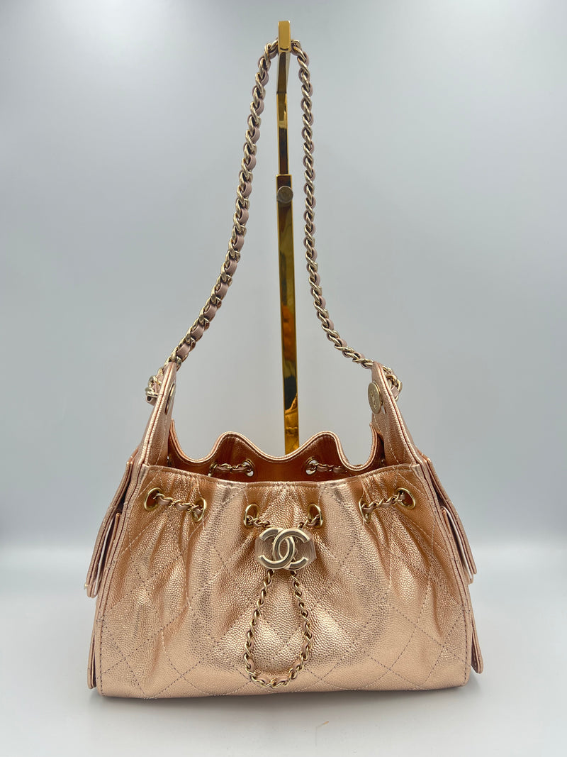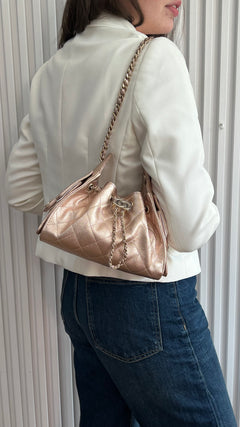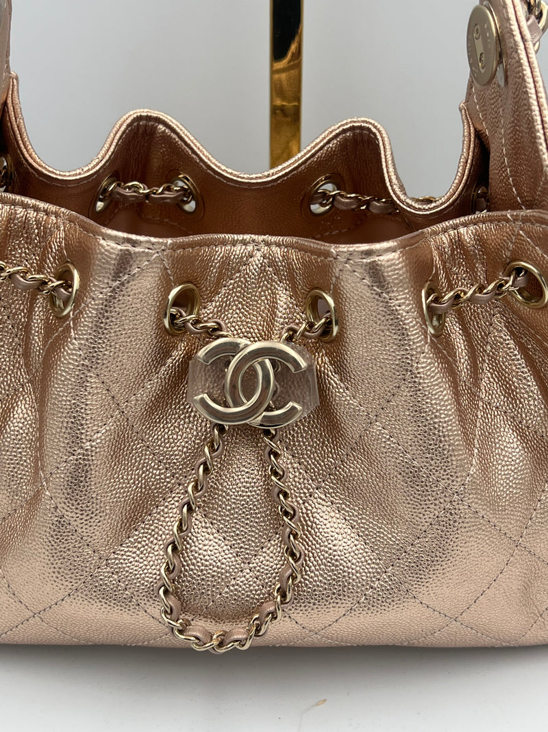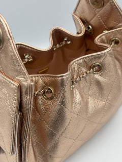 CHANEL 25 Mini Hobo Metallic Rose Gold Bag