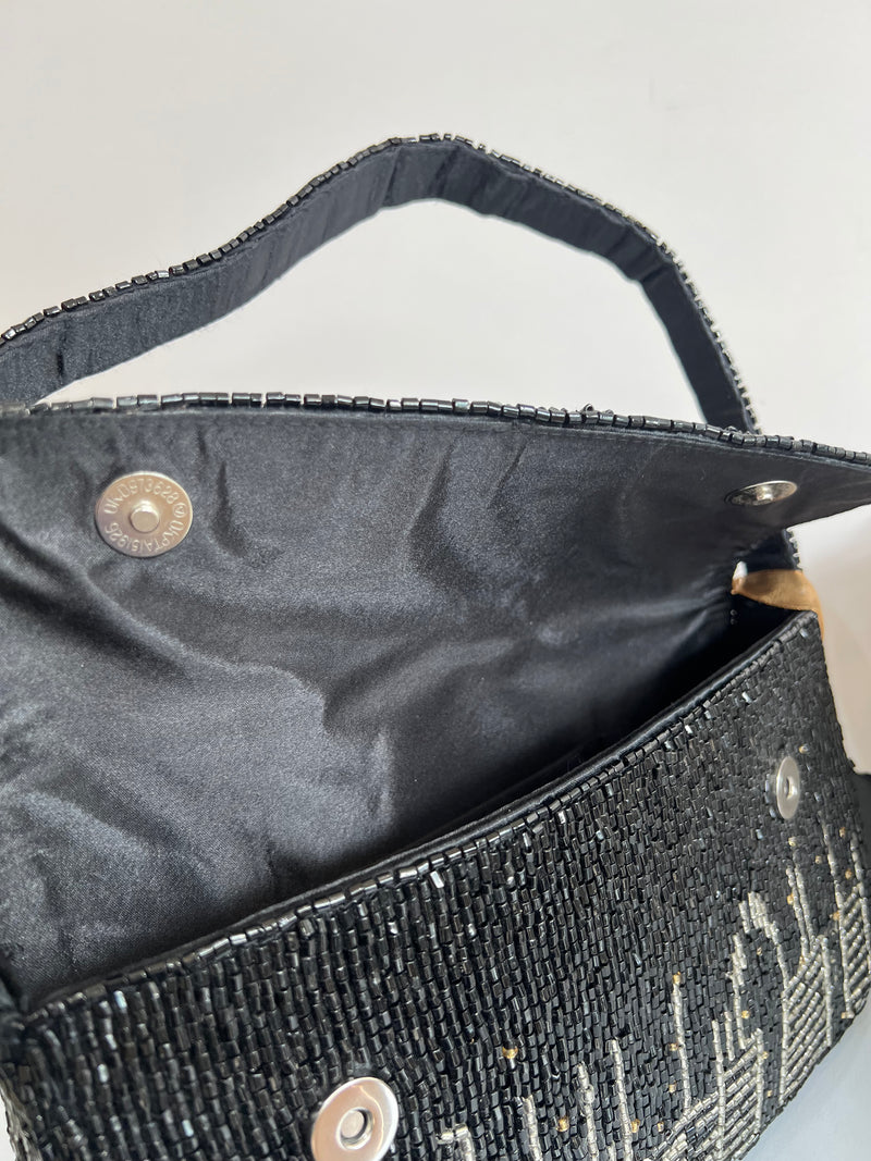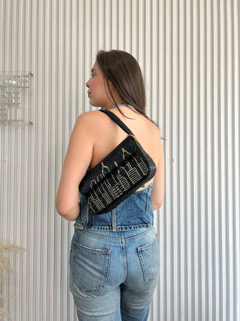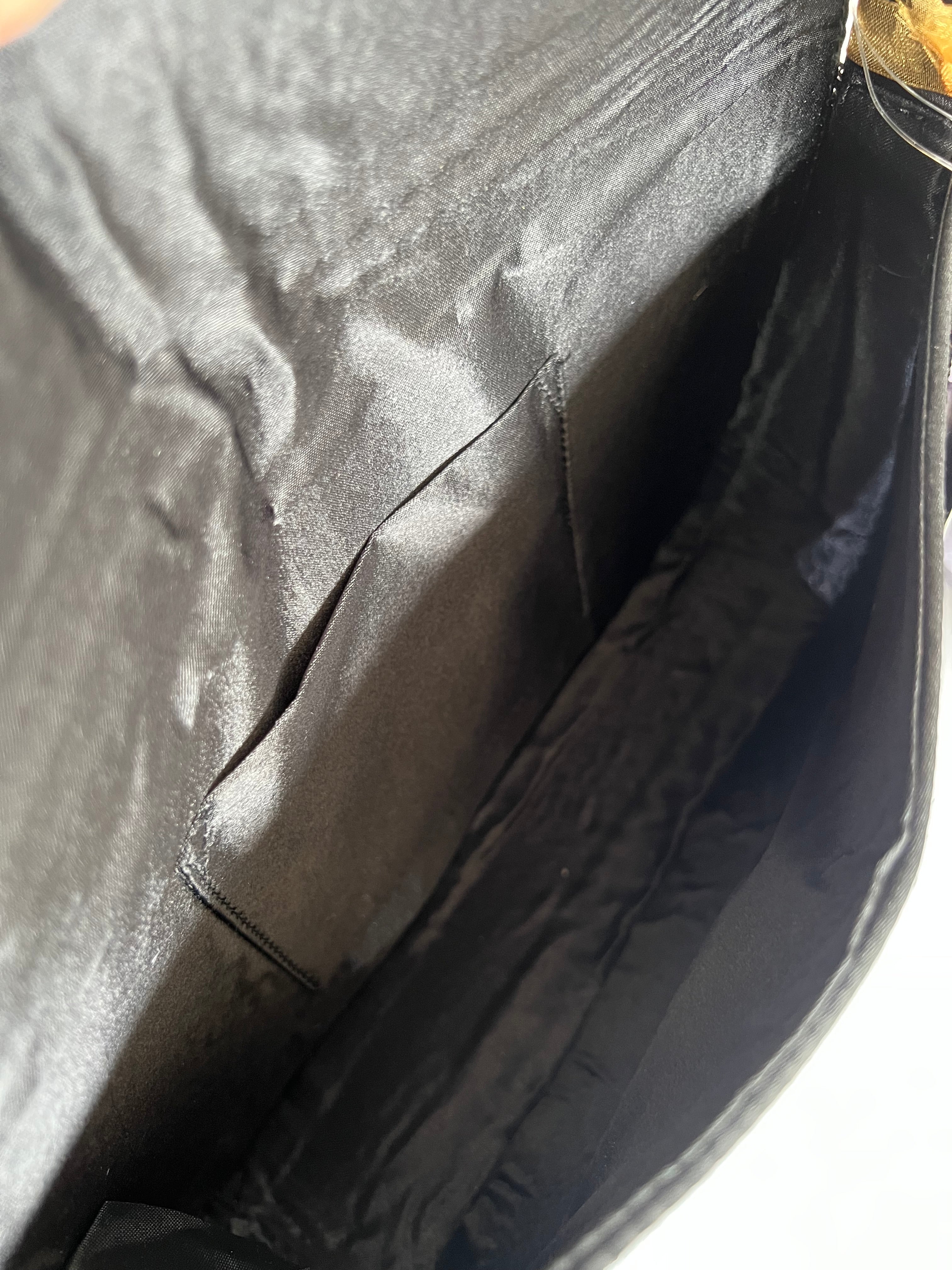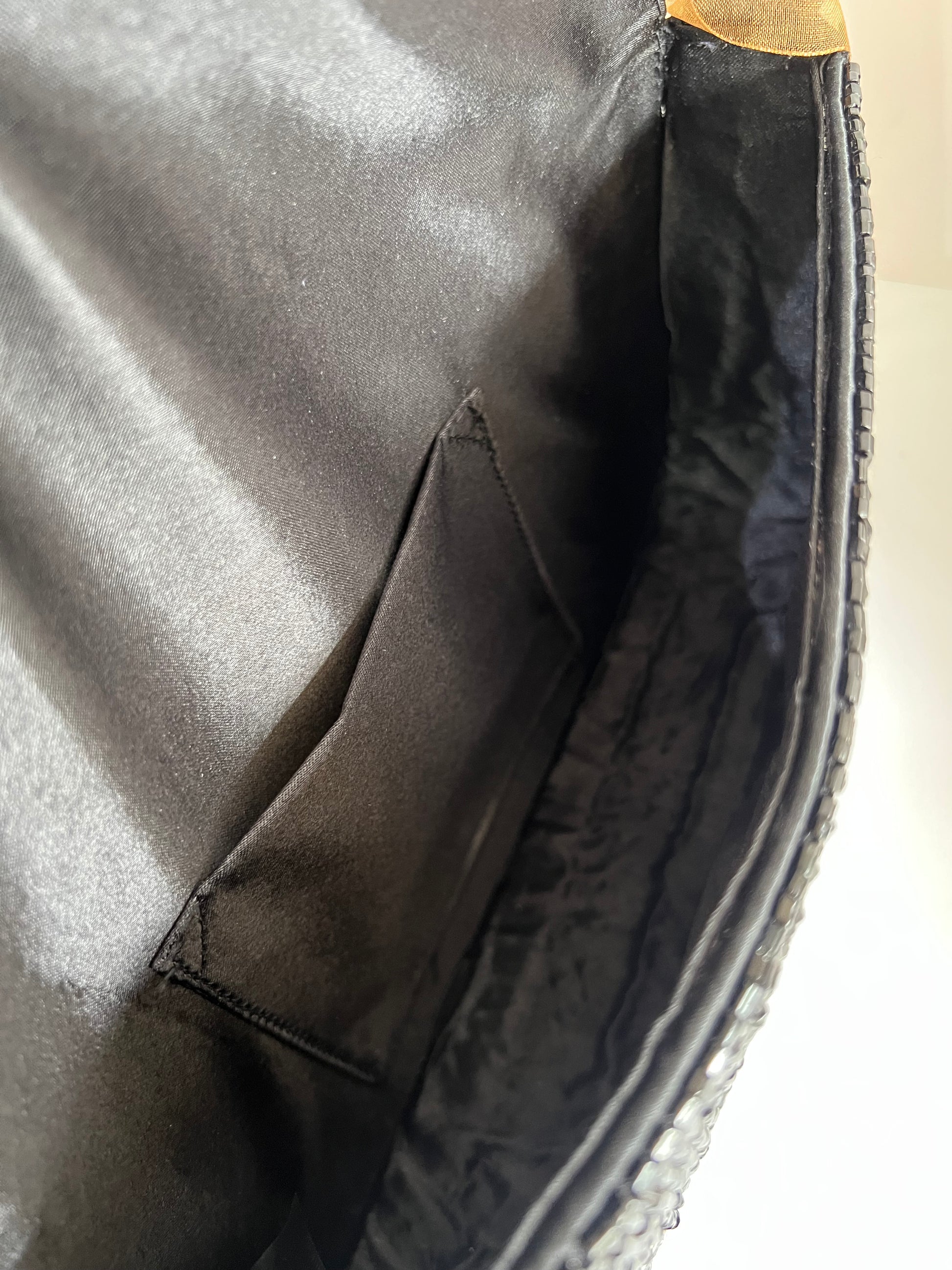 Bolso tipo clutch, estructura rígida. Cuenta con cierre superior de imán con agarradera dorada tridimensional.