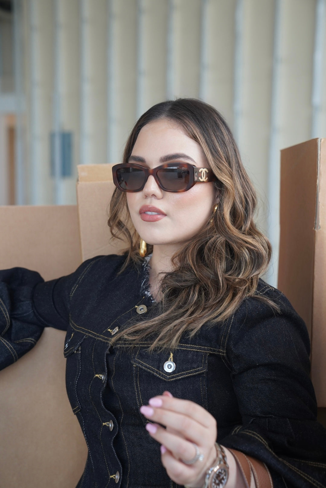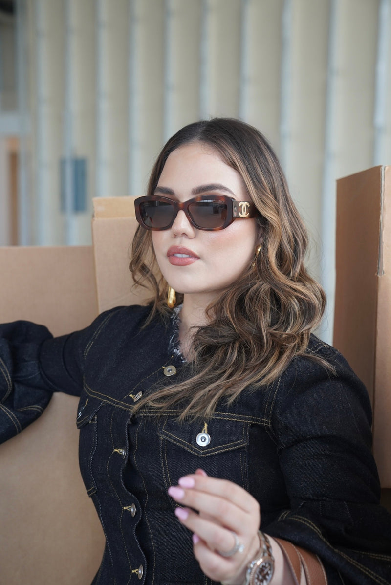 CHANEL Brown Rectangle Sunglasses