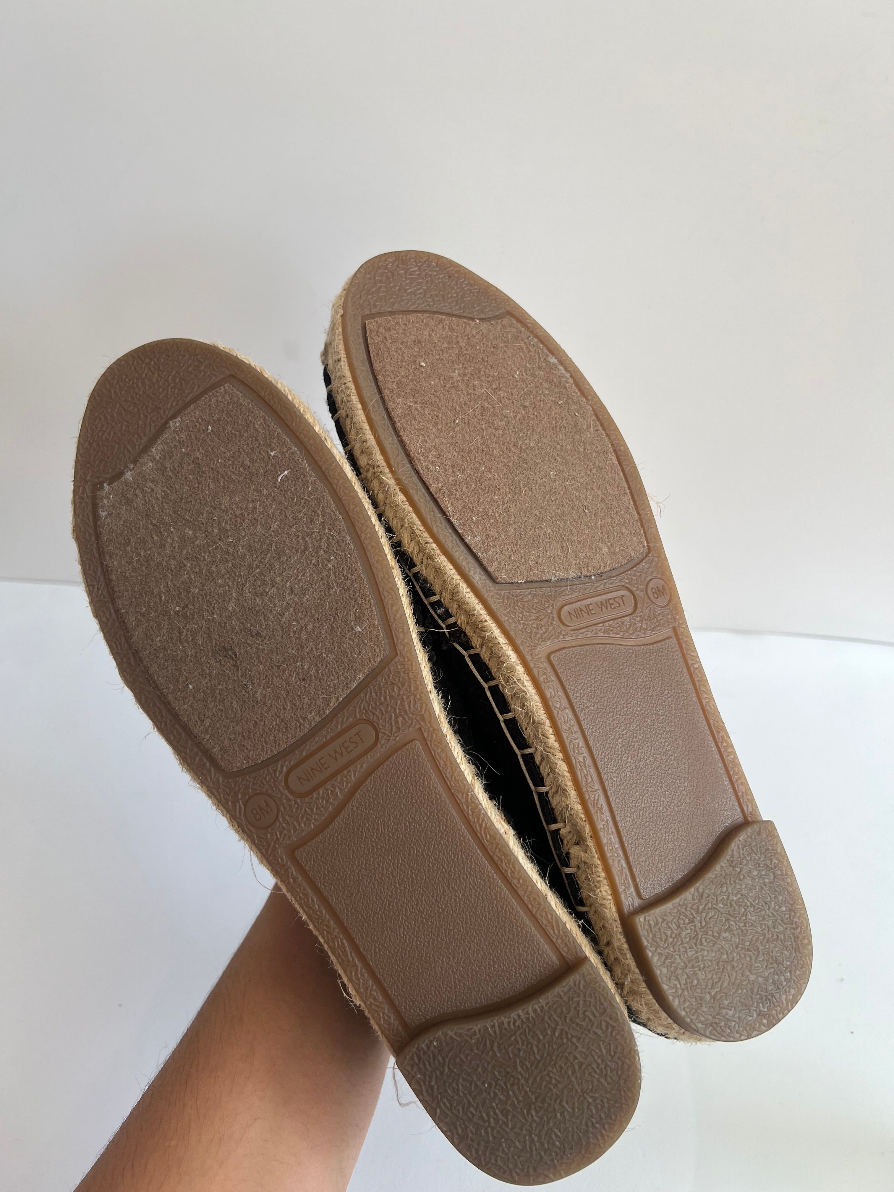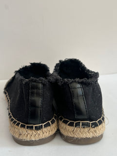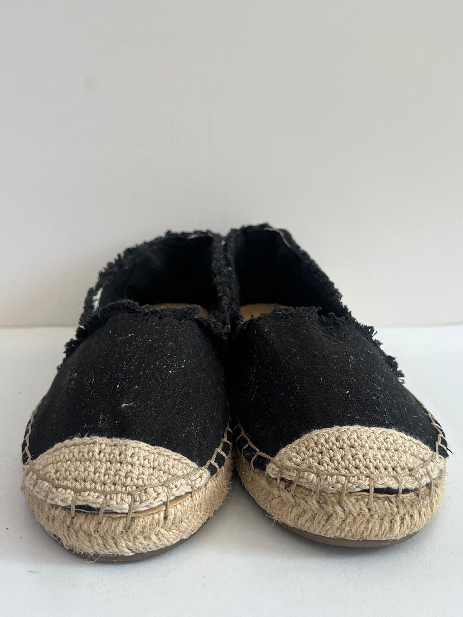 Alpargatas en tono negro con punta redondeada, confeccionadas en lona suave. Presentan suela de yute trenzado con base de goma.