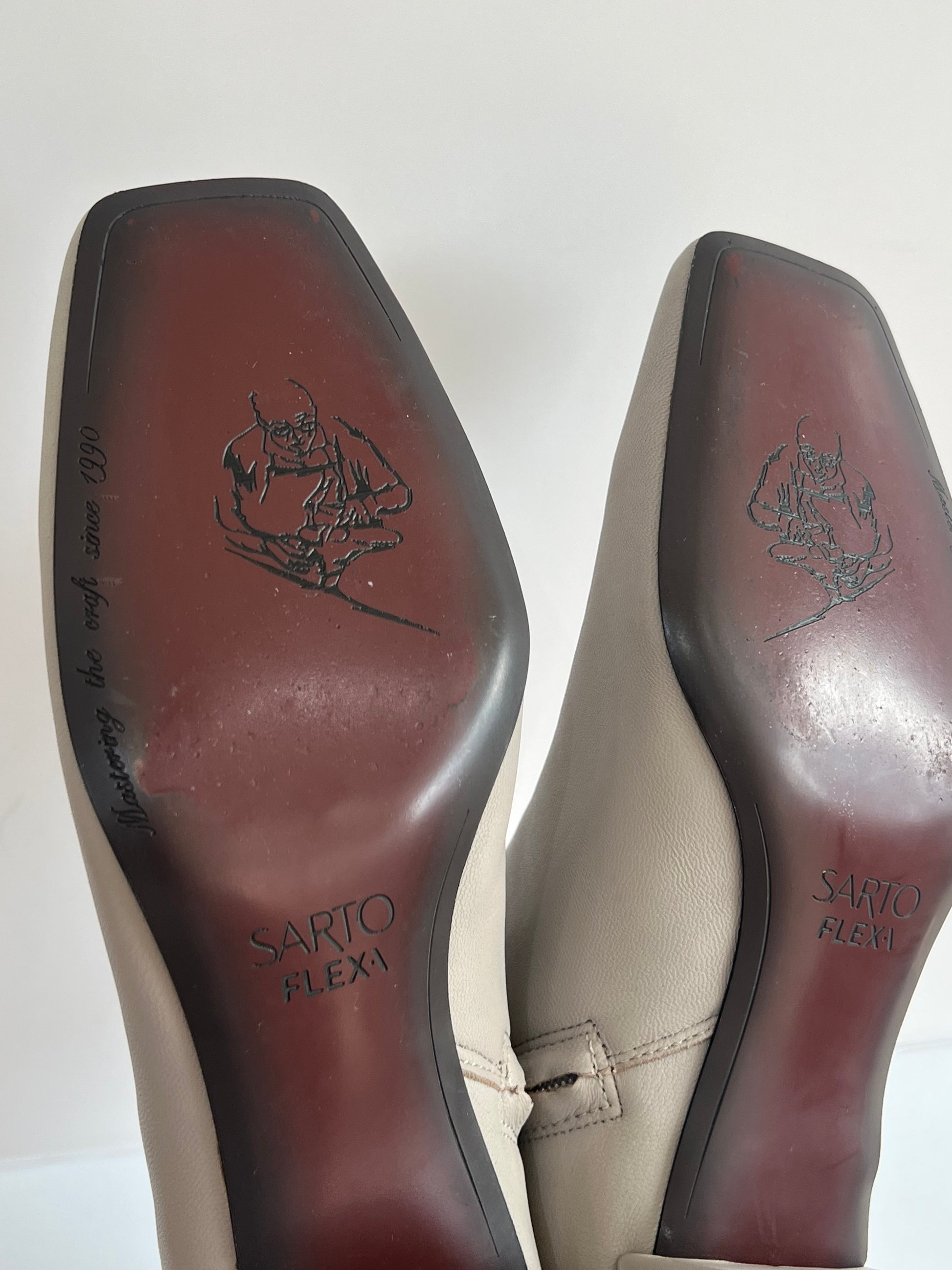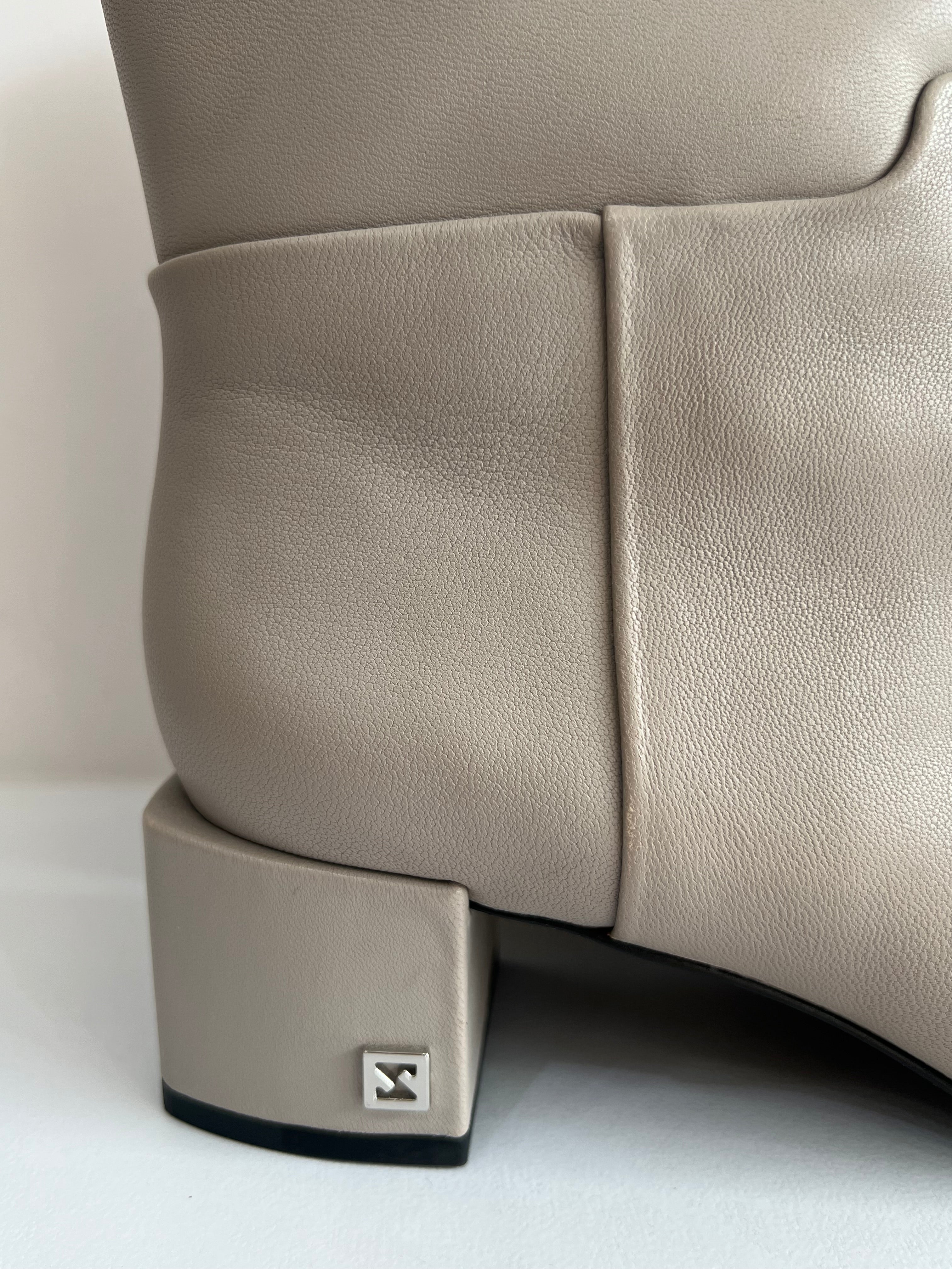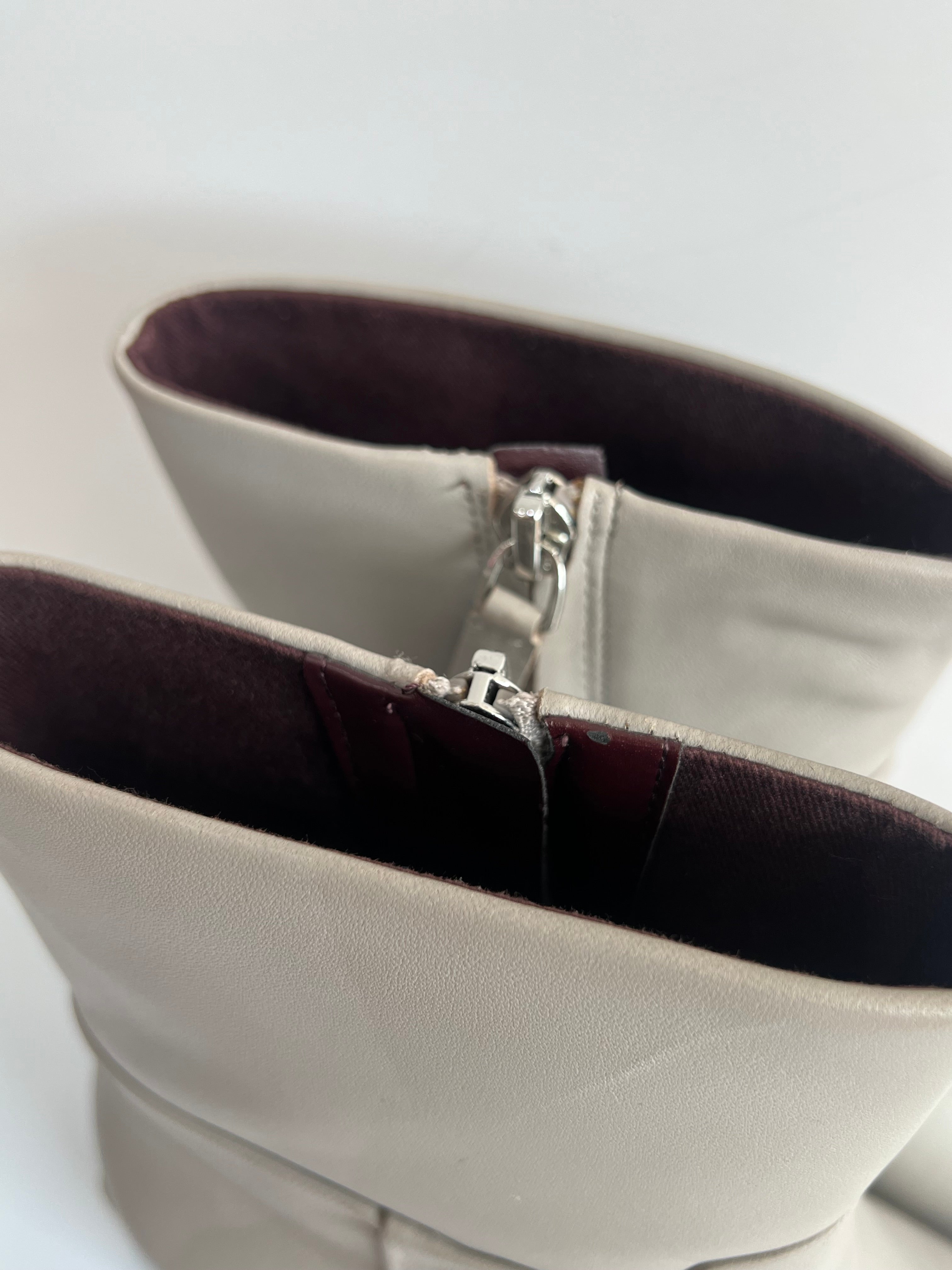 Elaborado en cuero con diseño de punta cuadrada y tacón bloque bajo. Cuenta con cierre lateral con cremallera.