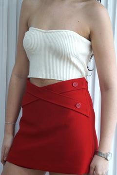 Esta falda short tiene un cierre de zipper en la parte trasera.