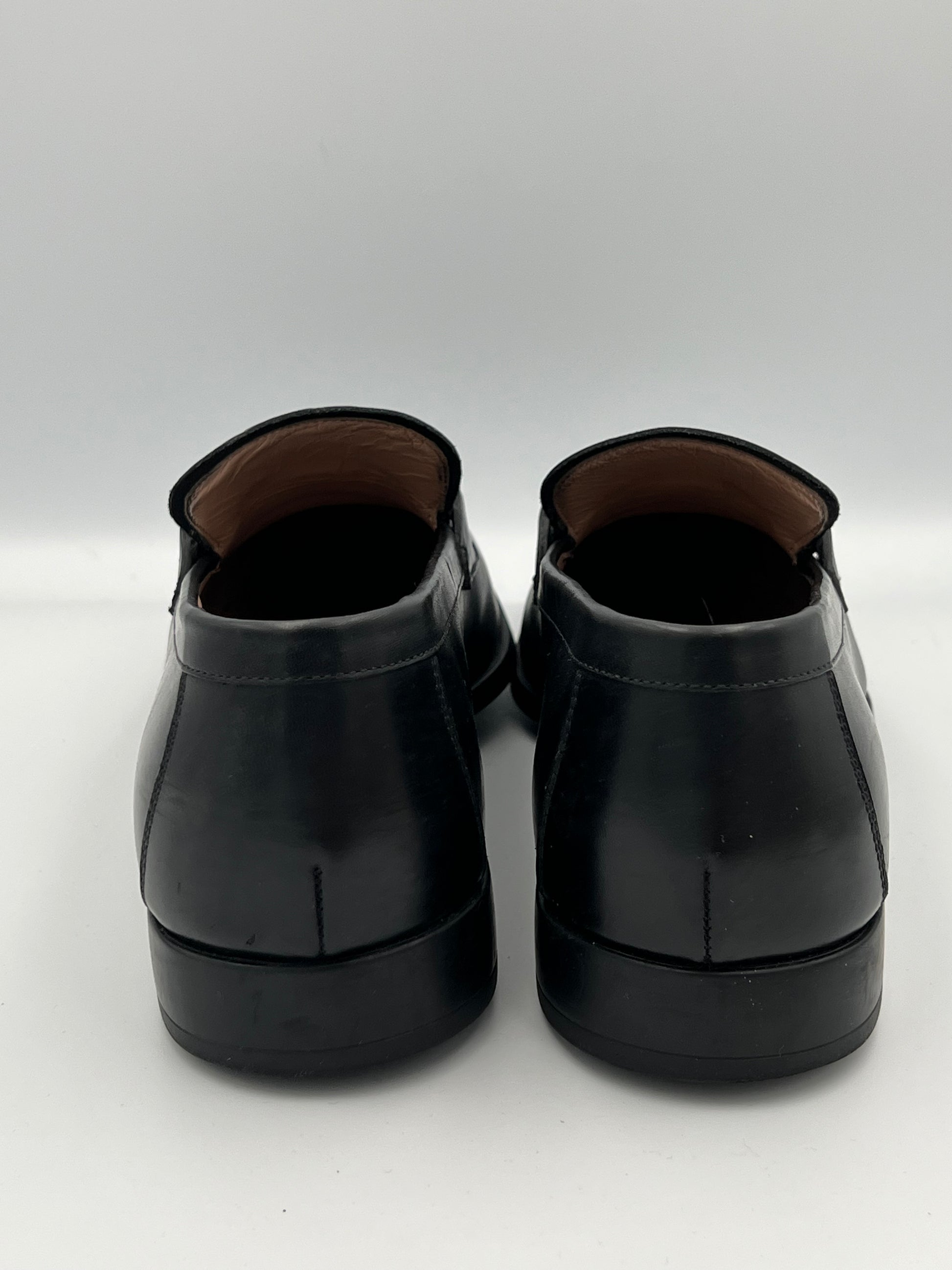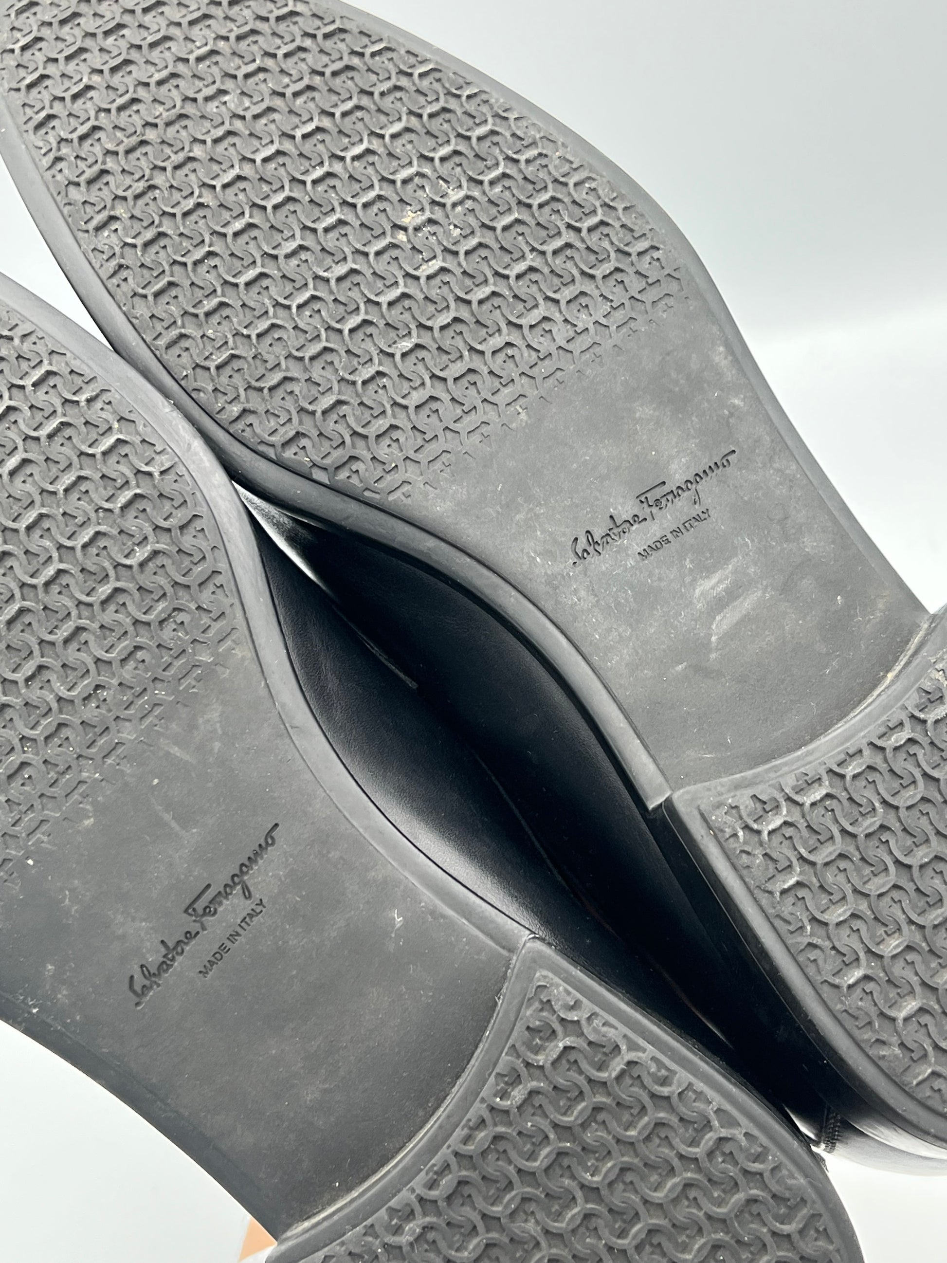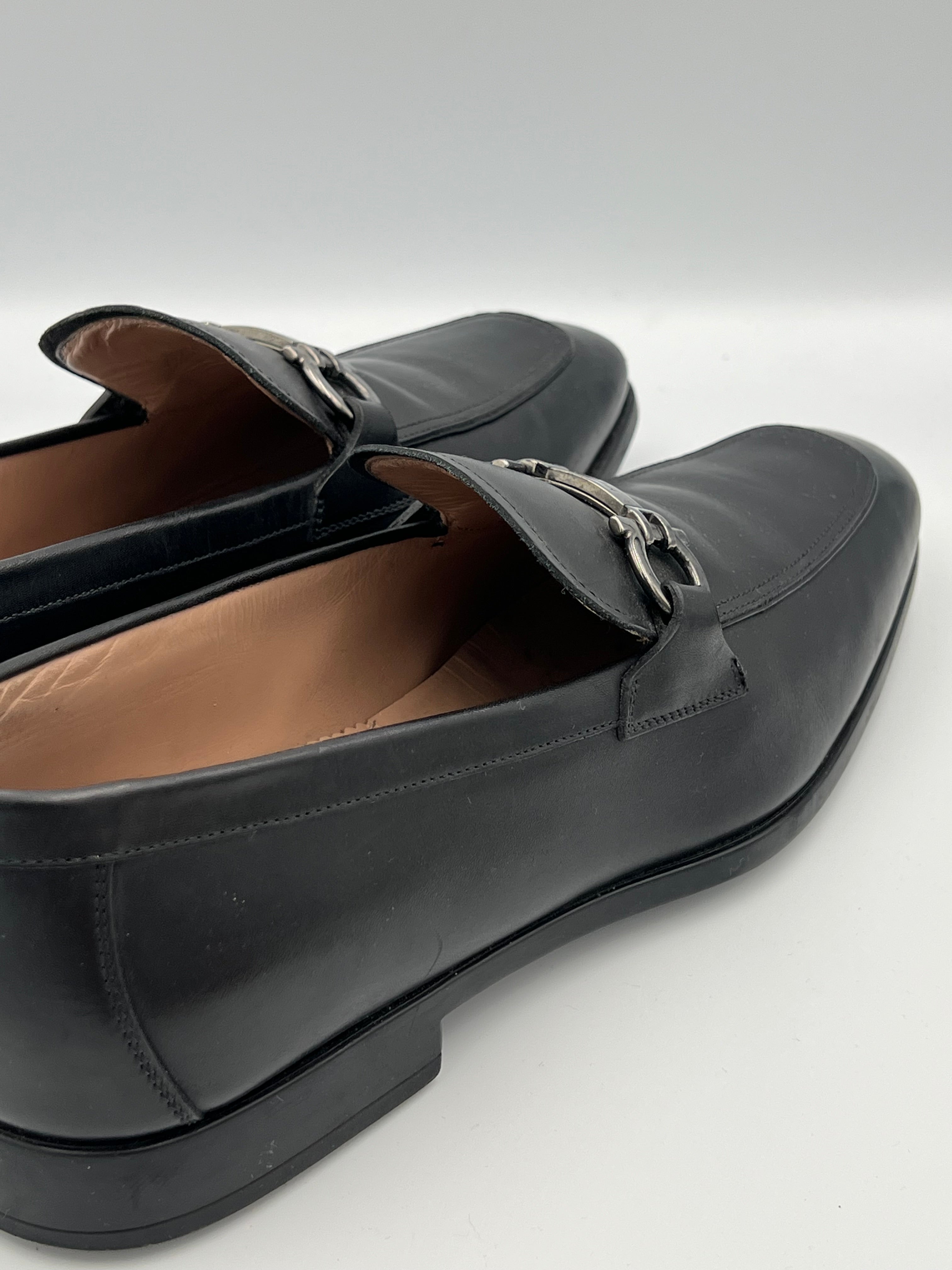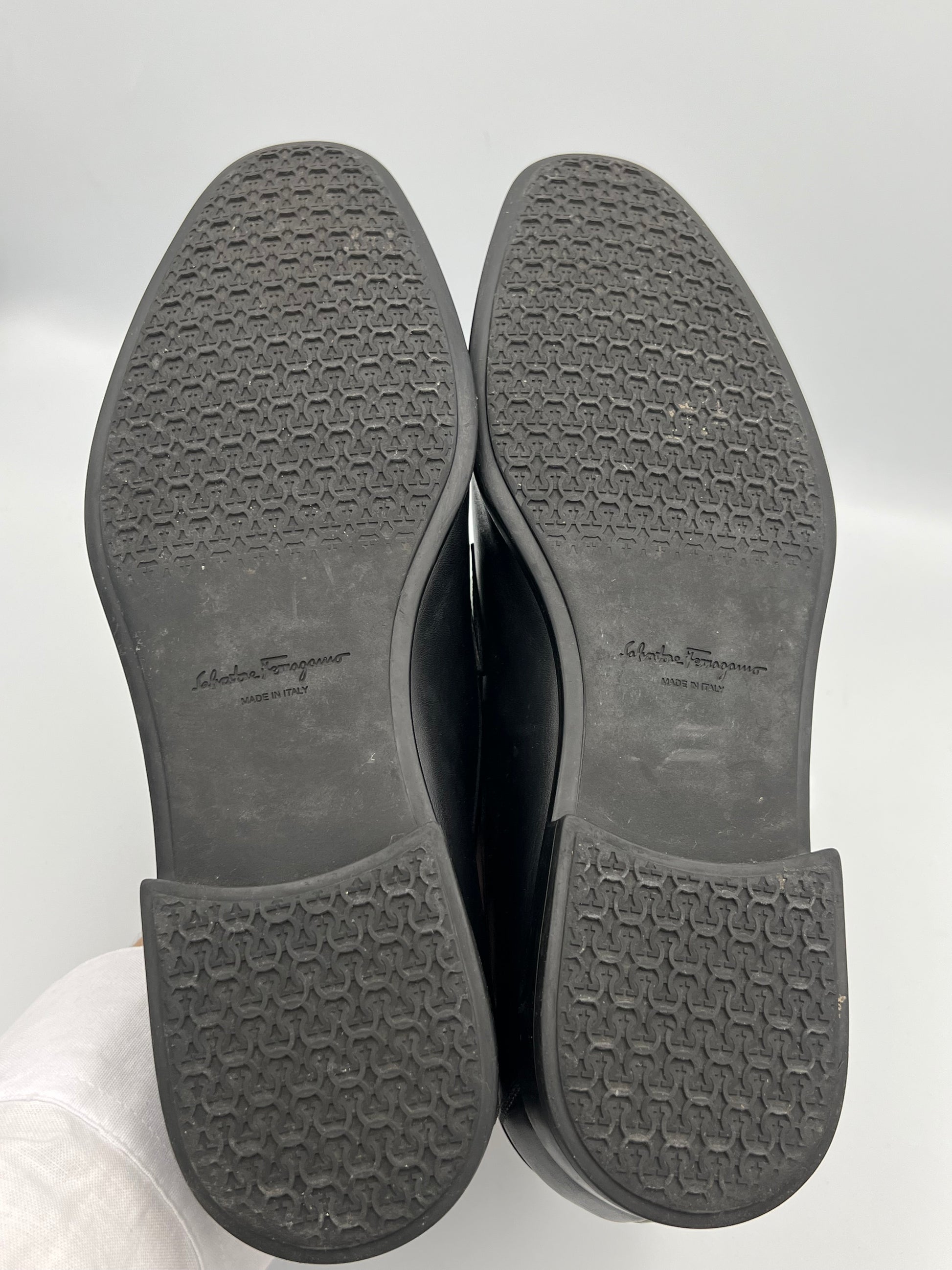 Mocasines Salvatore Ferragamo Gancini confeccionados en piel lisa de alta calidad. Presentan empeine de una sola pieza, detalle Gancini metálico aplicado en el frente, forro interior en cuero y plantilla acolchada para soporte. La estructura se completa con suela de cuero con inserciones de goma y costuras reforzadas que aseguran firmeza y durabilidad.