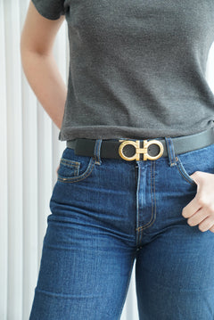 Gancini Belt In Navy Blue