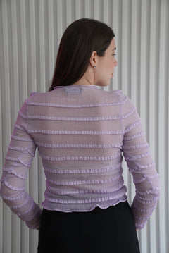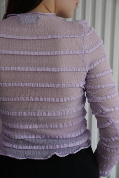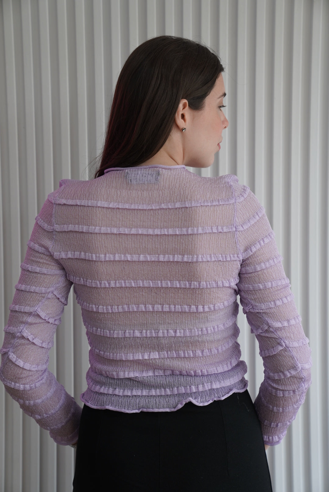 Este top manga larga tiene tela semi-transparente. Es ligera y cómoda.