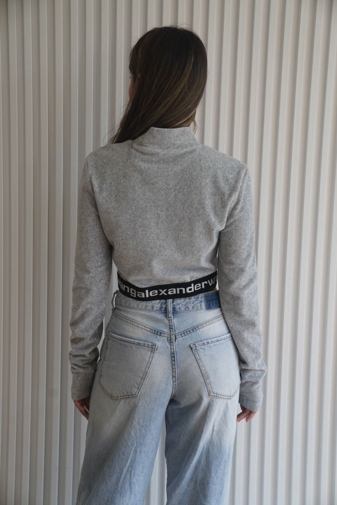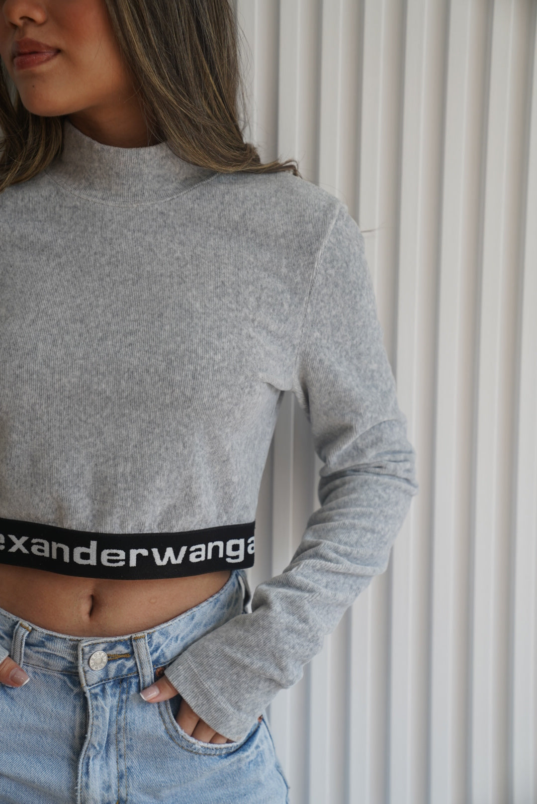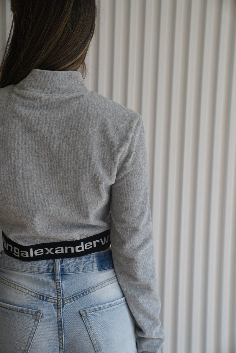ALEXANDER WANG Gray Long Sleeve Crop Top