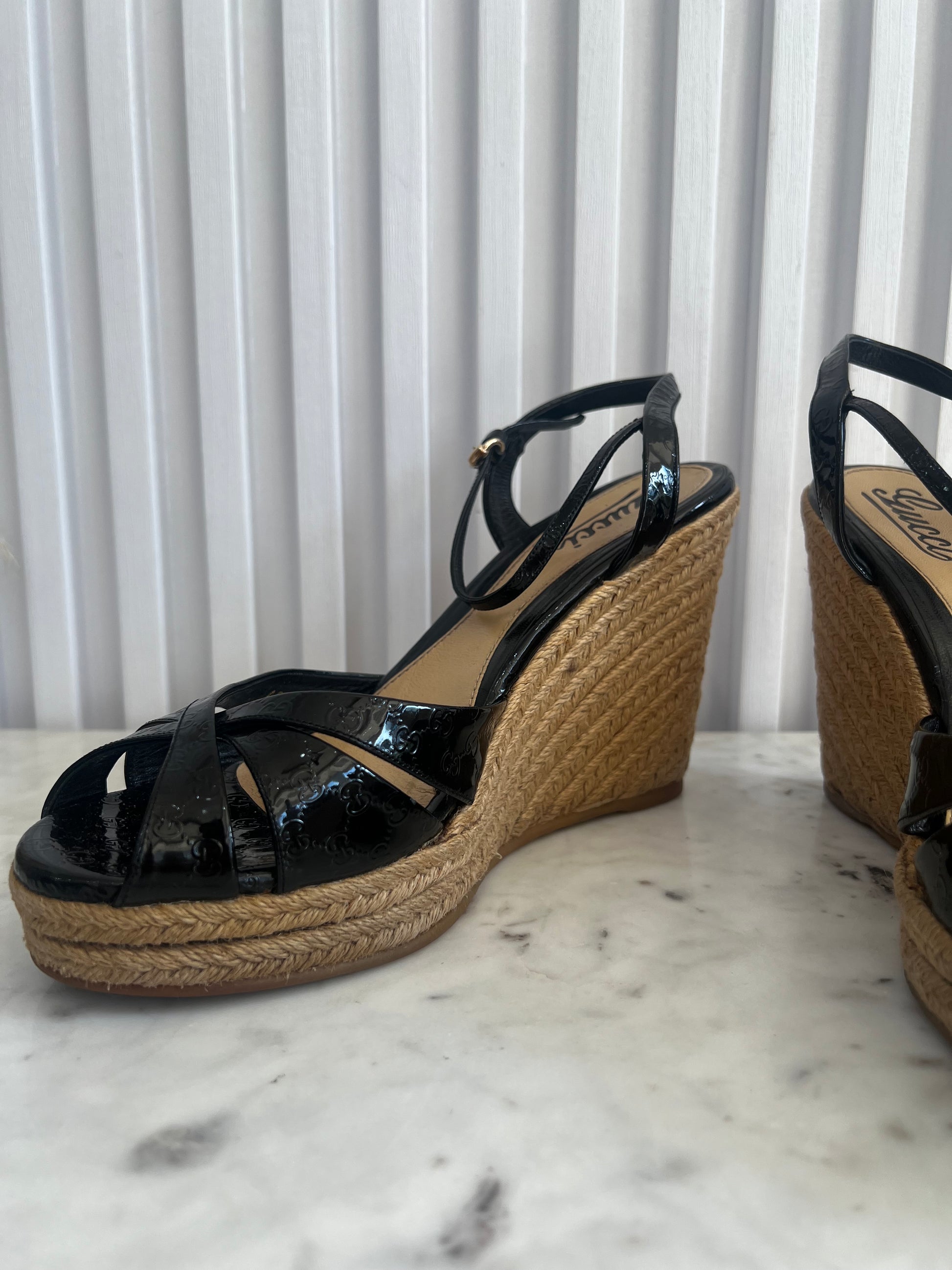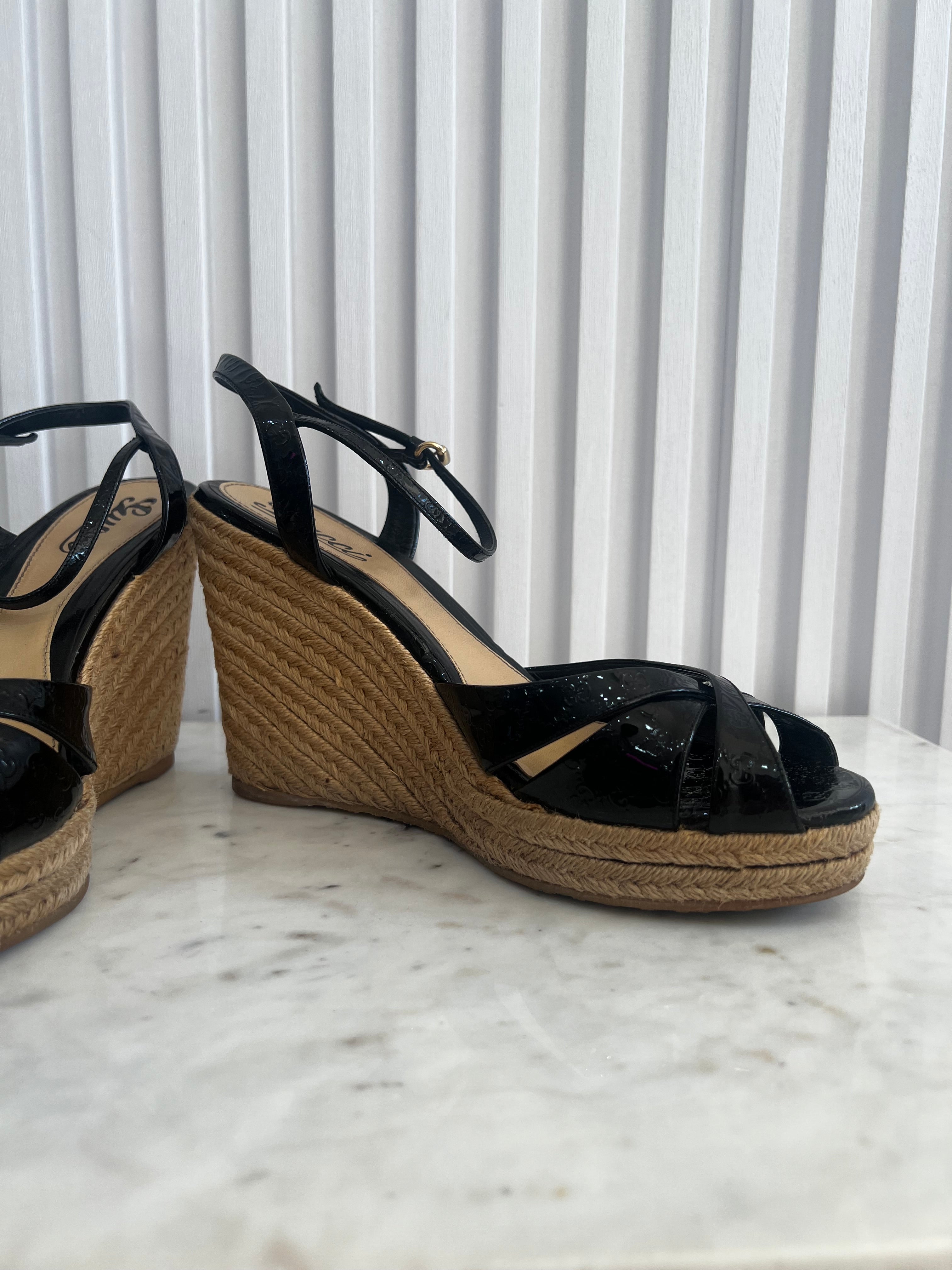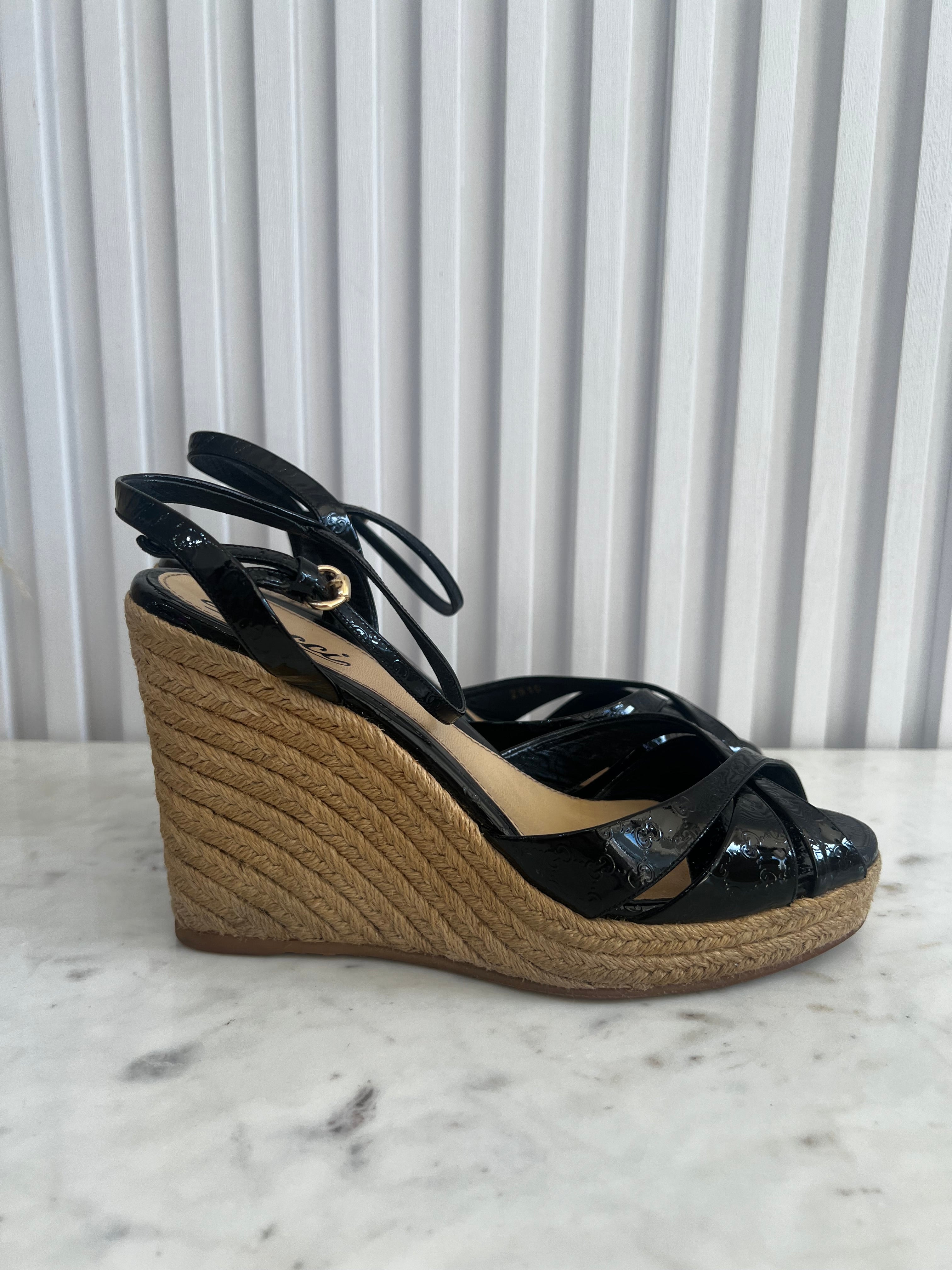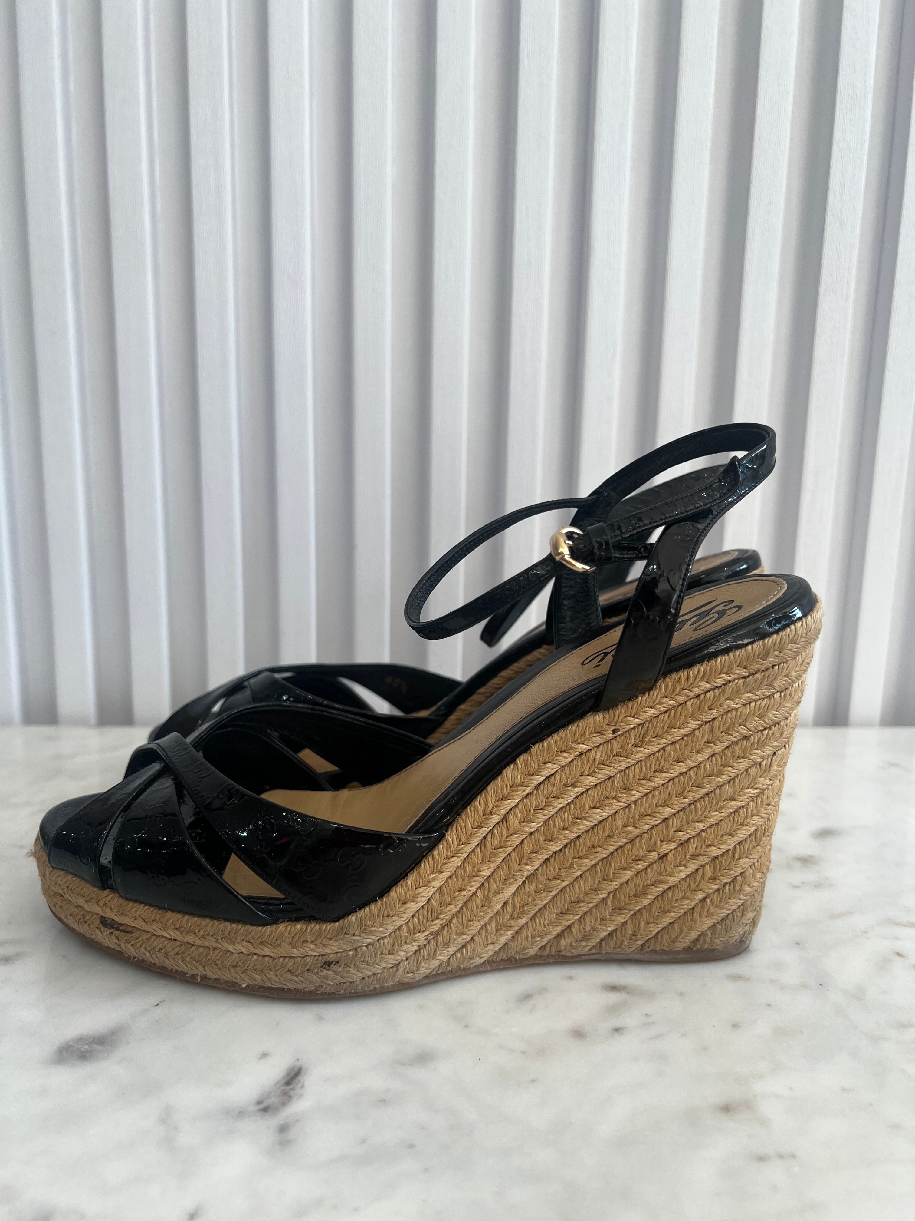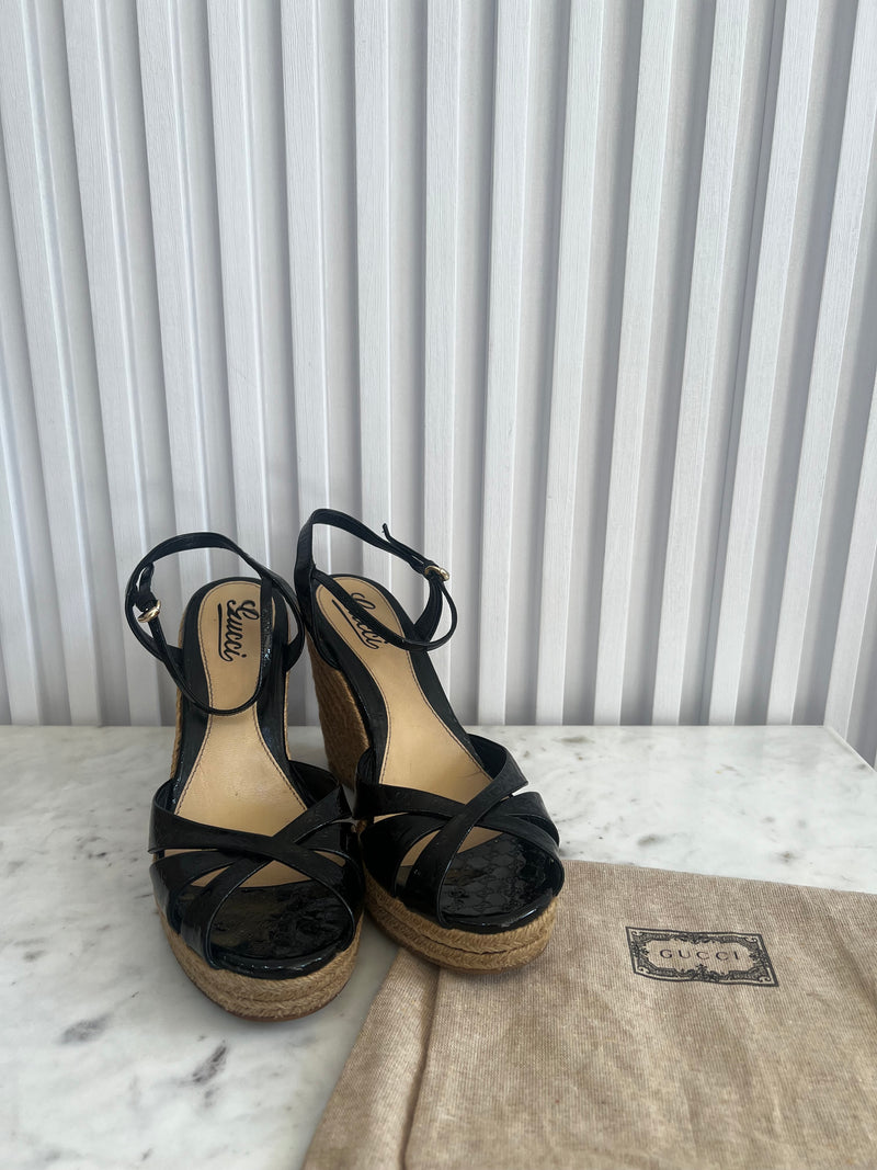 Guccissima Patent Espadrille Wedges