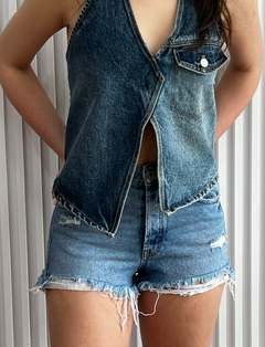 Short de cintura alta, con 2 bolsillos frontales y 2 bolsillos traseros, bajos deshilachados, cierre con 4 botones en la parte delantera.