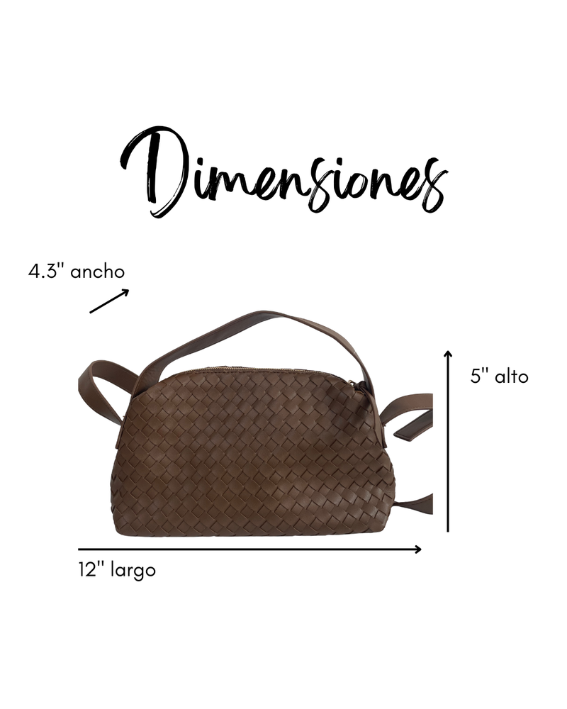 Bolso de hombro o crossbody, con estructura suave. Cuenta con una correa ajustable para llevar al hombro o cruzado y cierre tipo cremallera.