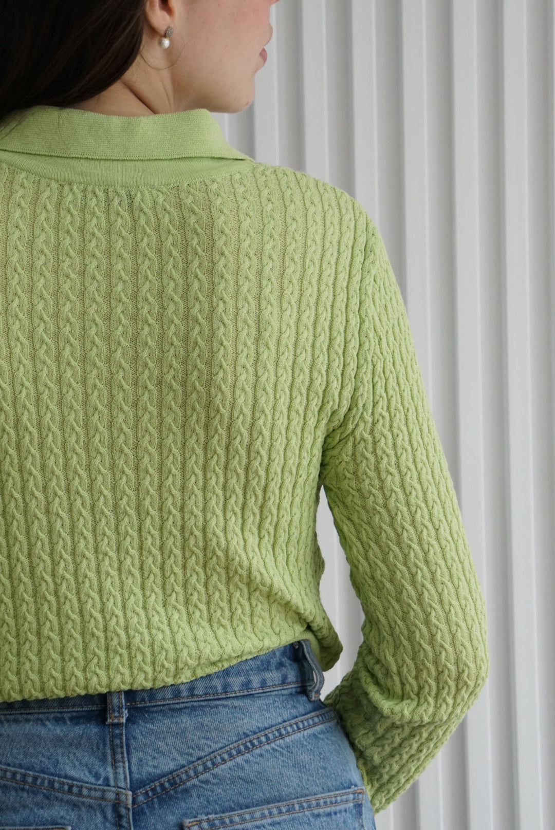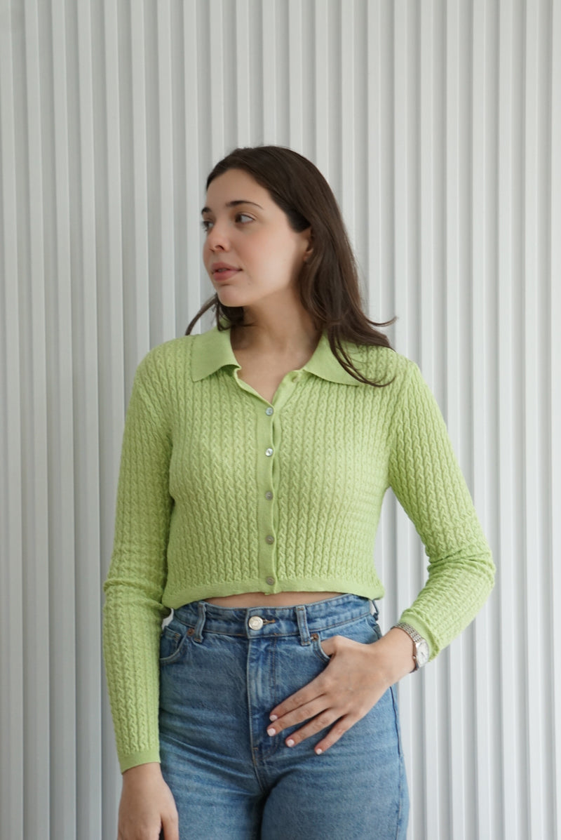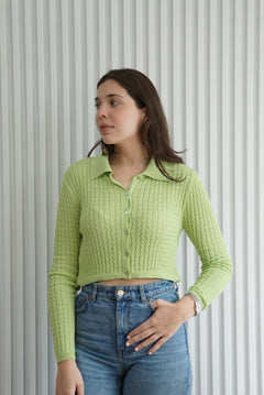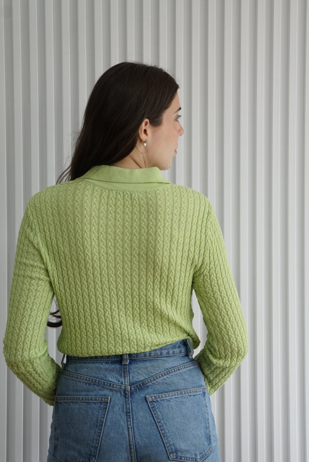 Este sueter verde, es delgado con botones. Ideal para la temporada de otoño e invierno.