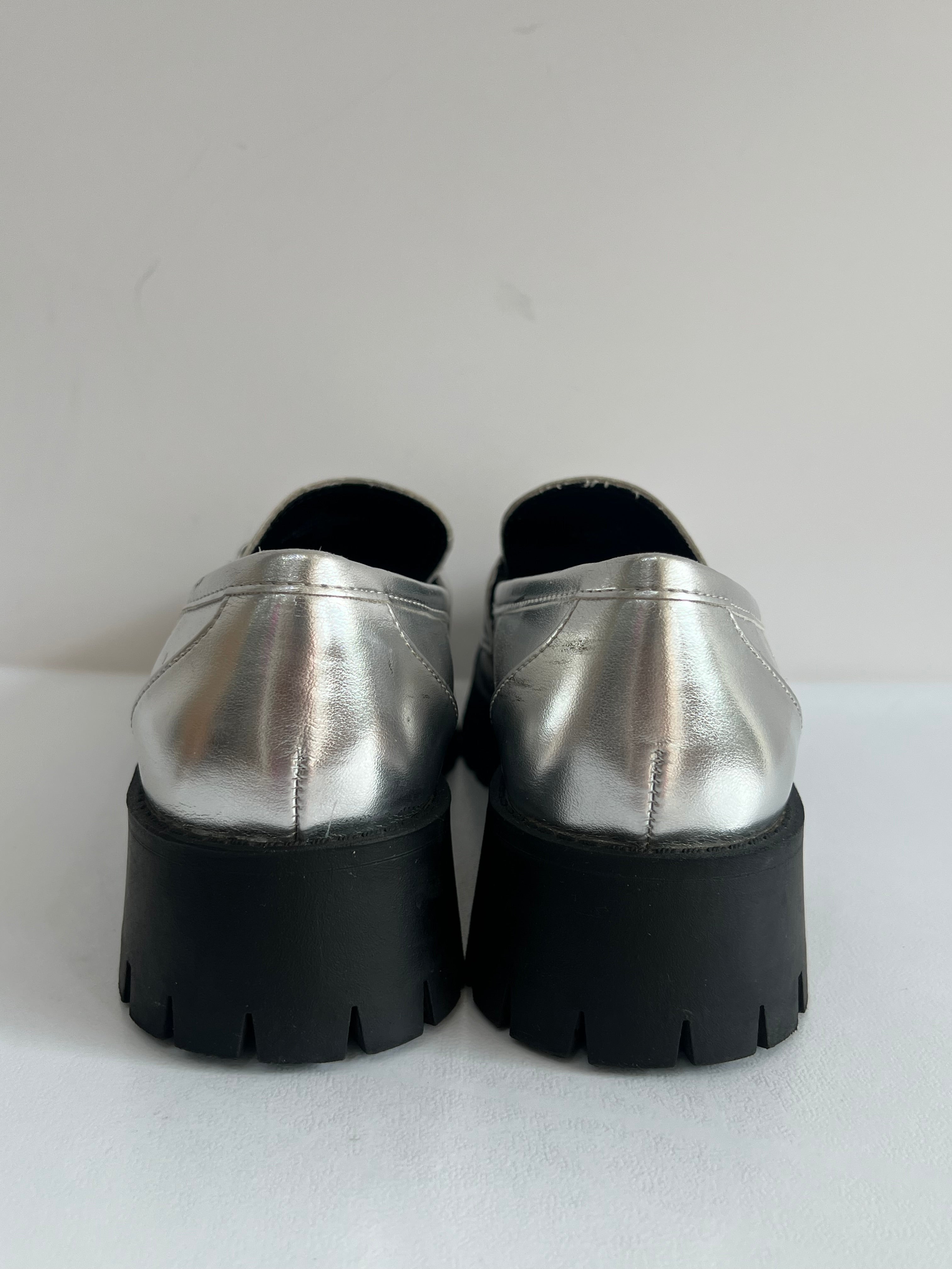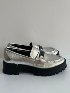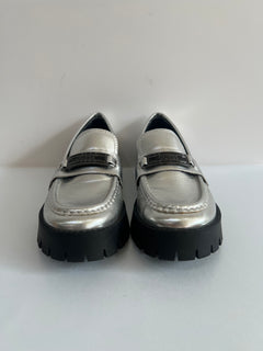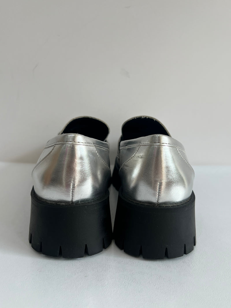 Metallic Silver Loafers