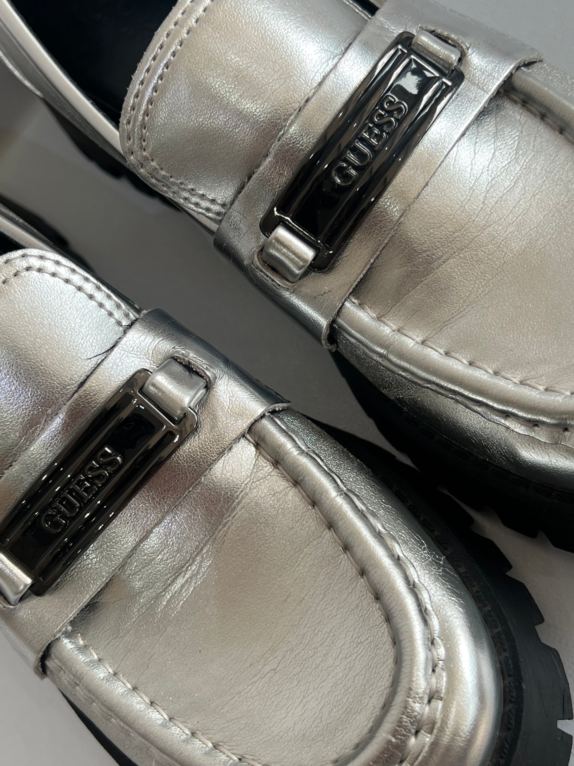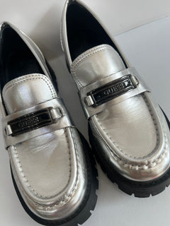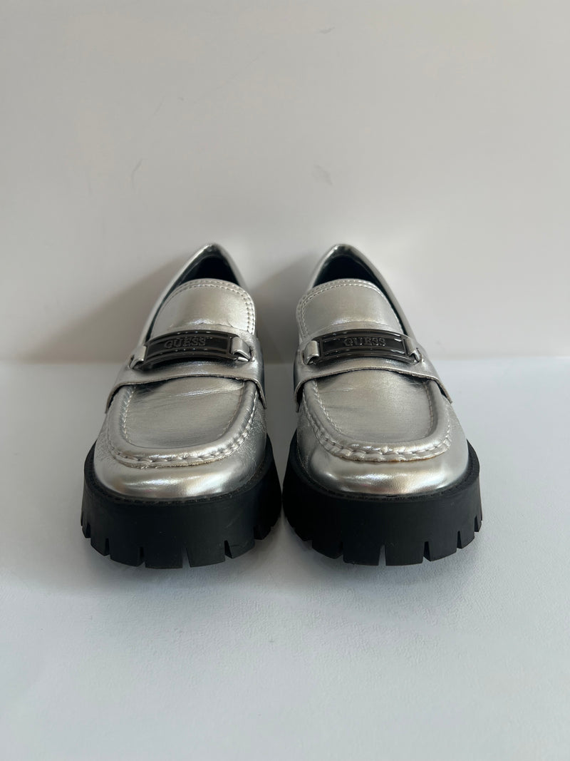 GUESS Metallic Silver Loafers