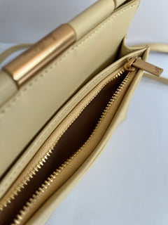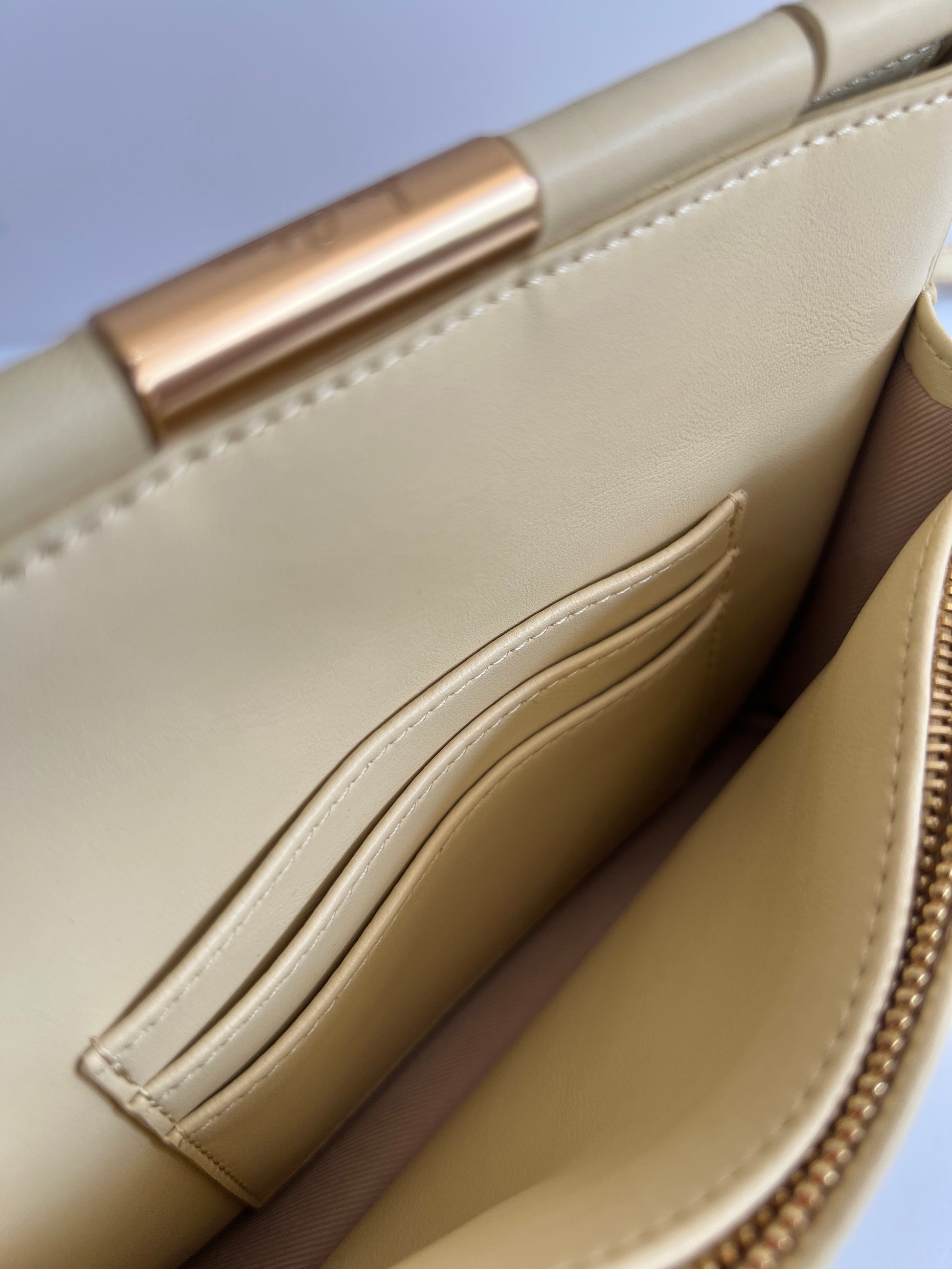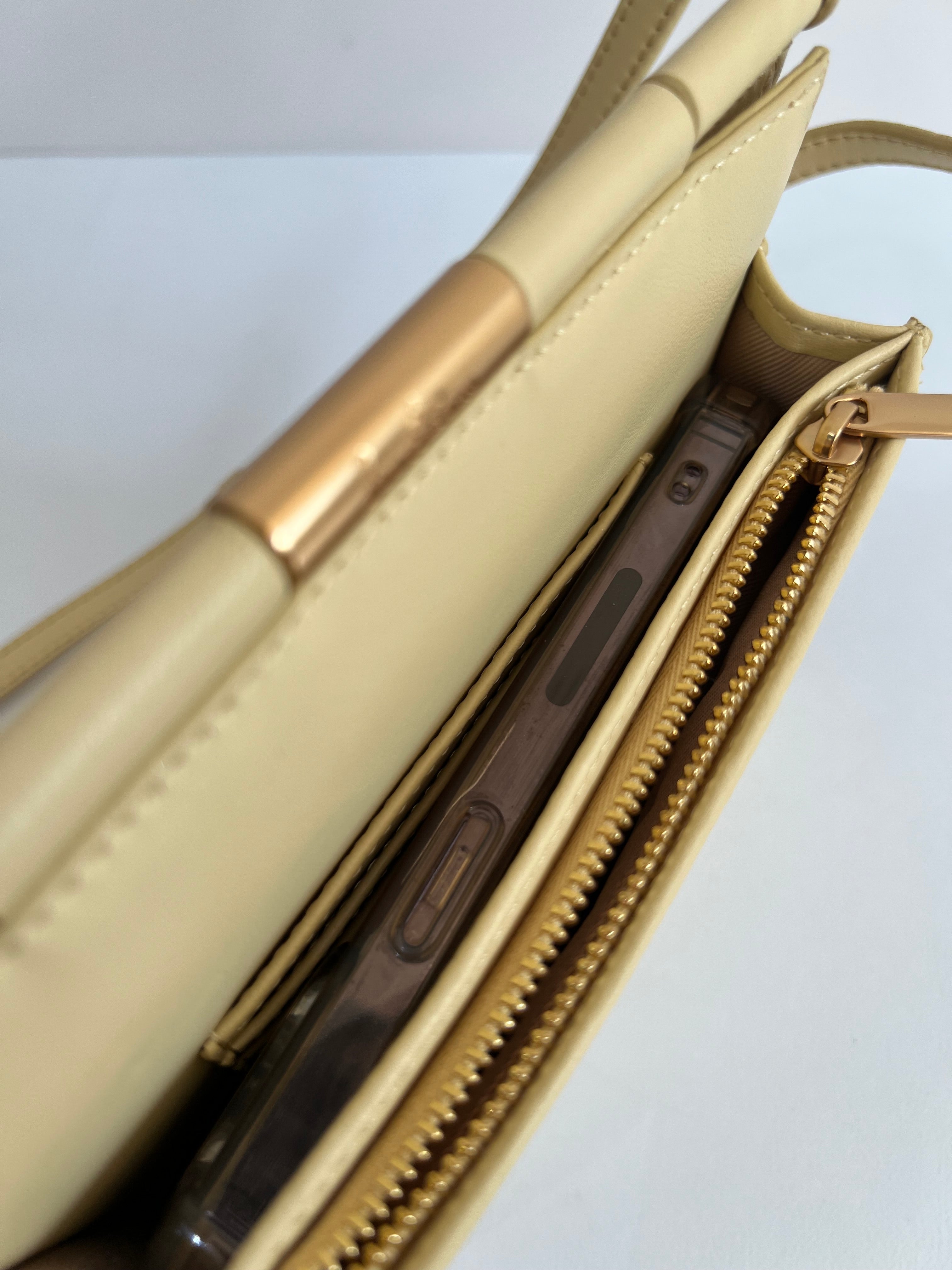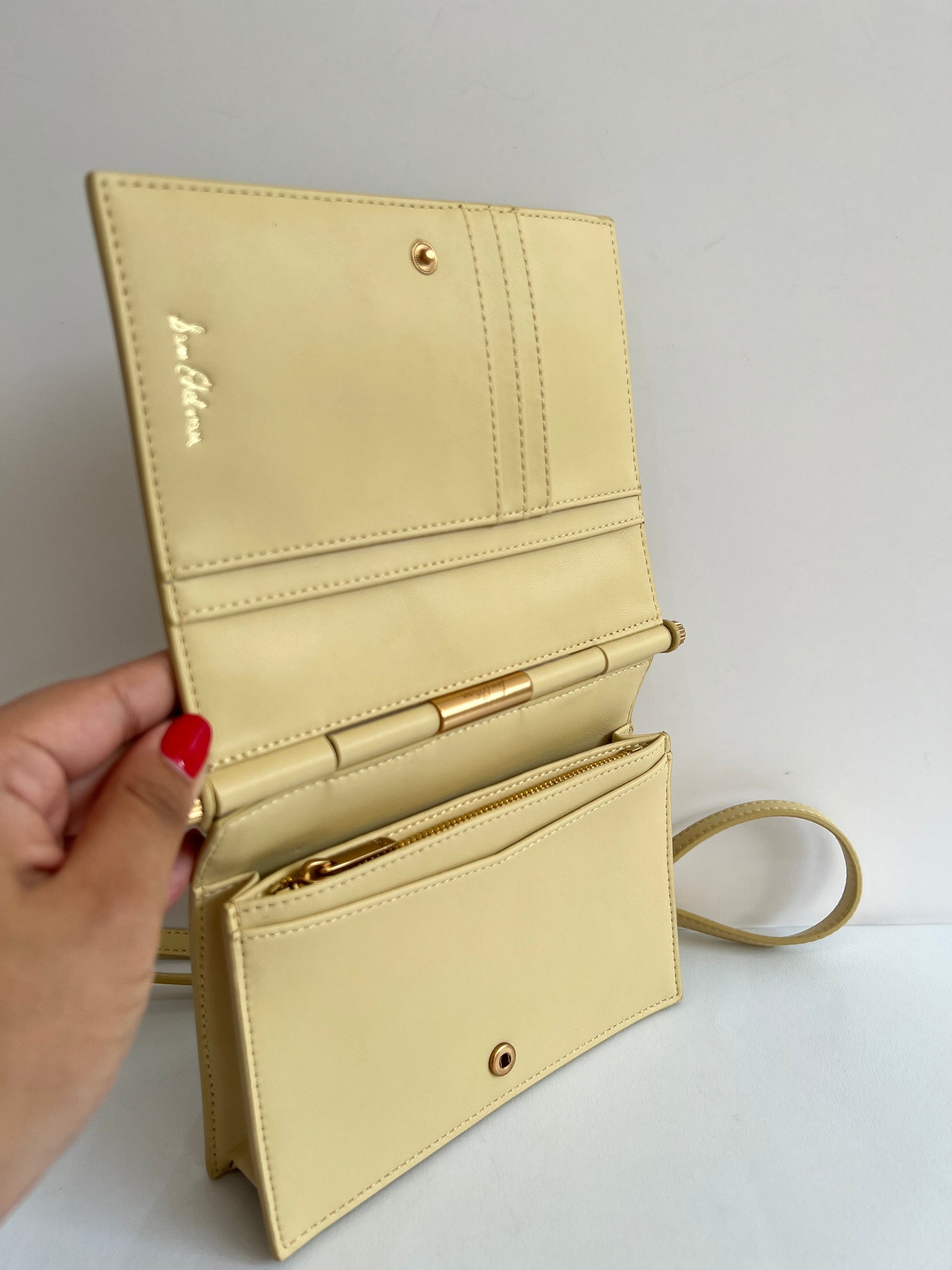 bolso pequeña con crossbody strap, cierre tipo solapa con compartimentos interiores para tarjeta y bolsillo con cierre de cremallera.
