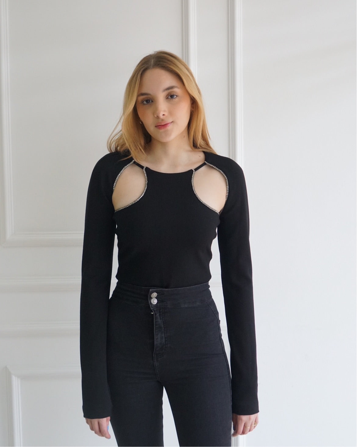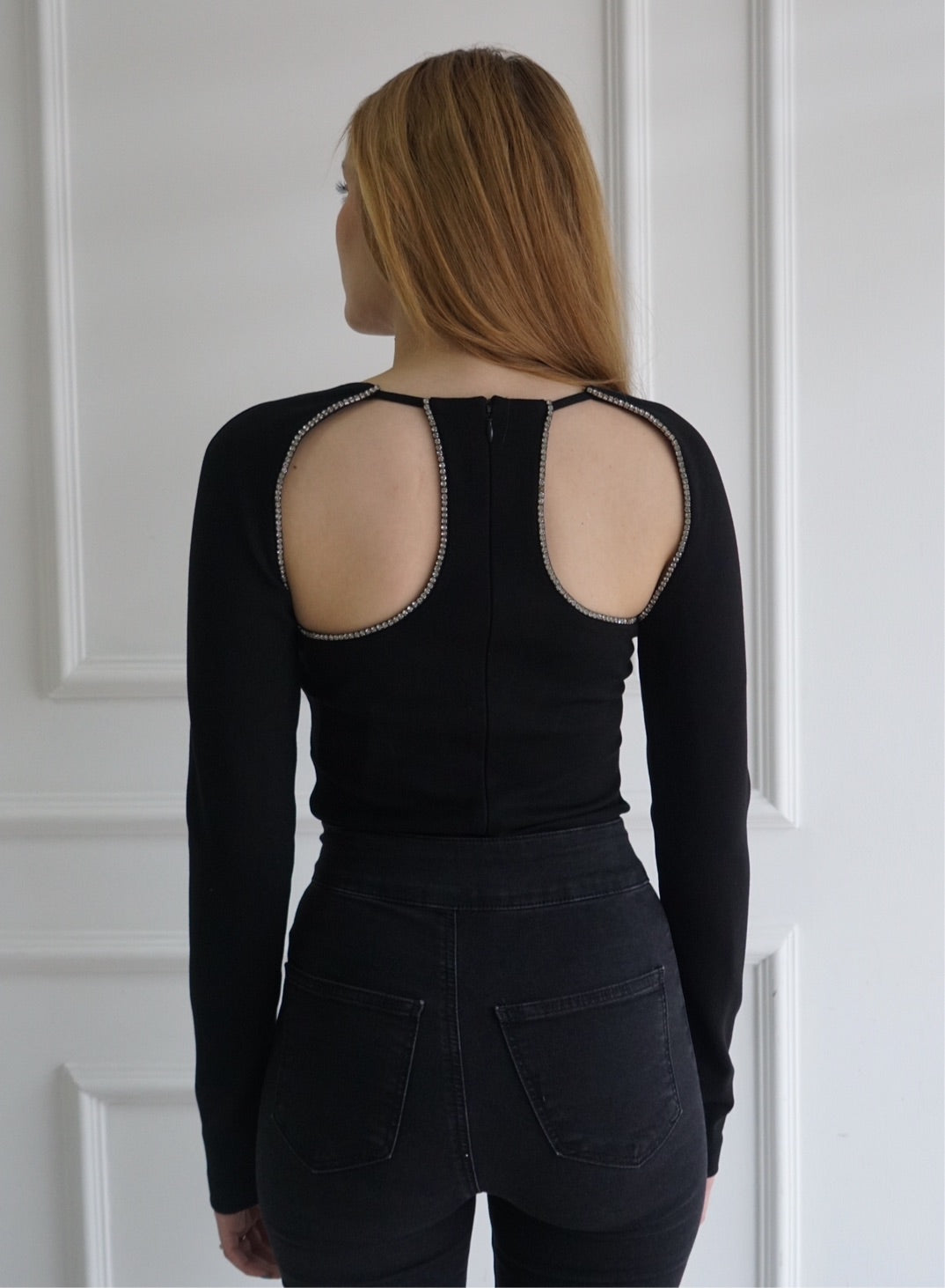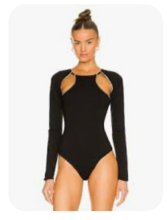 Bodysuit marca “NBD” color negro, con detalles de pedrería en la parte superior, perfecto para una salida casual o de noche.