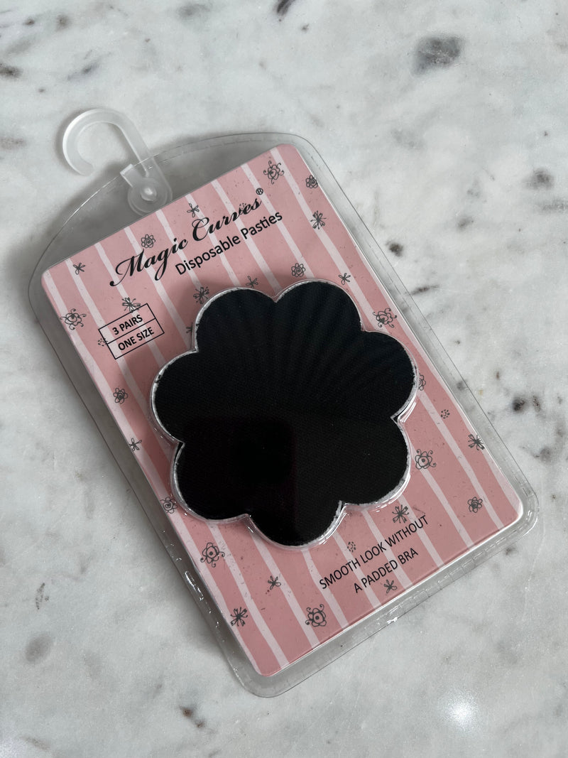 Cubre pezones en forma de flor, color negro, a prueba de agua y sudor, desechable.