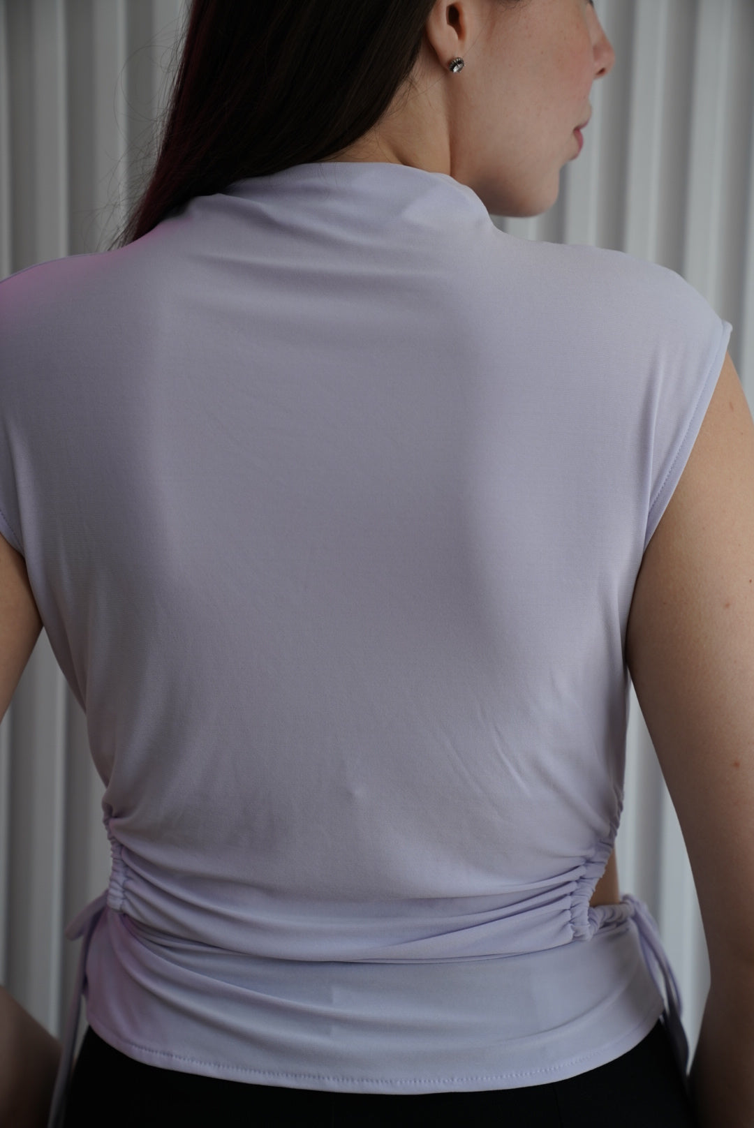 Este top tiene escotes en la cintura y cuenta con un cuello medio alto.