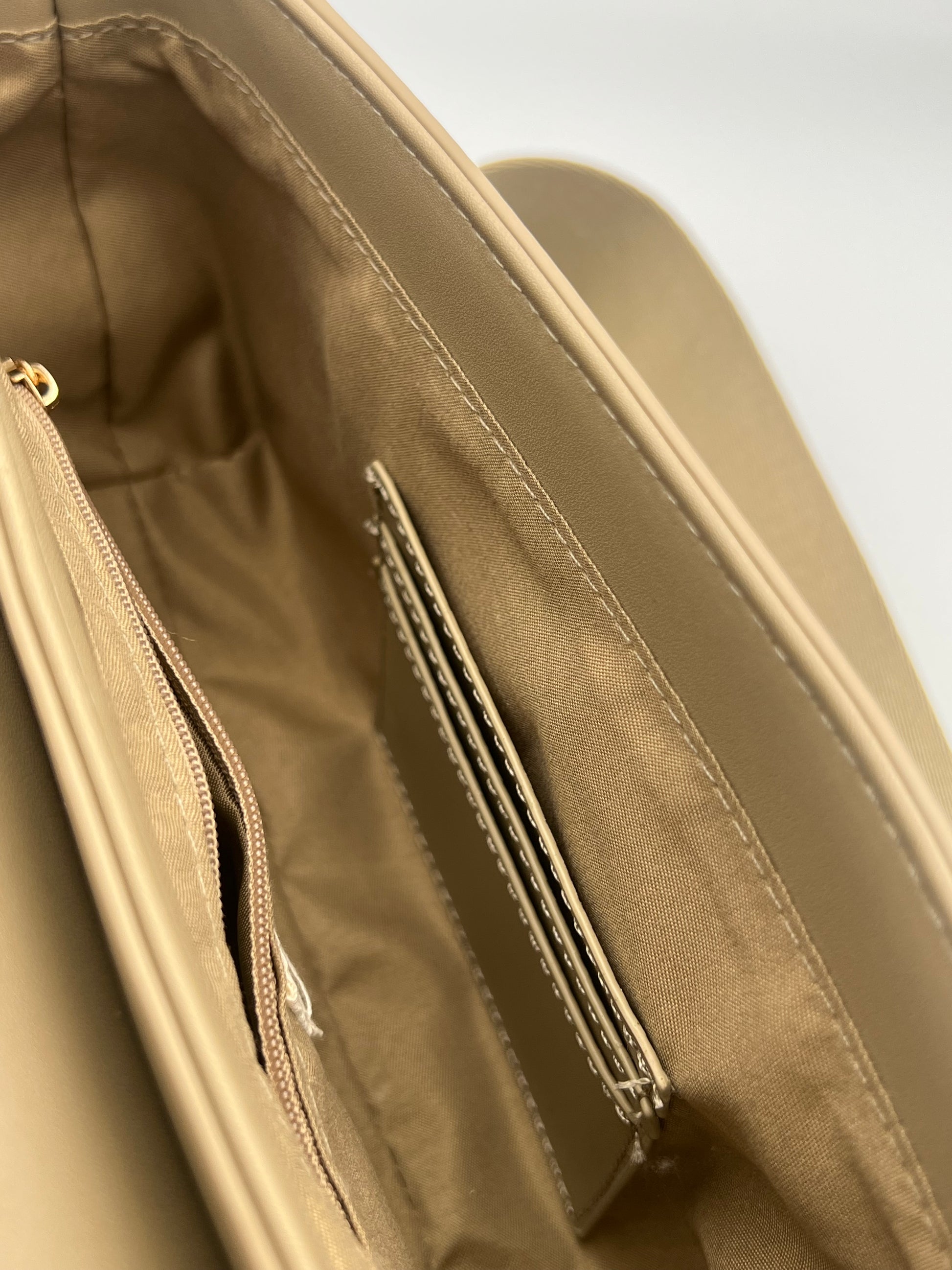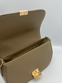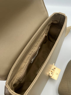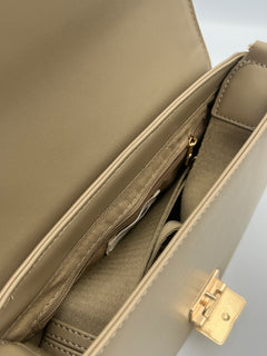 bolso crossbody, cuenta con strap de cuero, su interior es de tela con compartimento para llevar tarjetas y bolsillo con cierre de cremallera.