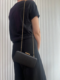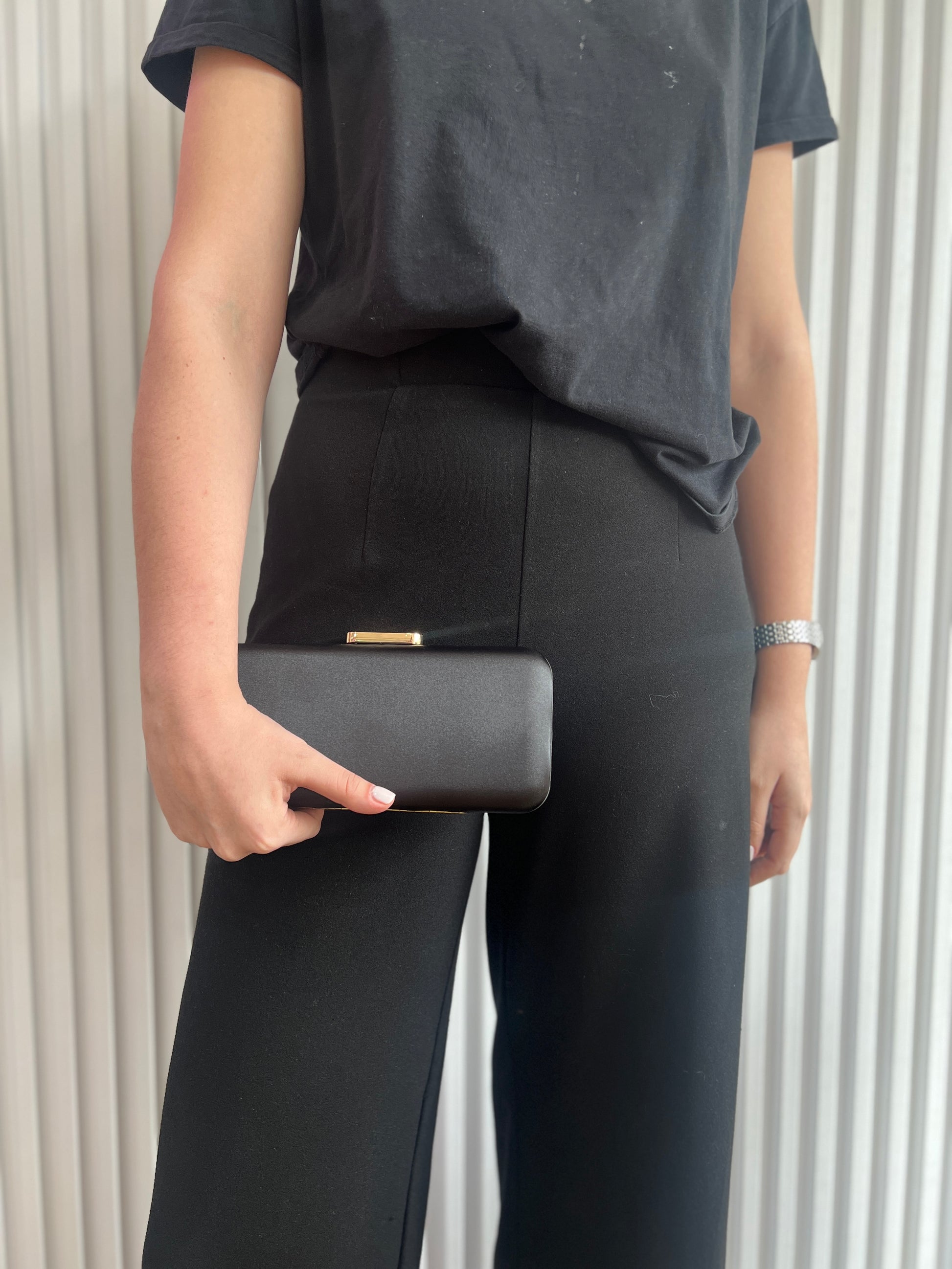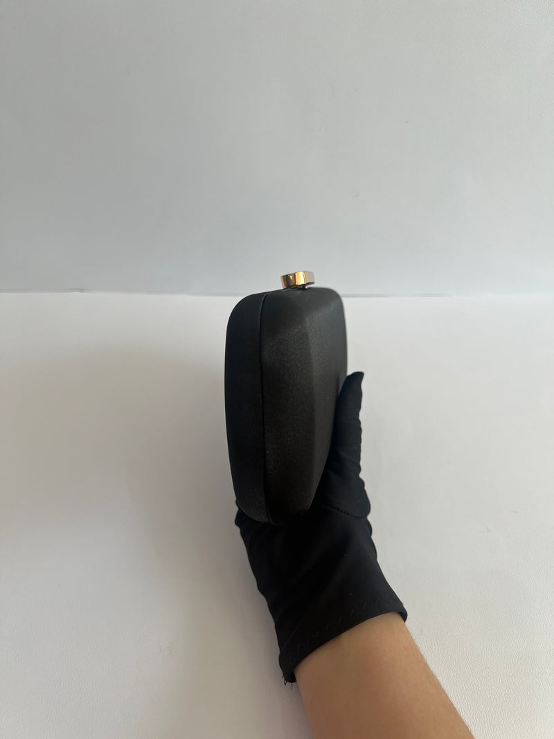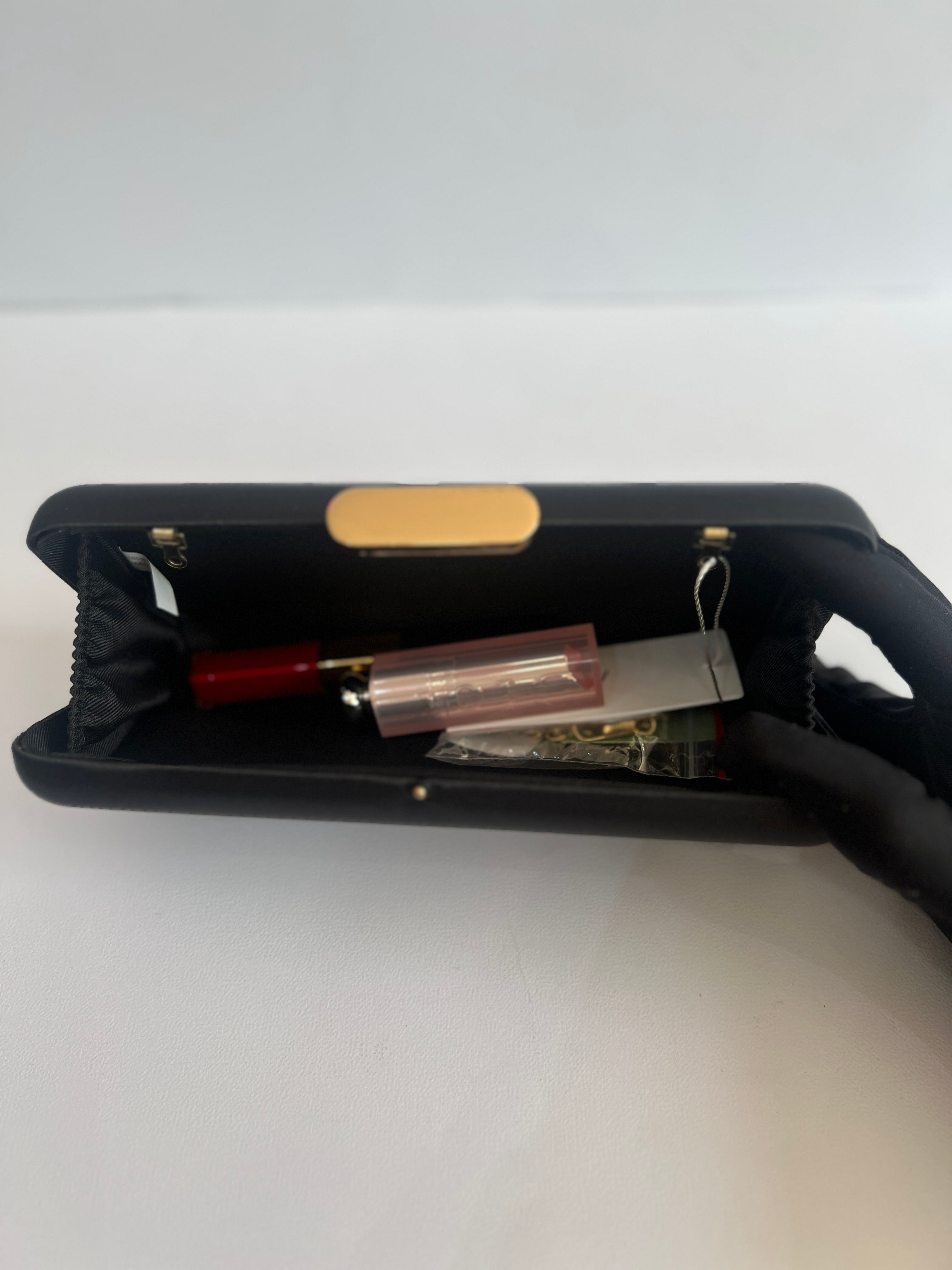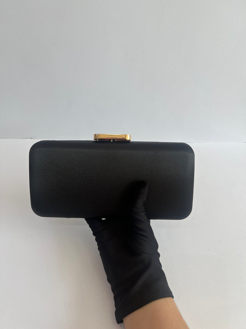 Este clutch de satin cuenta con una cadena desmontable y su cierre es de presión.