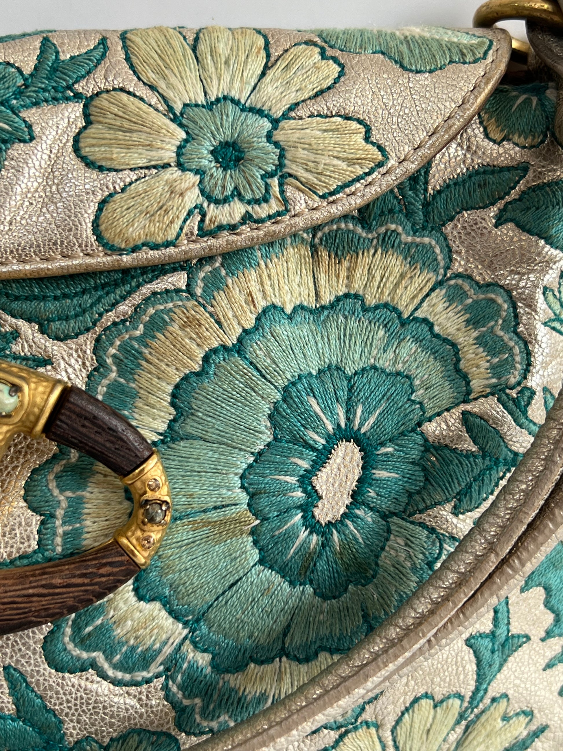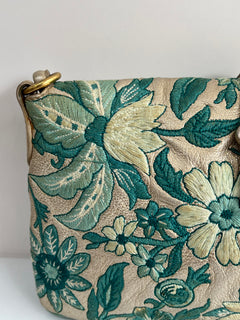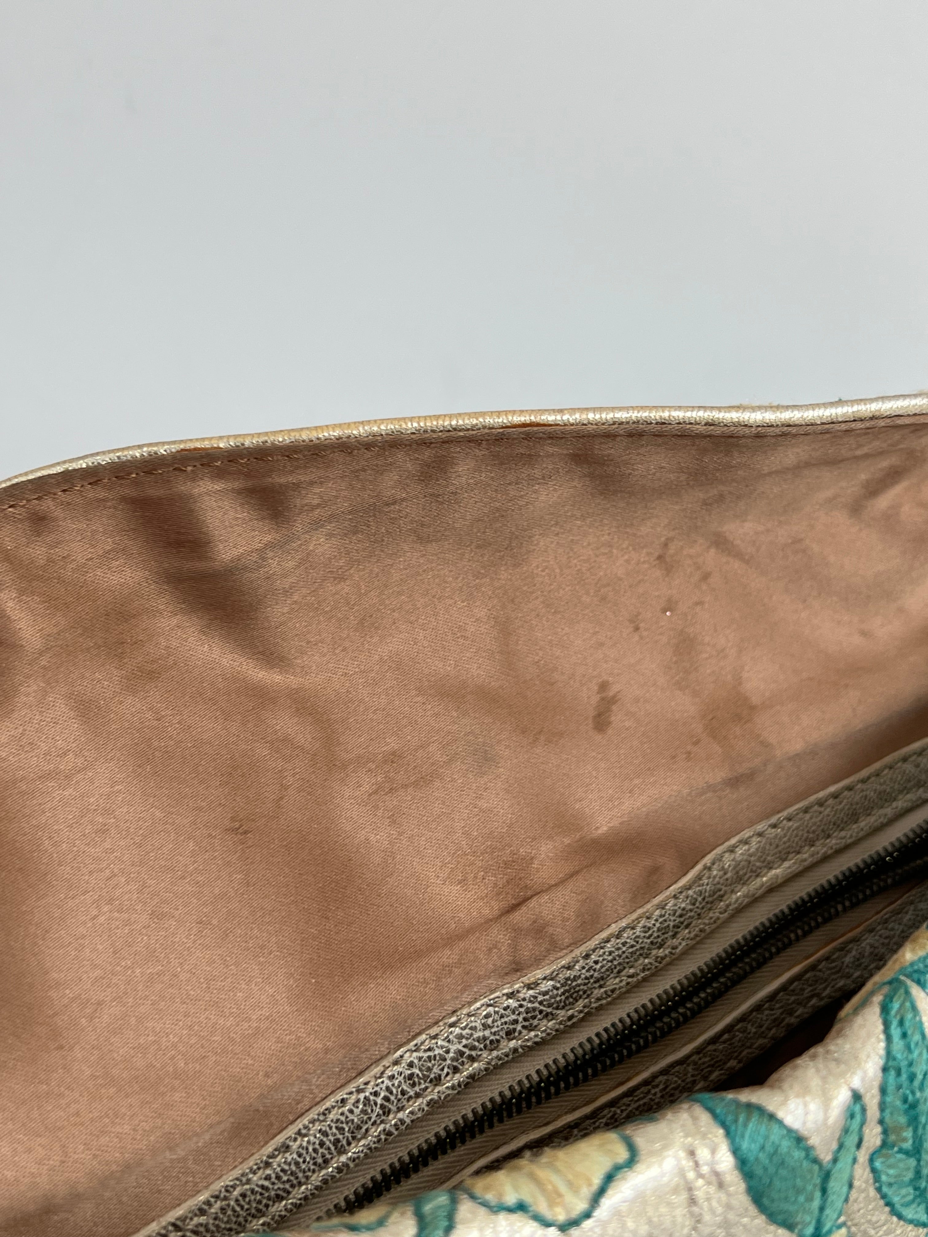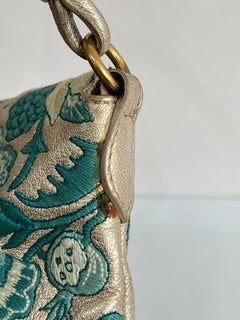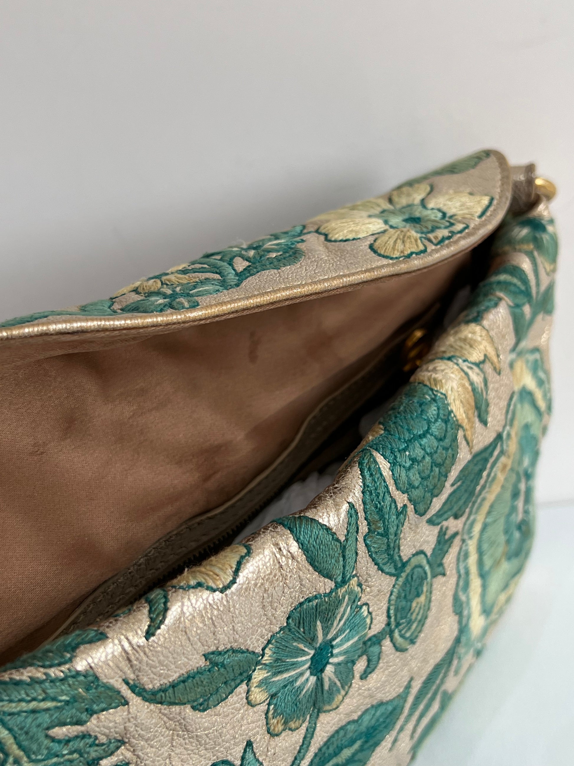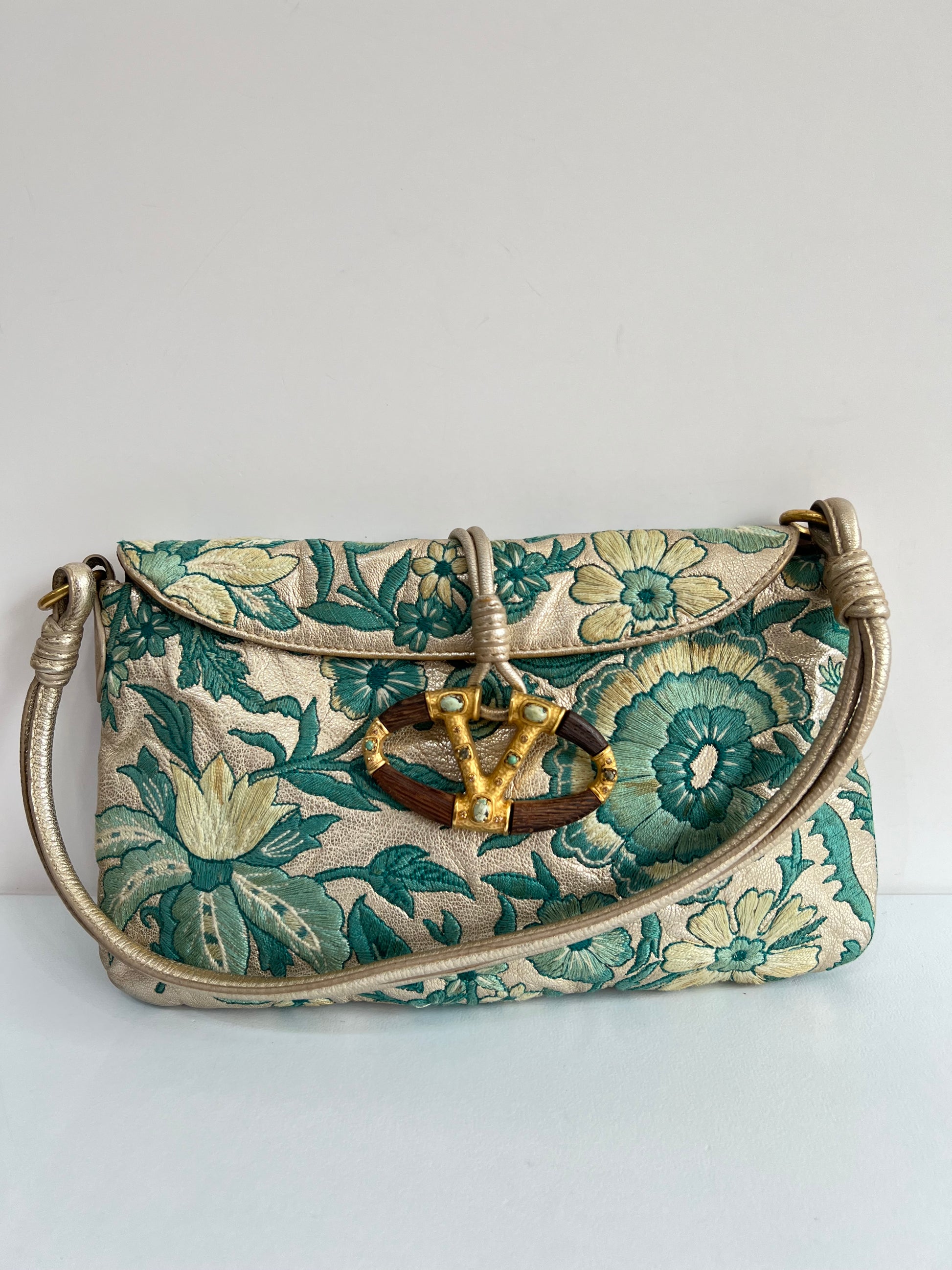 bolso de hombro con cierre de logotipo en dorado. Asa corta doble incorporada. Con compartimento interior de tela con cierre de cremallera. Detalles bordados alrededor, una pieza única edición limitada.