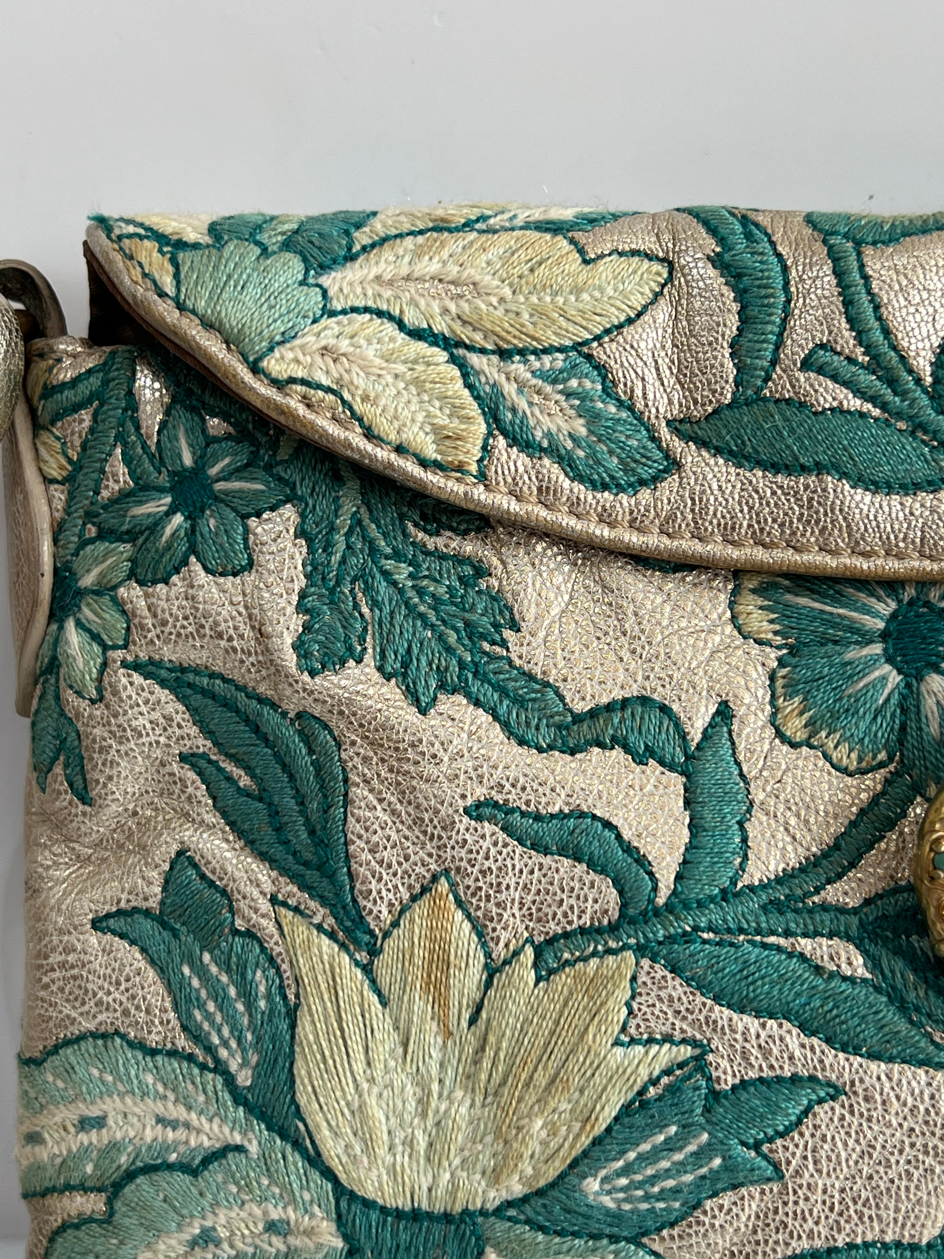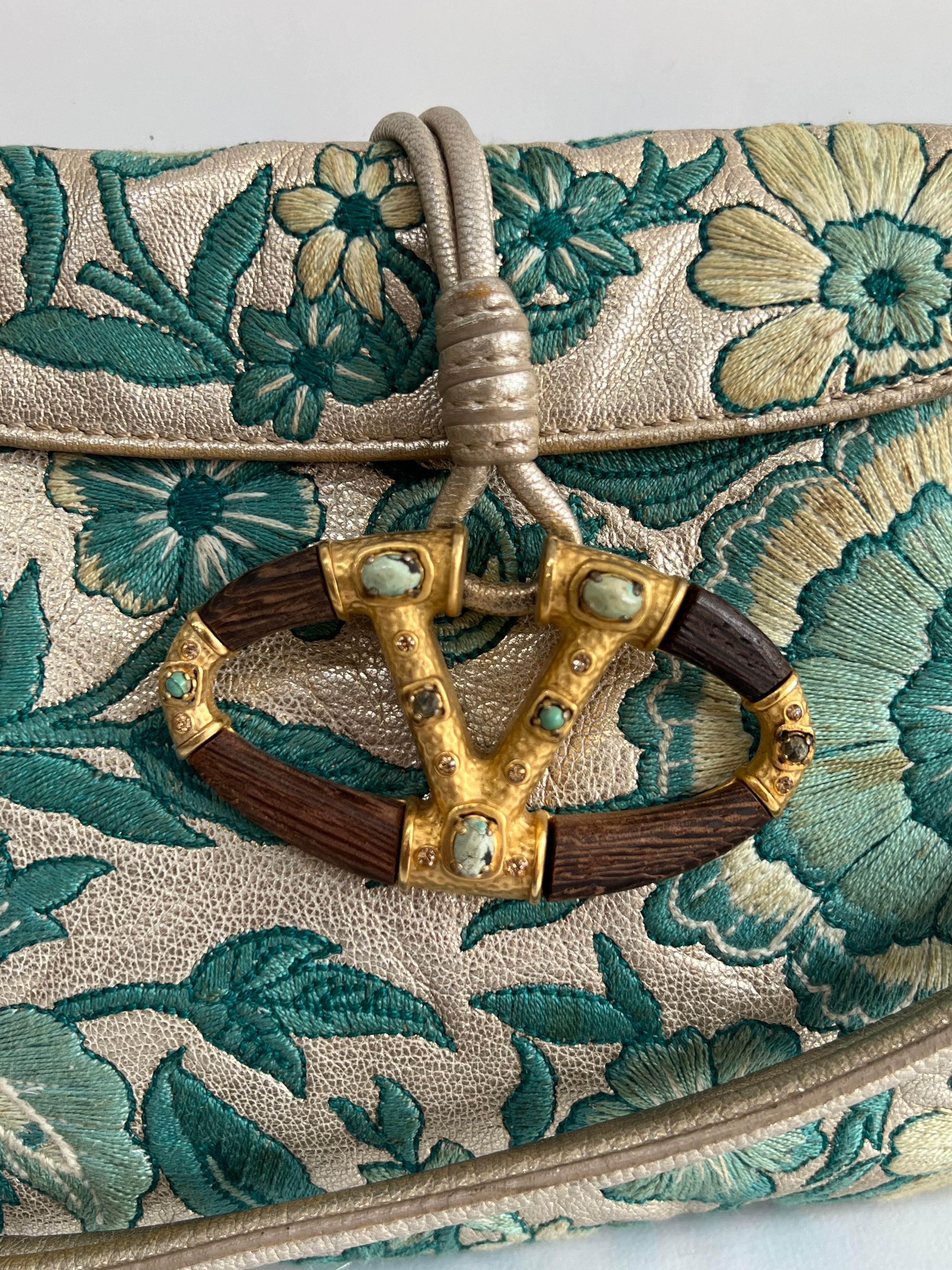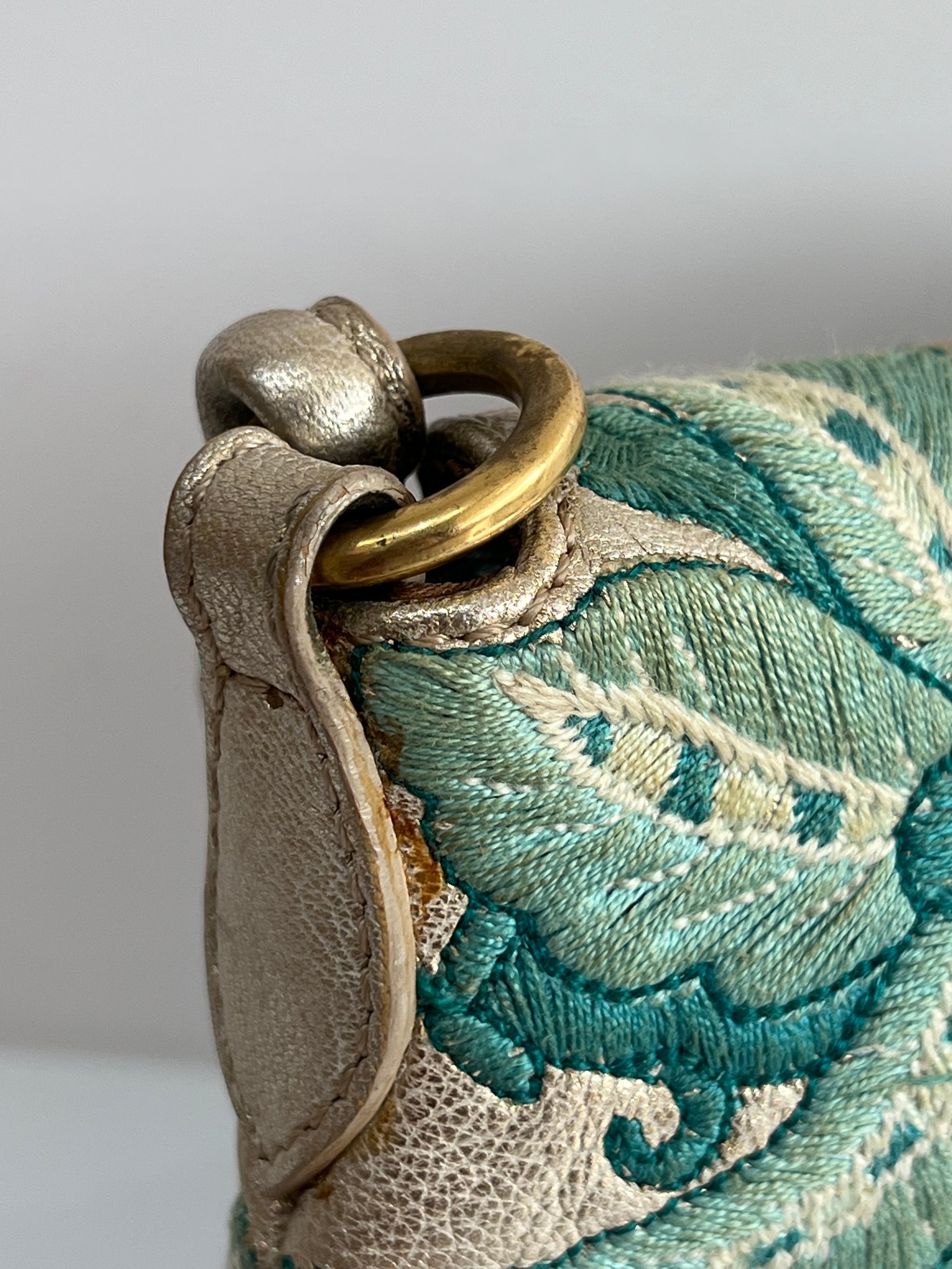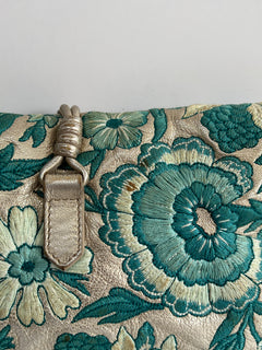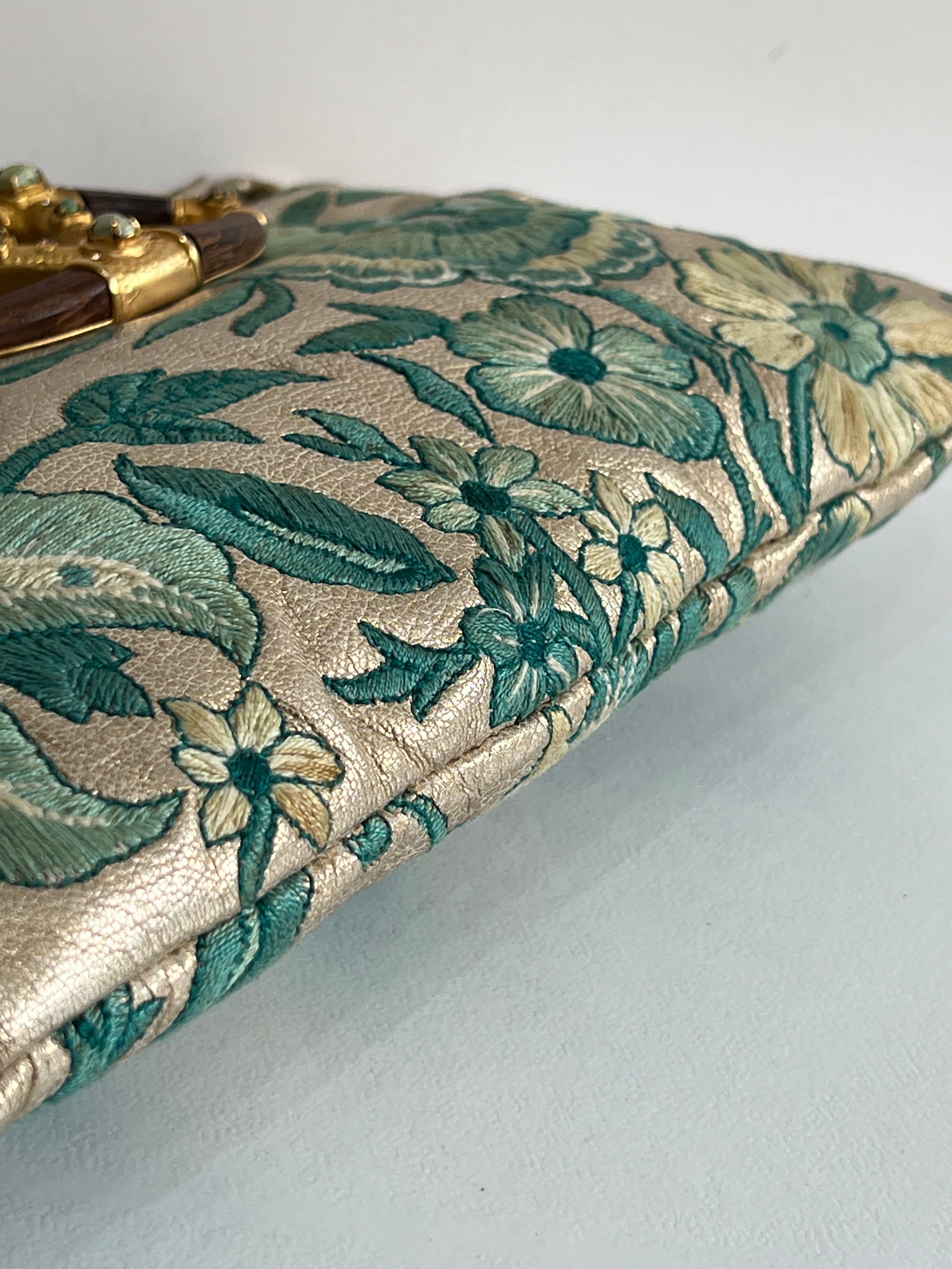 bolso de hombro con cierre de logotipo en dorado. Asa corta doble incorporada. Con compartimento interior de tela con cierre de cremallera. Detalles bordados alrededor, una pieza única edición limitada.