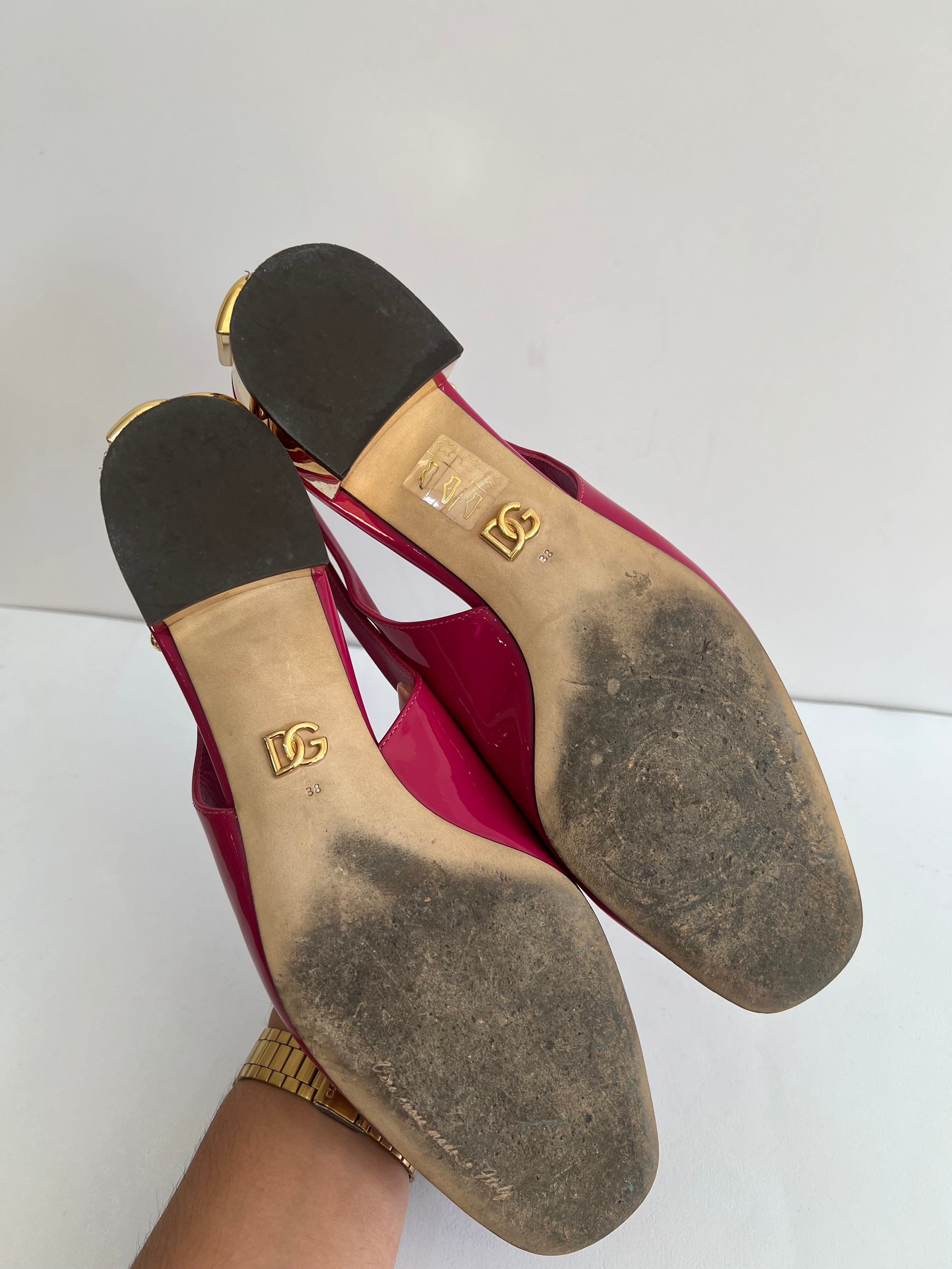 Hechos de piel lisa de alta calidad, con punta almendrada y silueta estilizada. Cuentan con correa trasera ajustable que deja el talón descubierto, detalle de la marca en el lateral o plantilla y suela plana.