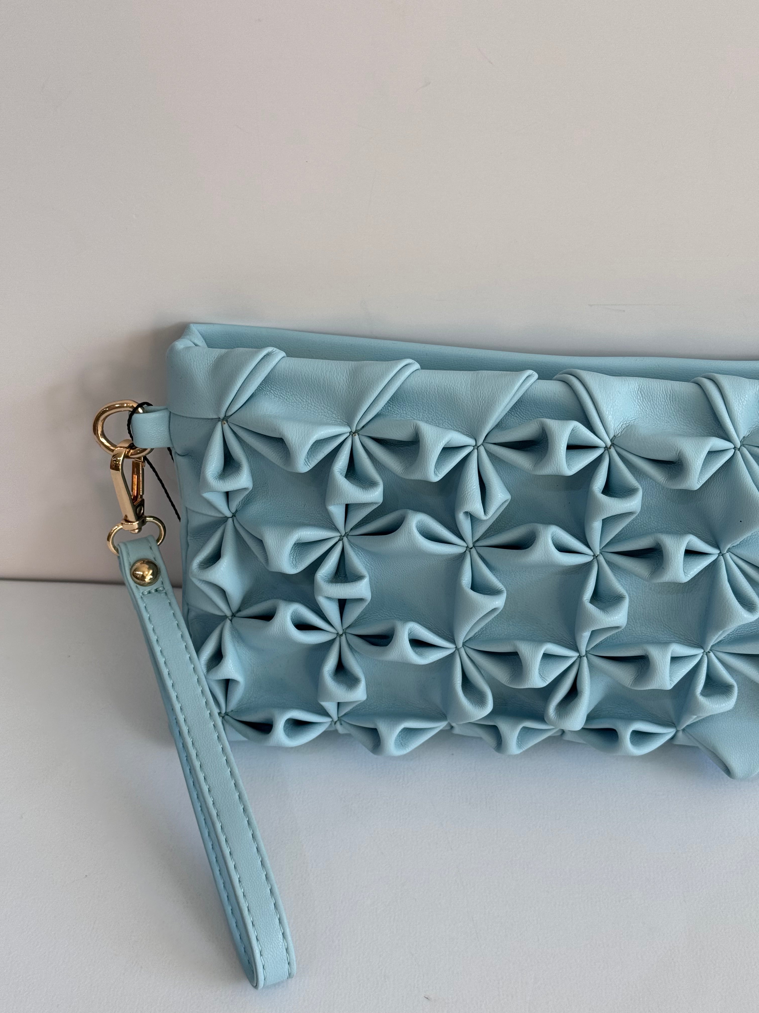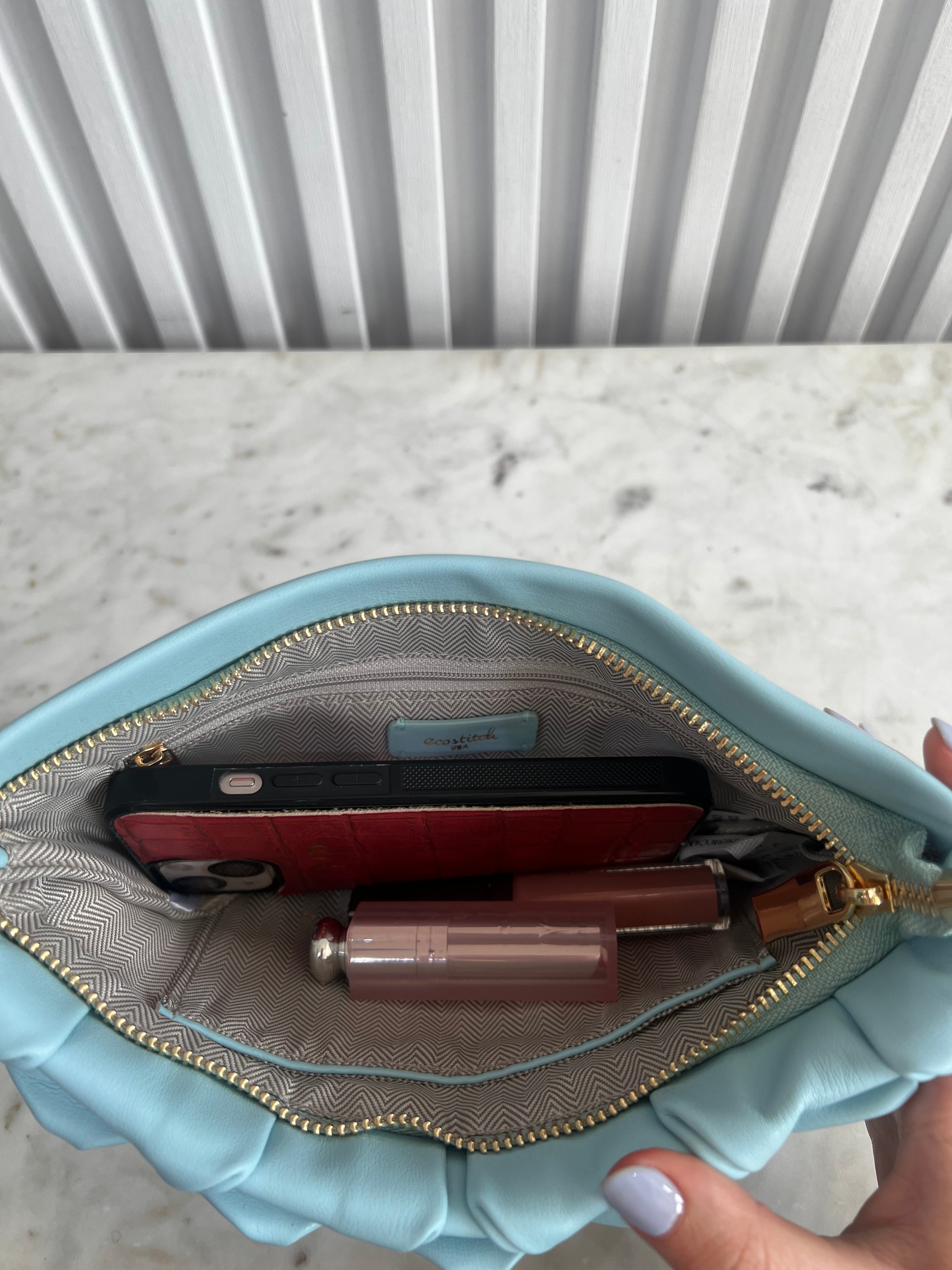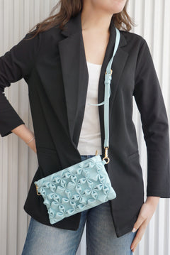 Este bolso con detalles de flores en cuero, cuenta con un hand strap desmontable y un crossbody strap desmontable y ajustable. Su cierre es de zipper, y en su interior tiene un bolsillo con cierre de zipper y un bolsillo abierto.
