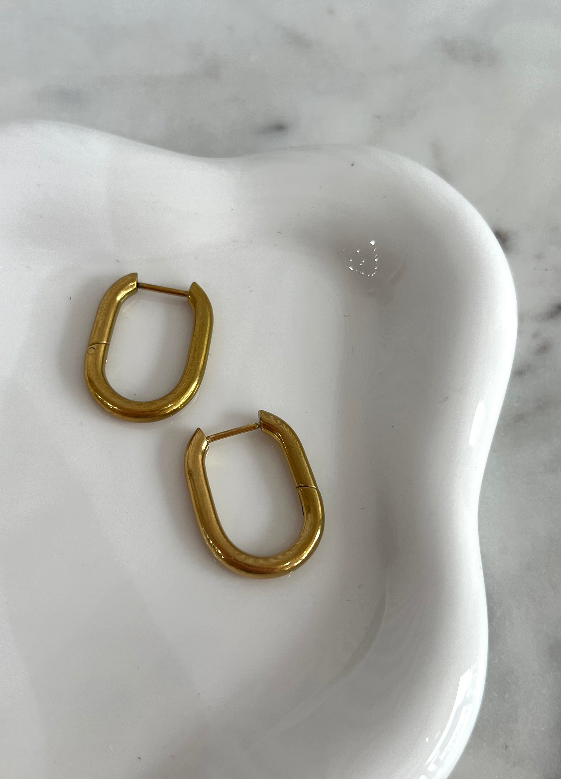 Aritos de acero inoxidable color dorados. Sencillos y versátiles.