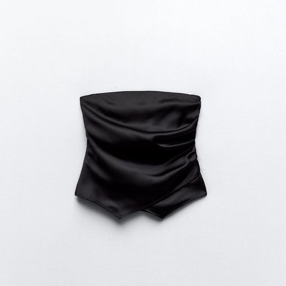 Este top es un basico que necesitas en tu closet. Tiene detalles “ruched” a los costados y cuenta con un cierre de zipper escondido en el costado izquierdo.