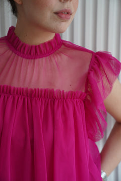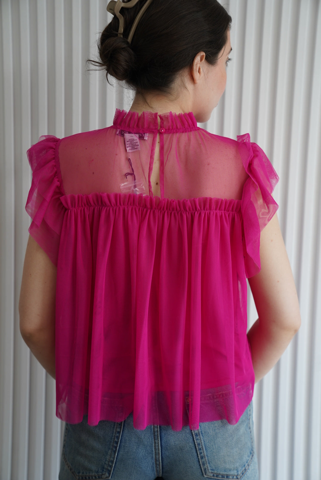 RACHEL ZOÉ Strawberry Pink Tulle Ruffle