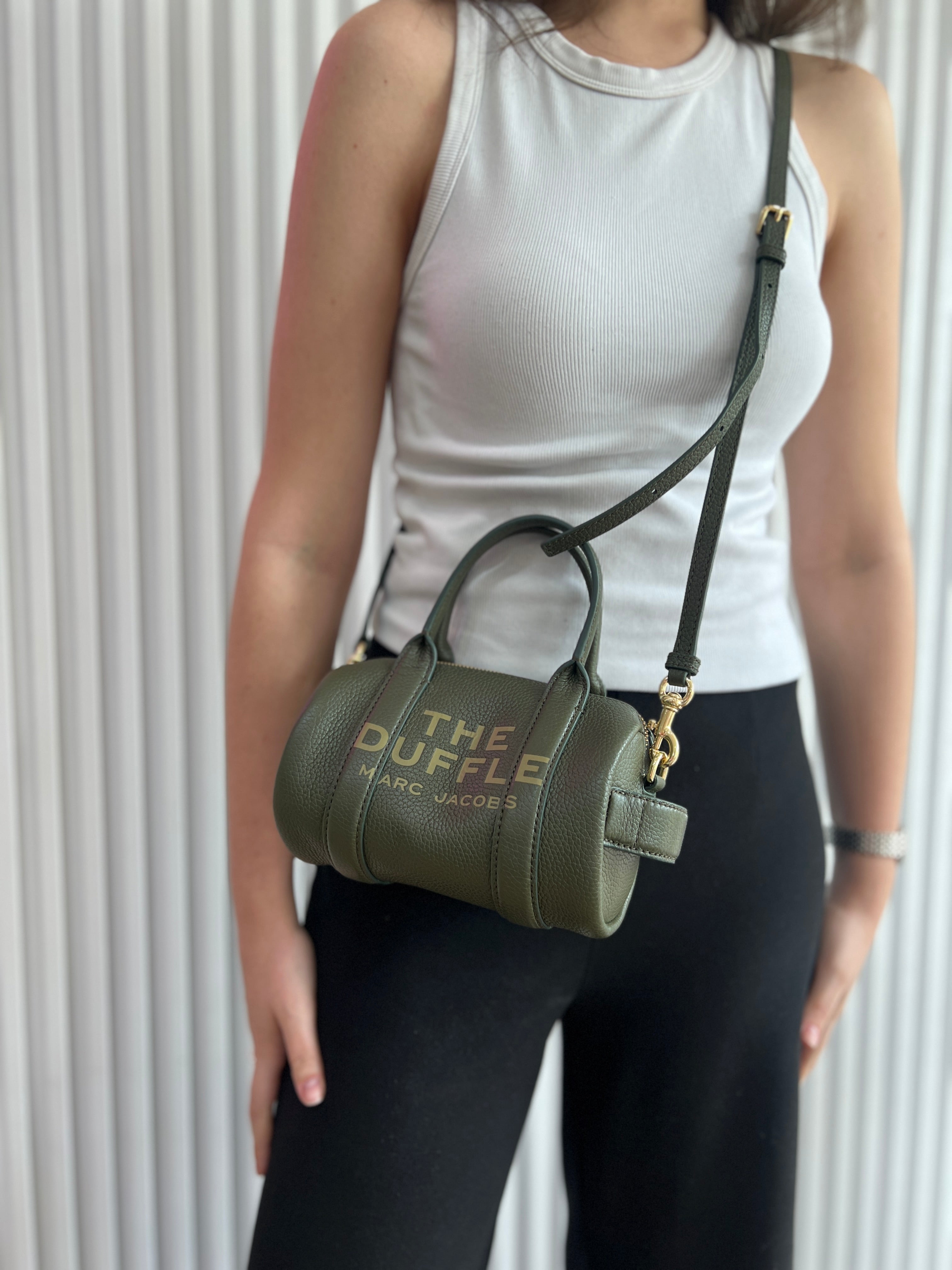 Esta min duffle bag de cuero, cuenta con un top handle y un crossbody strap desmontable y ajustable. Su cierre es de zipper y cuenta con un interior muy espacioso.