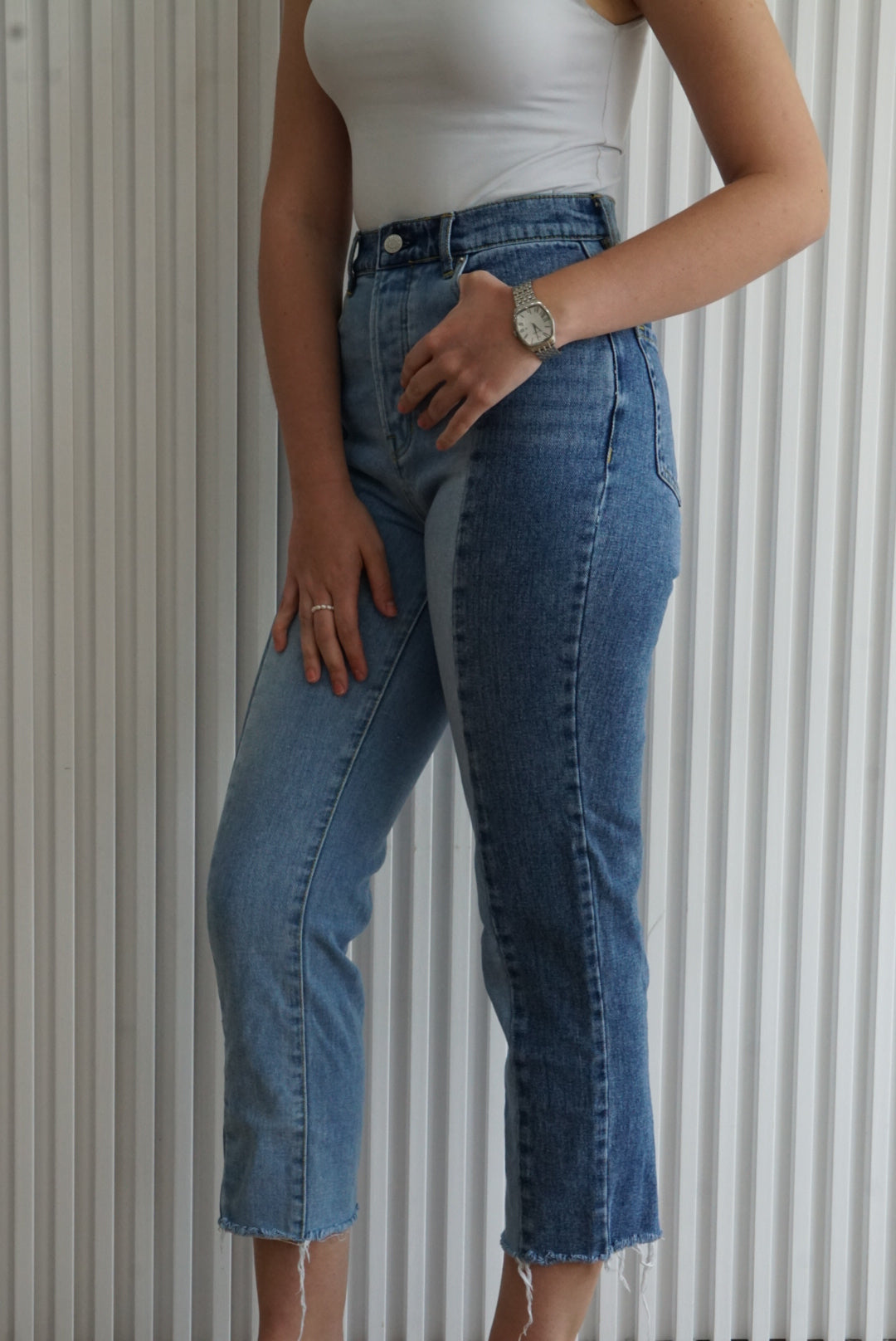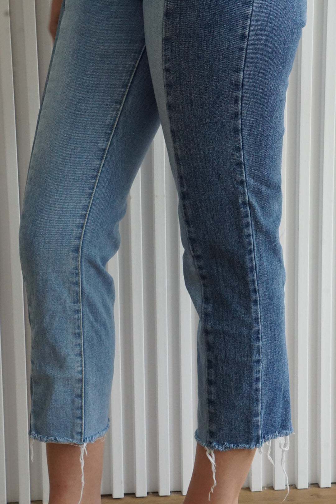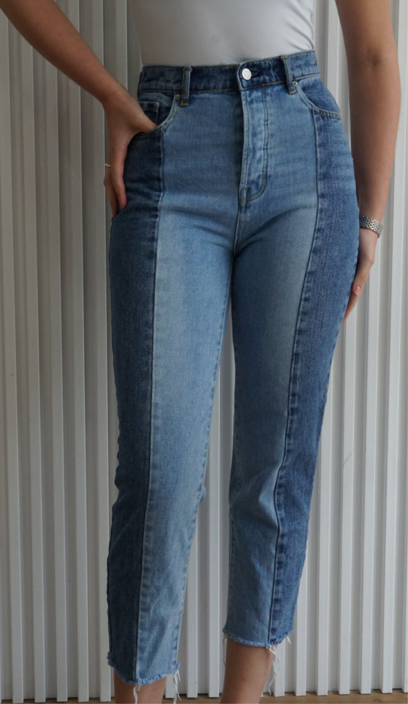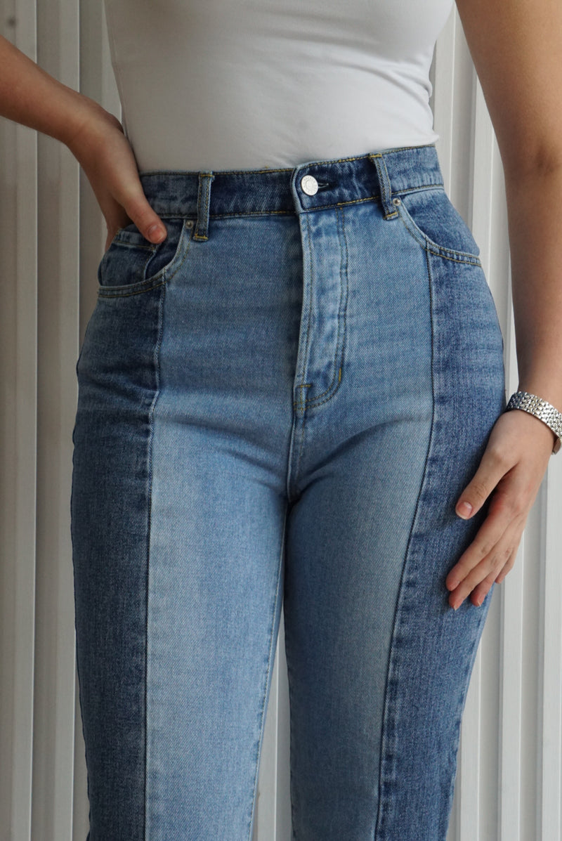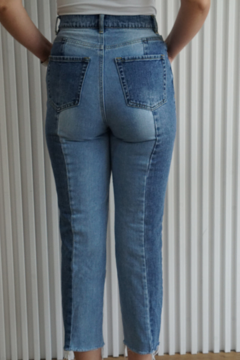 Two-Tone High Rise Straight Leg Jeans