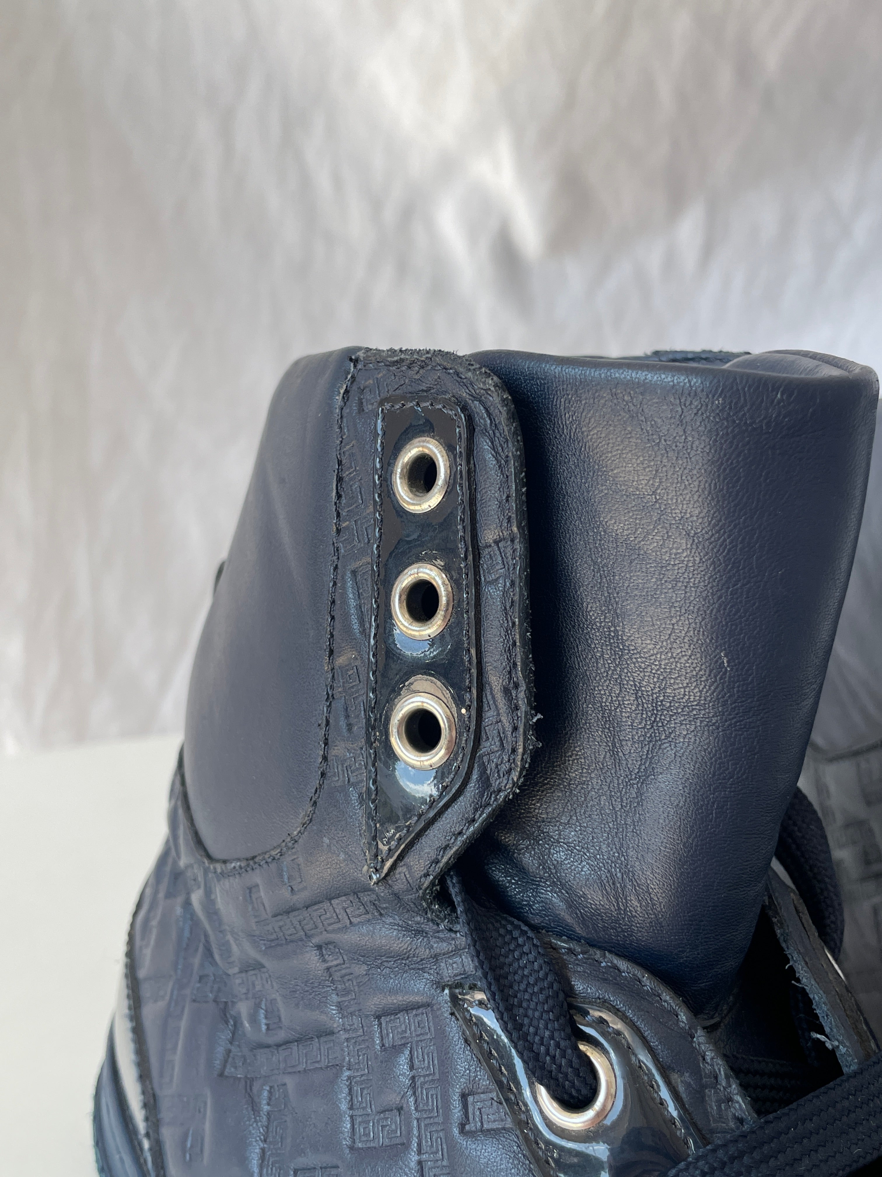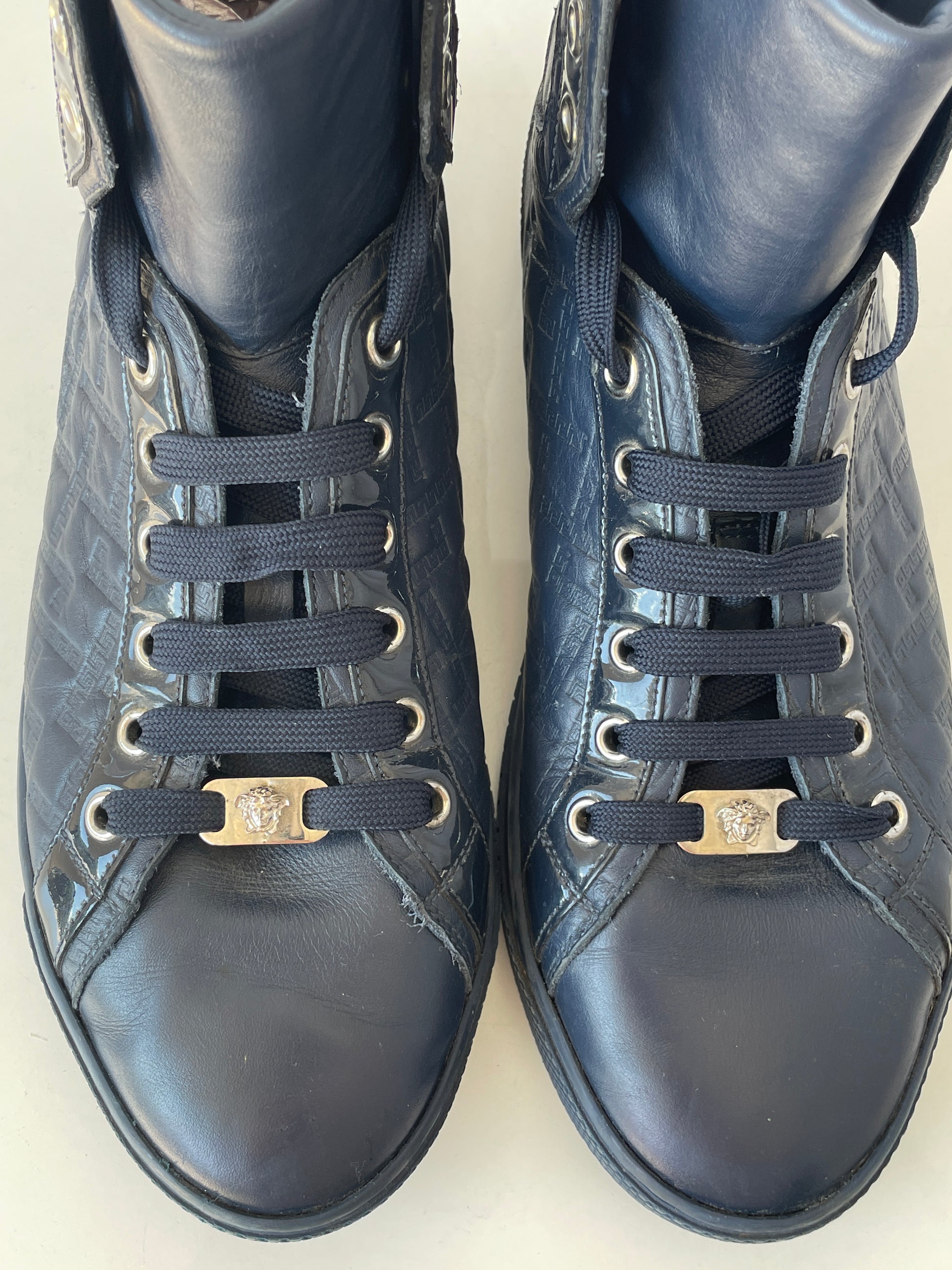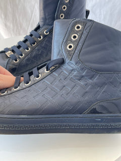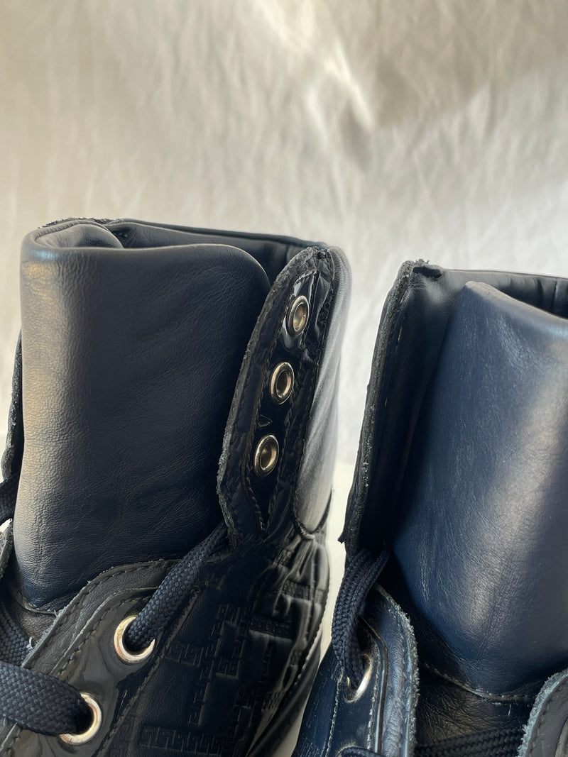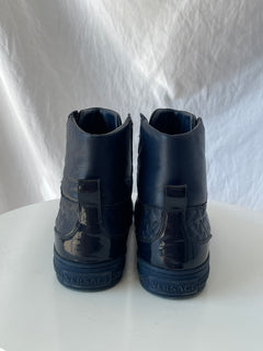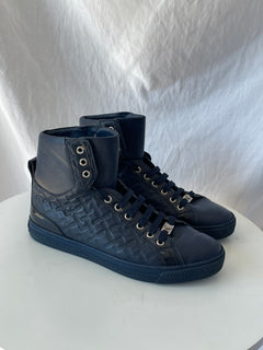 Tenis altos de hombre, color azul marino y laterales monogram y elaborados en cuero.