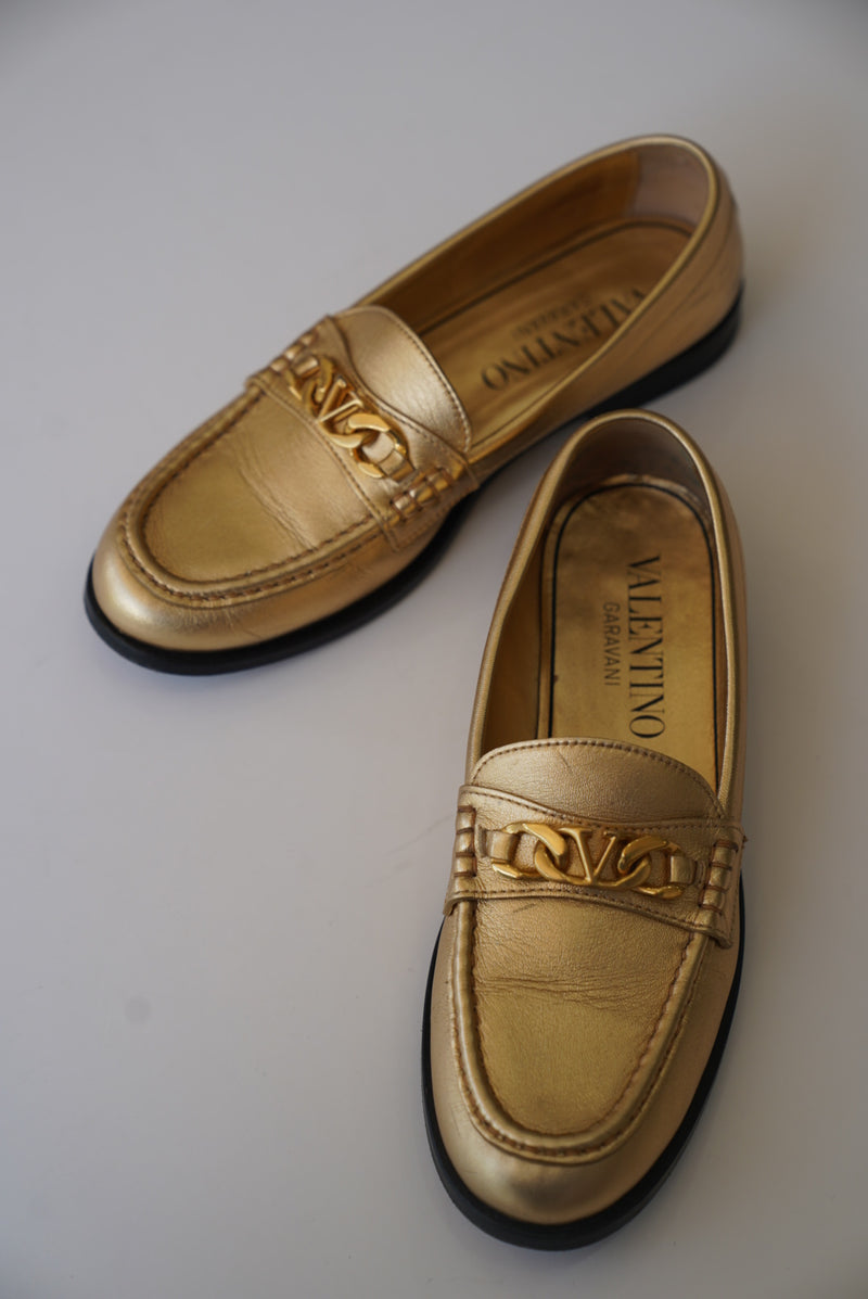 VLogo Chain Loafers in Metallic Nappa